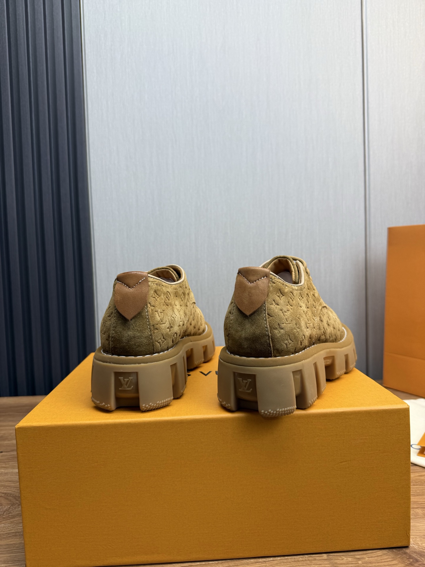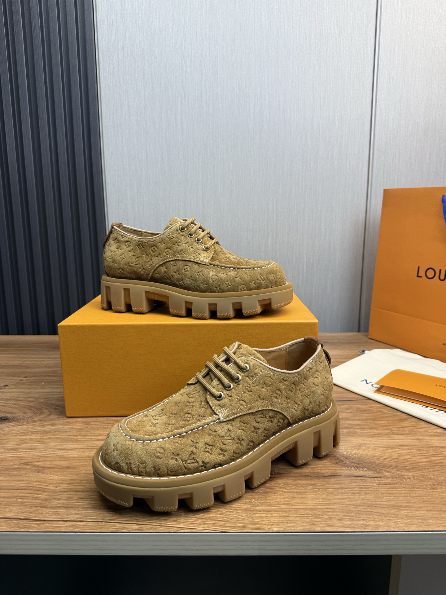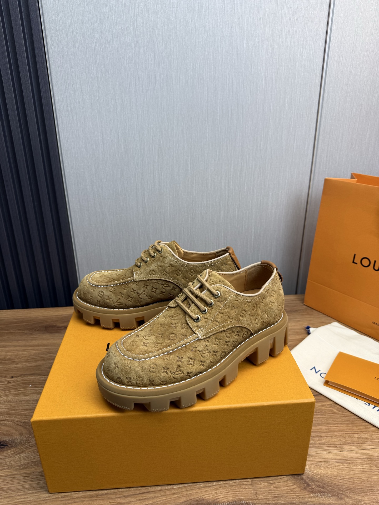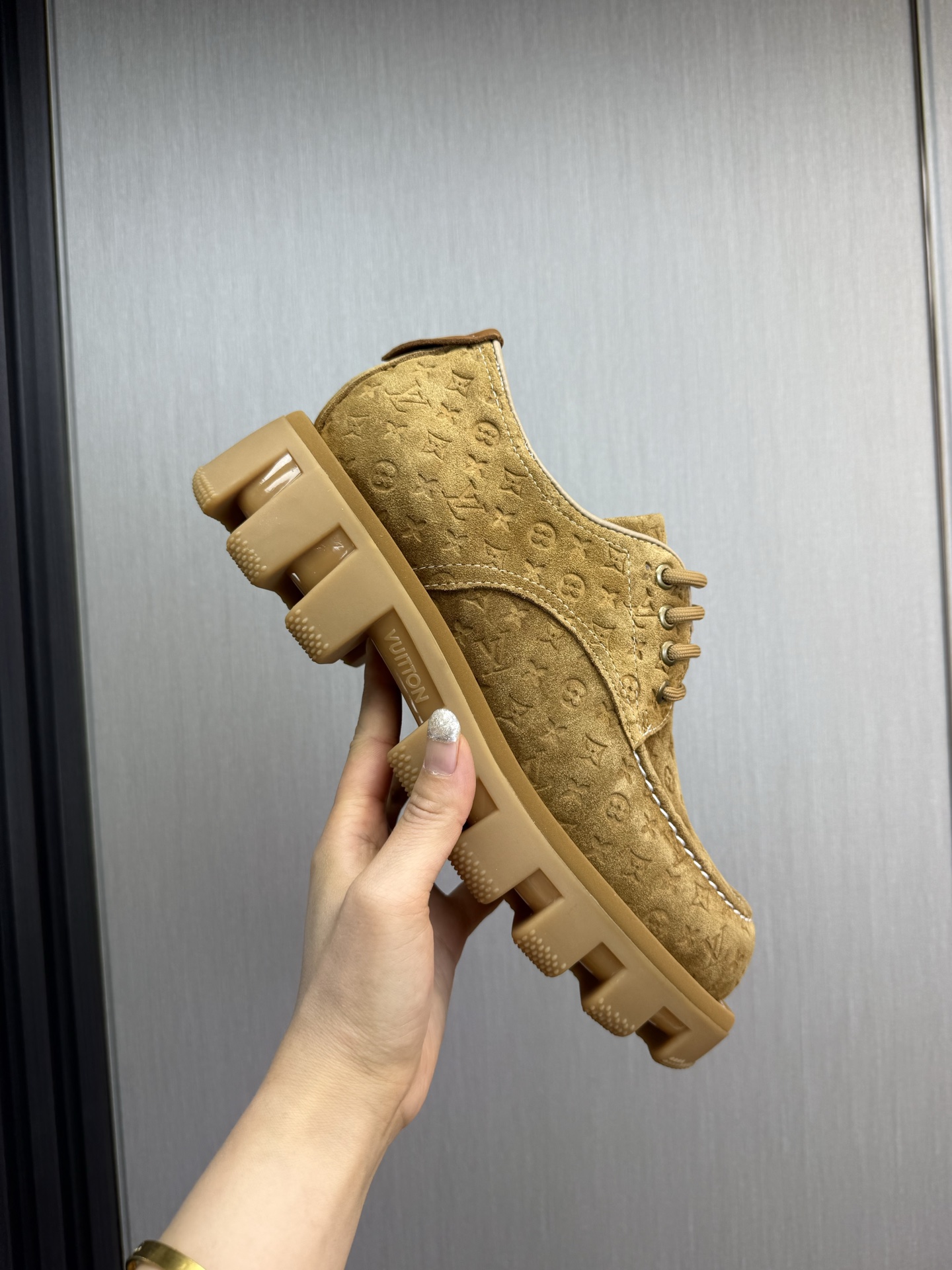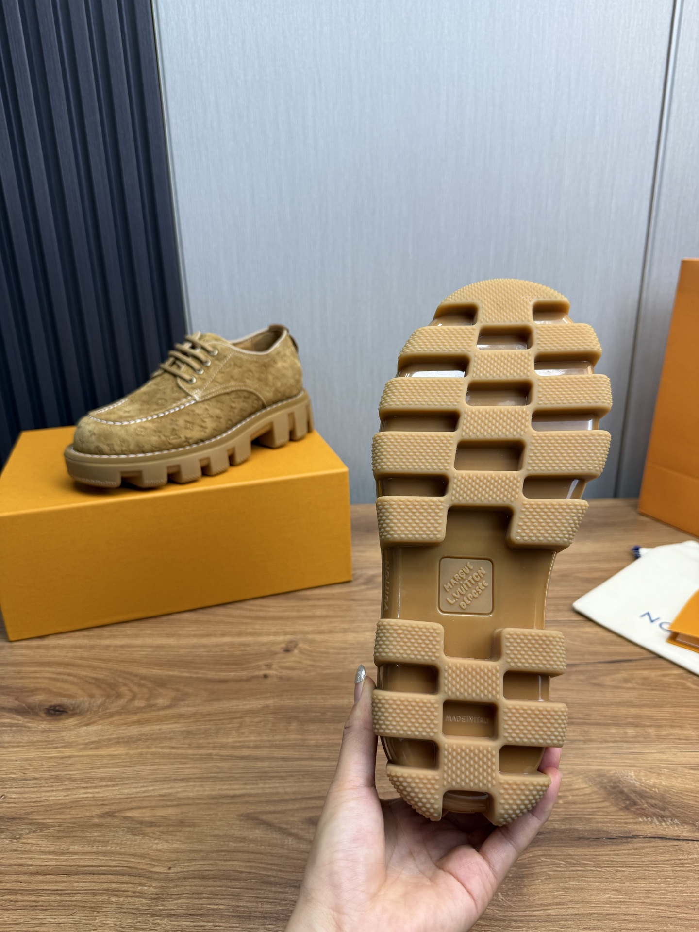 这款鞋子是AAAAA 1:1 质量 (非常棒). 使用了和原版一模一样的材料. 商标部分也保持了和路易威登/Louis Vuitton一样. 图片拍摄是实物鞋子拍摄, 您所收到的实物保证和我们图片一模一样.