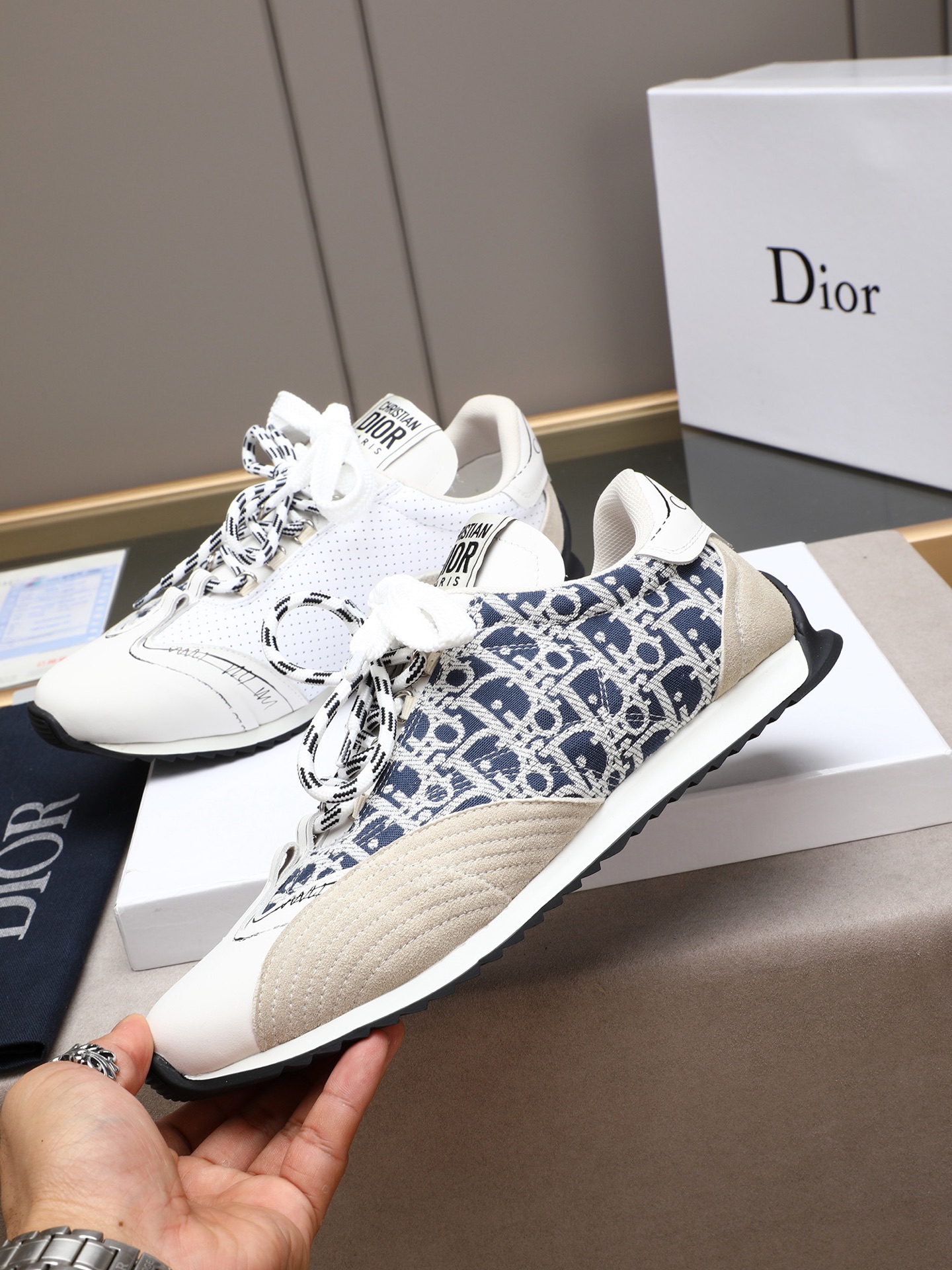 这款鞋子是AAAAA 1:1 质量 (非常棒). 使用了和原版一模一样的材料. 商标部分也保持了和迪奥/Dior一样. 图片拍摄是实物鞋子拍摄, 您所收到的实物保证和我们图片一模一样.