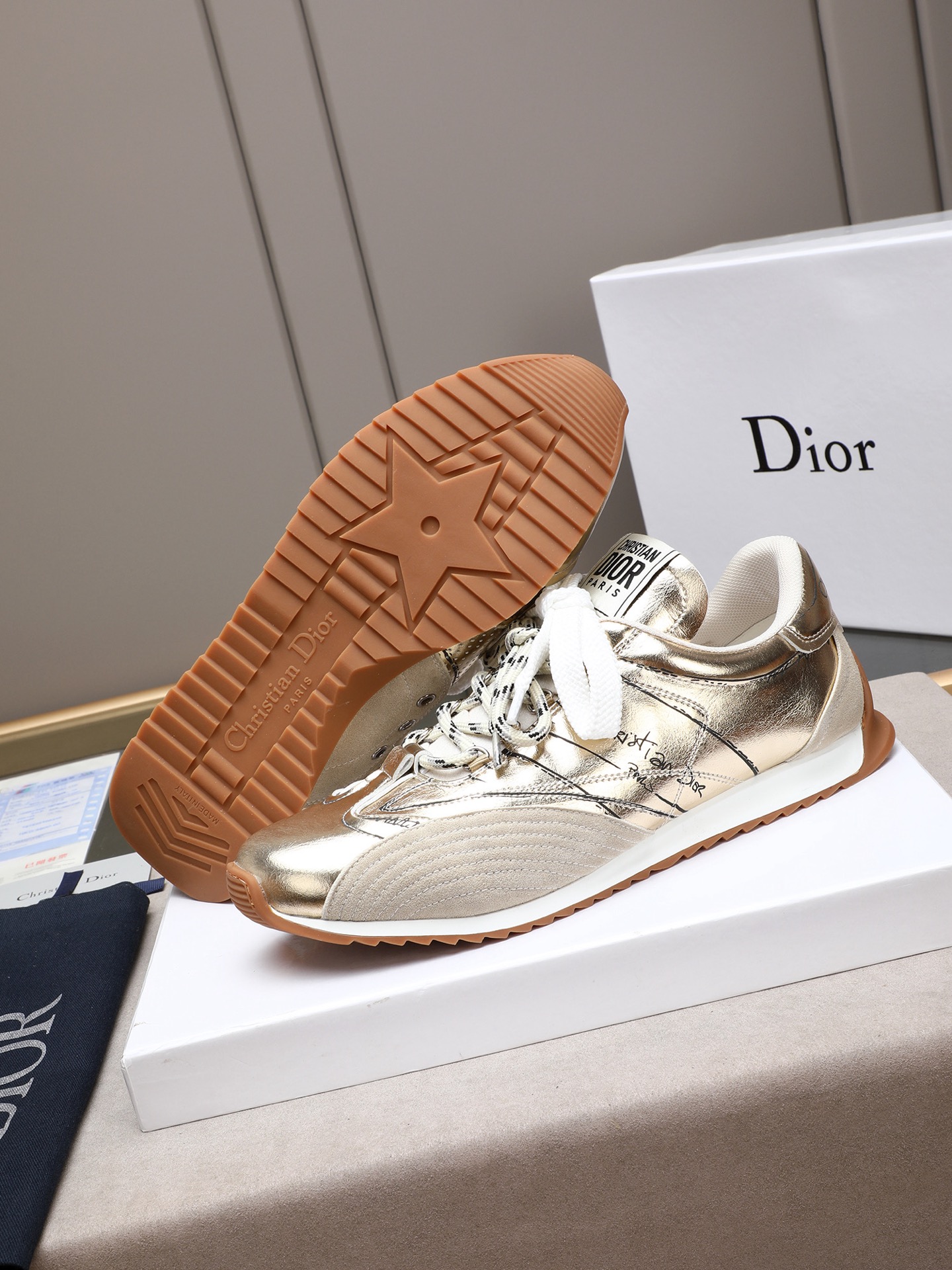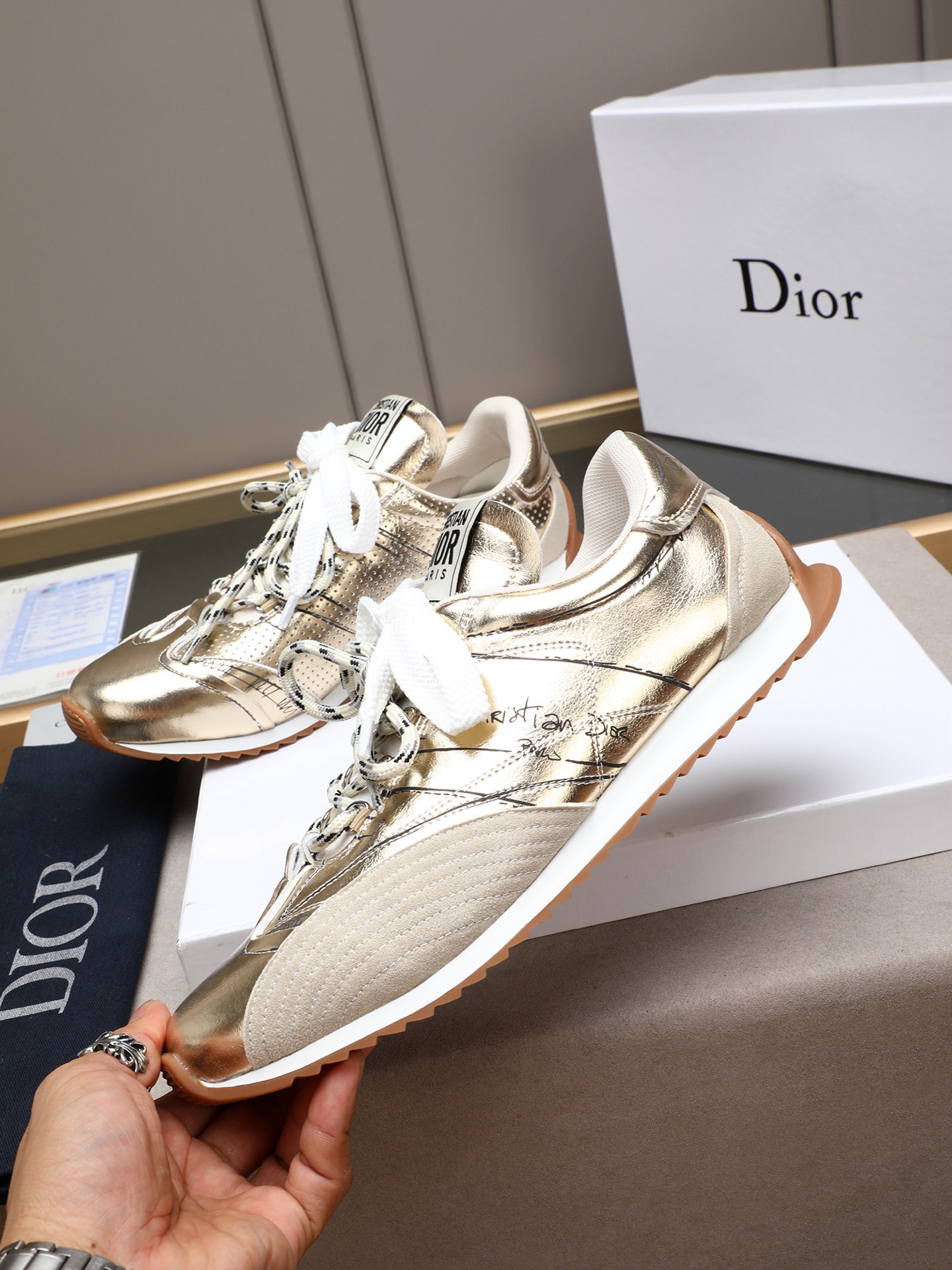 这款鞋子是AAAAA 1:1 质量 (非常棒). 使用了和原版一模一样的材料. 商标部分也保持了和迪奥/Dior一样. 图片拍摄是实物鞋子拍摄, 您所收到的实物保证和我们图片一模一样.