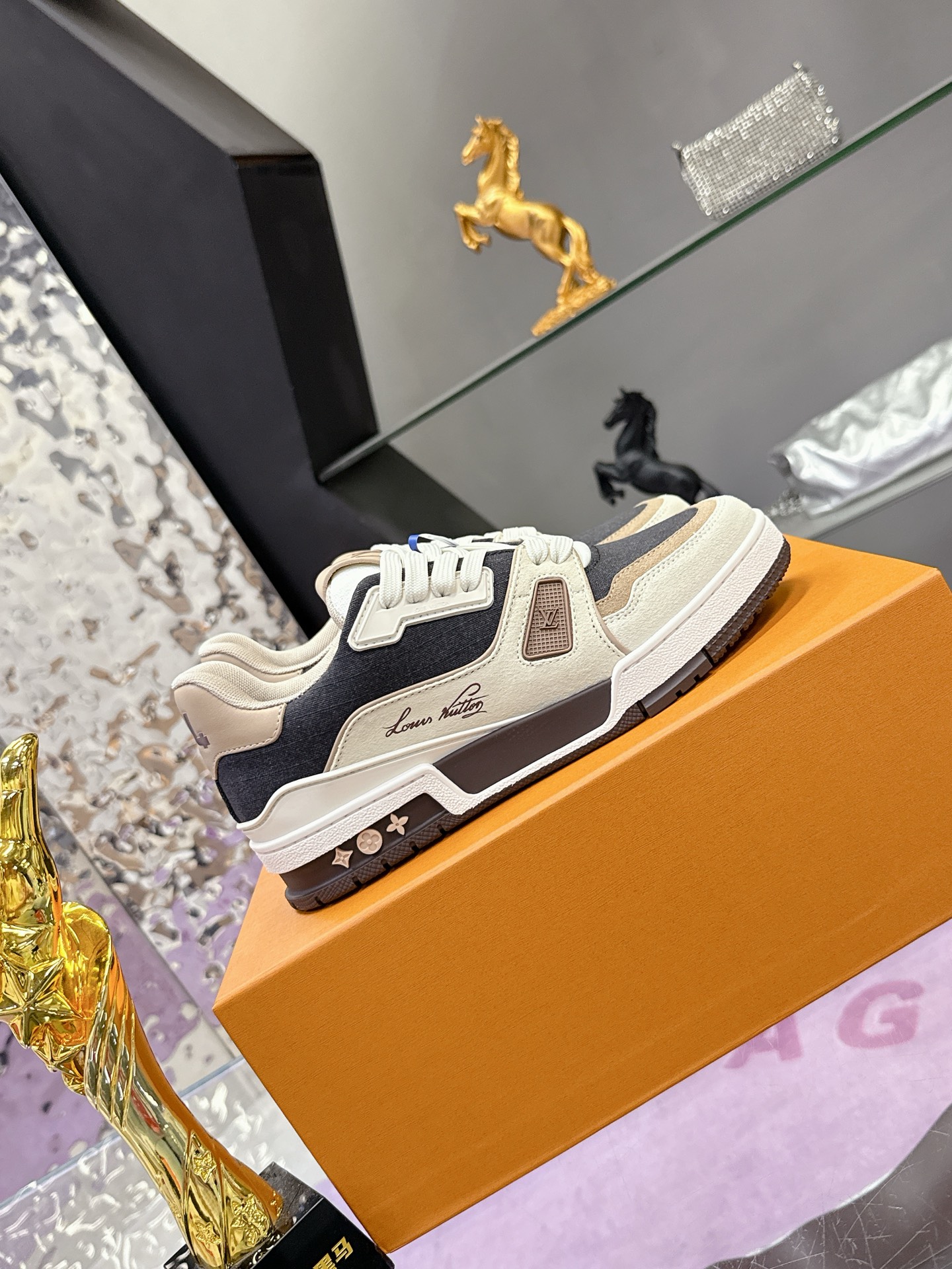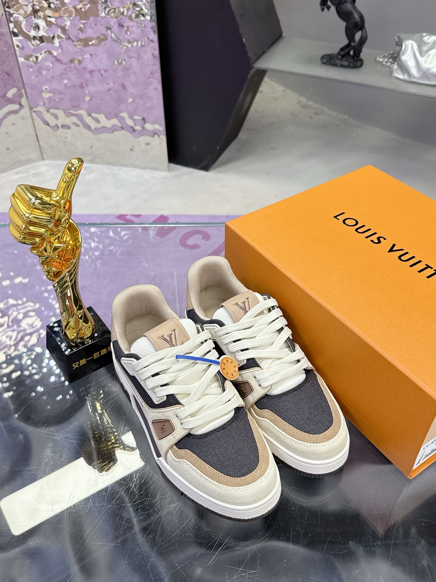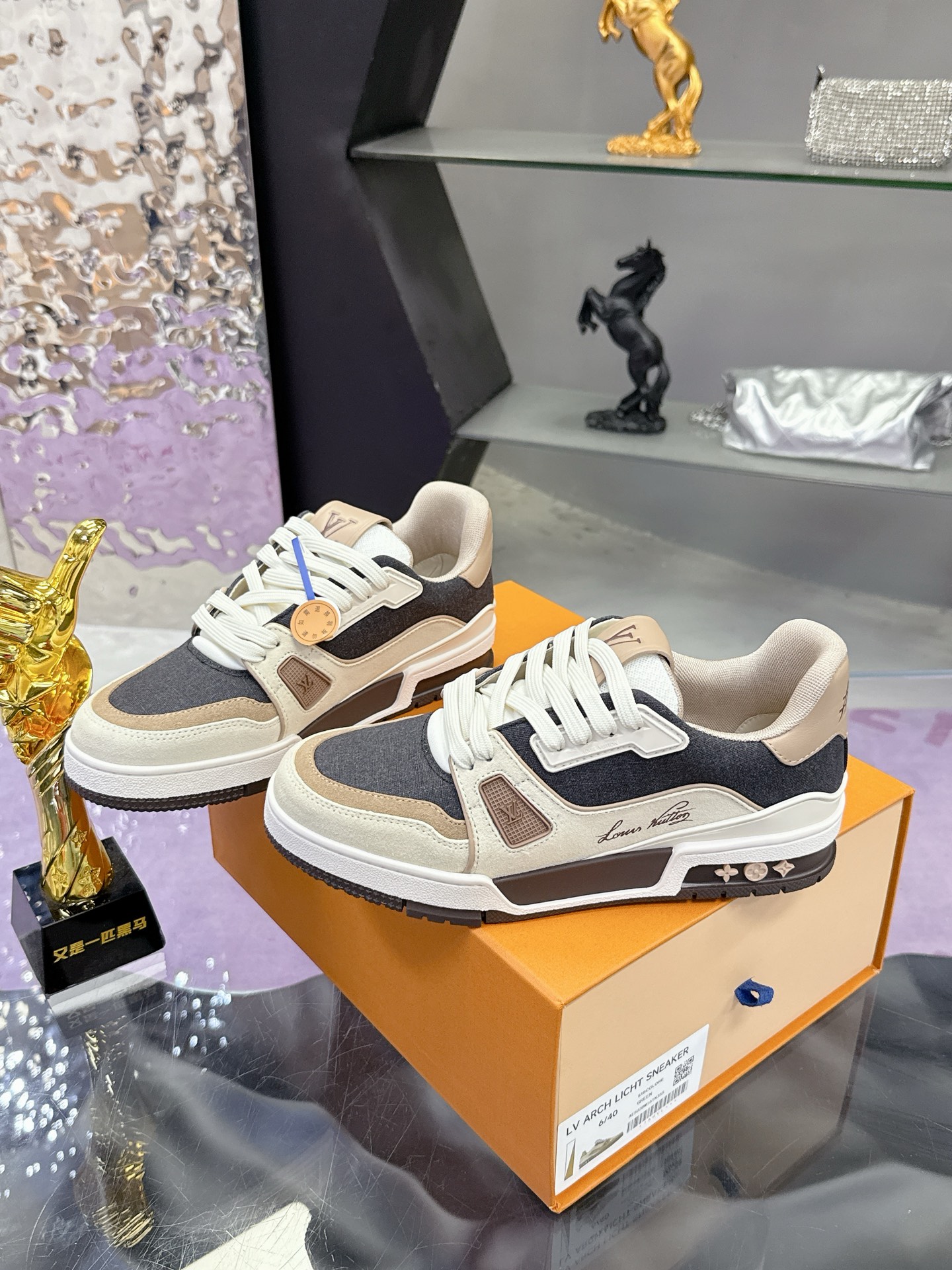 这款鞋子是AAAAA 1:1 质量 (非常棒). 使用了和原版一模一样的材料. 商标部分也保持了和路易威登/Louis Vuitton一样. 图片拍摄是实物鞋子拍摄, 您所收到的实物保证和我们图片一模一样.