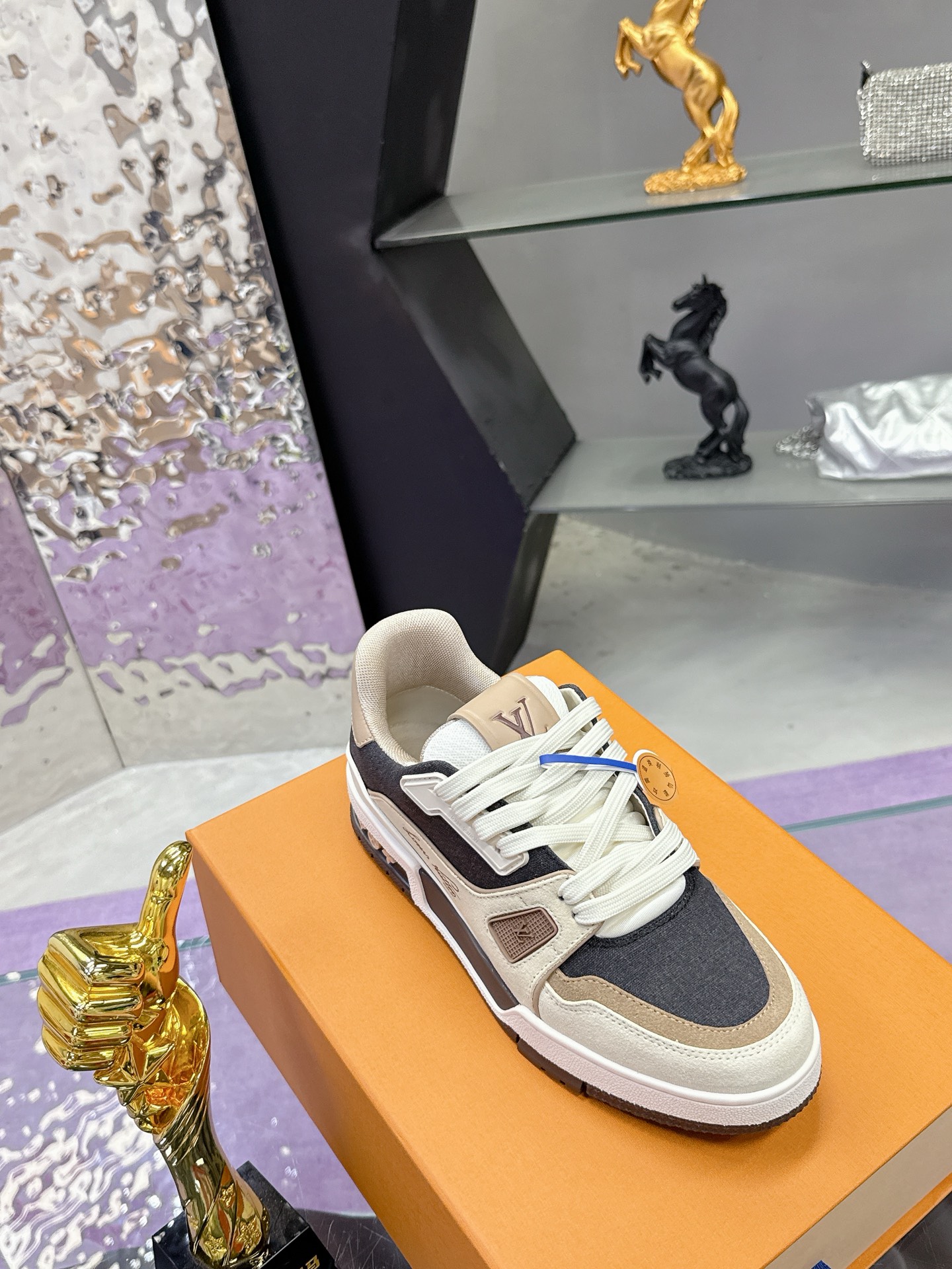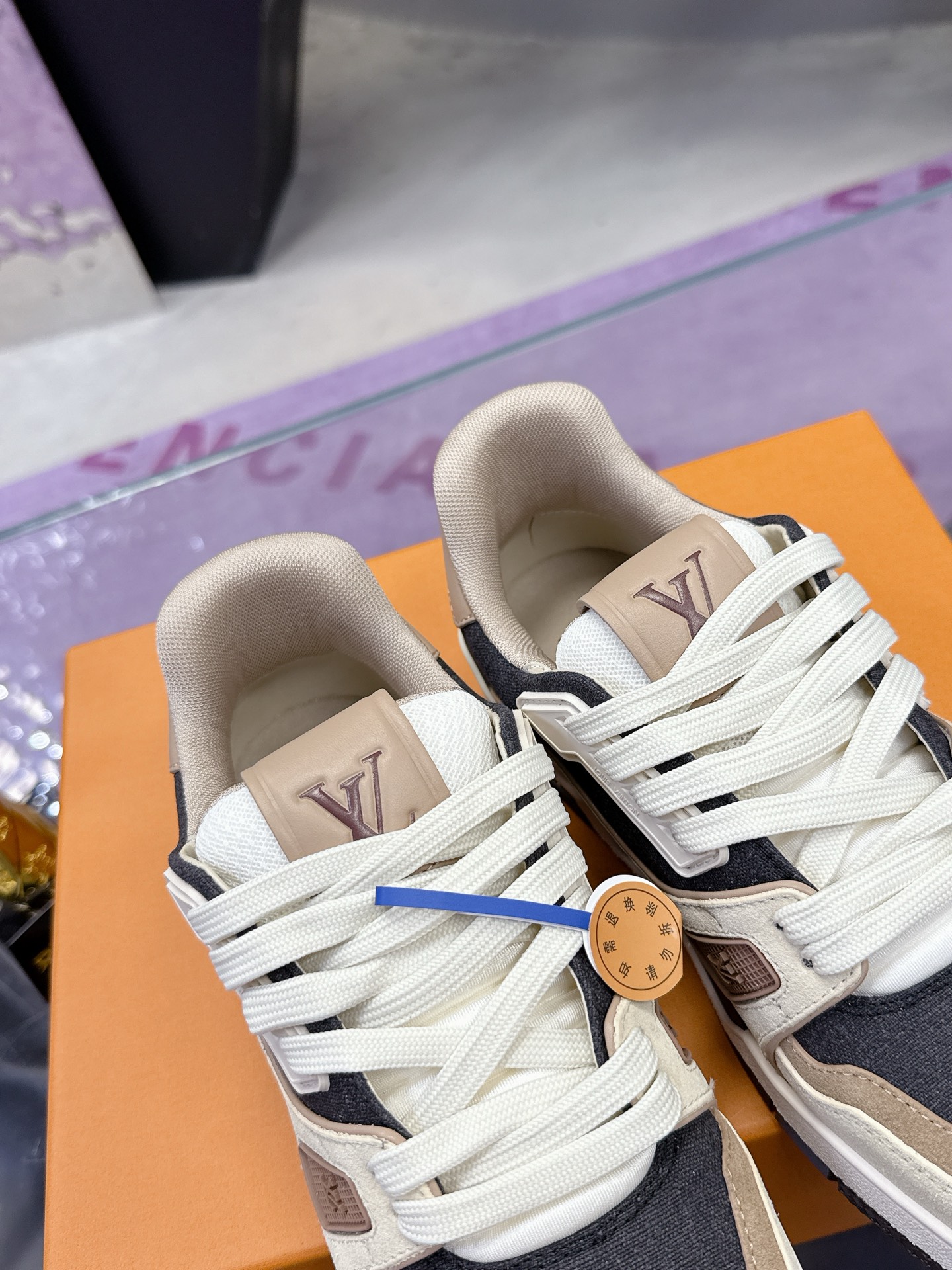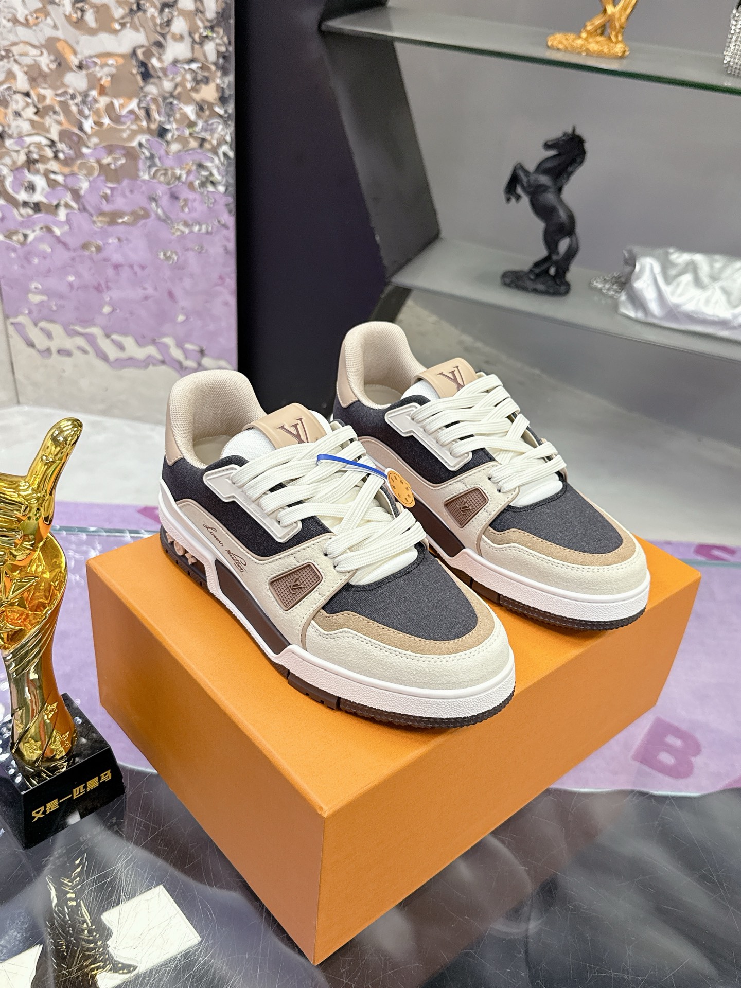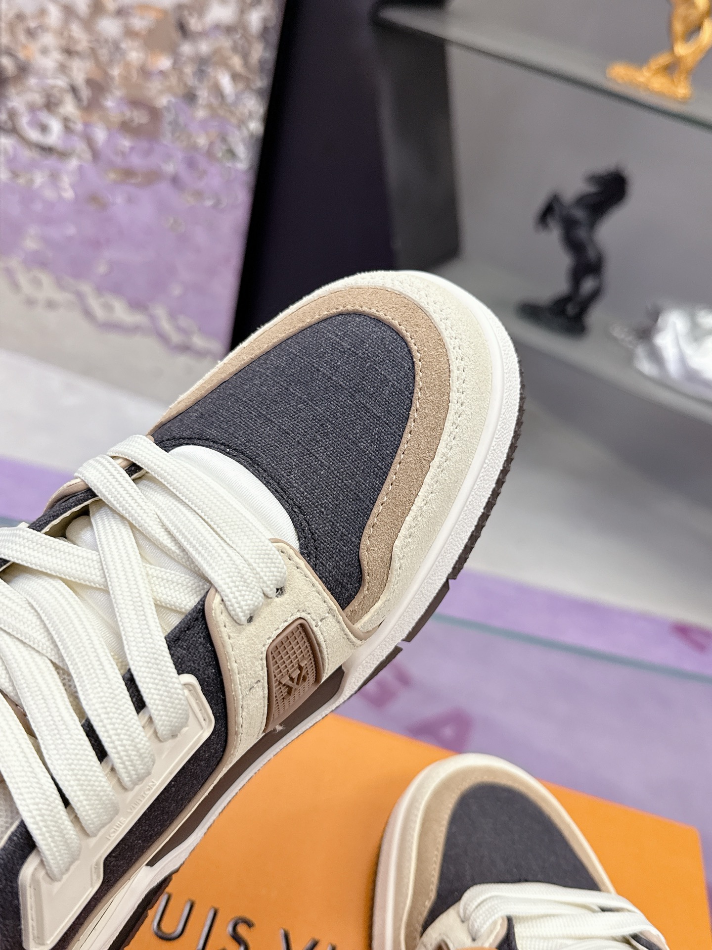这款鞋子是AAAAA 1:1 质量 (非常棒). 使用了和原版一模一样的材料. 商标部分也保持了和路易威登/Louis Vuitton一样. 图片拍摄是实物鞋子拍摄, 您所收到的实物保证和我们图片一模一样.