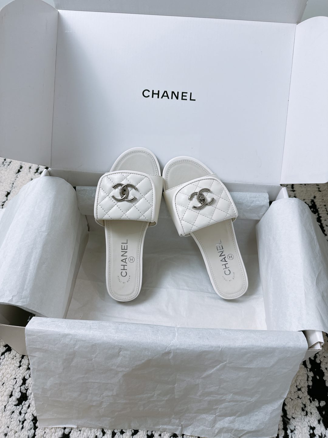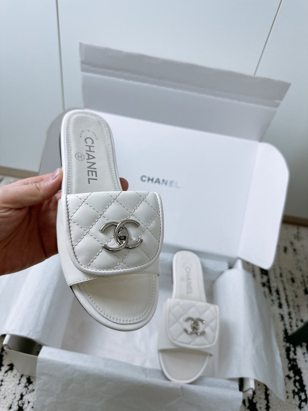 这款鞋子是AAAAA 1:1 质量 (非常棒). 使用了和原版一模一样的材料. 商标部分也保持了和香奈儿/Chanel一样. 图片拍摄是实物鞋子拍摄, 您所收到的实物保证和我们图片一模一样.