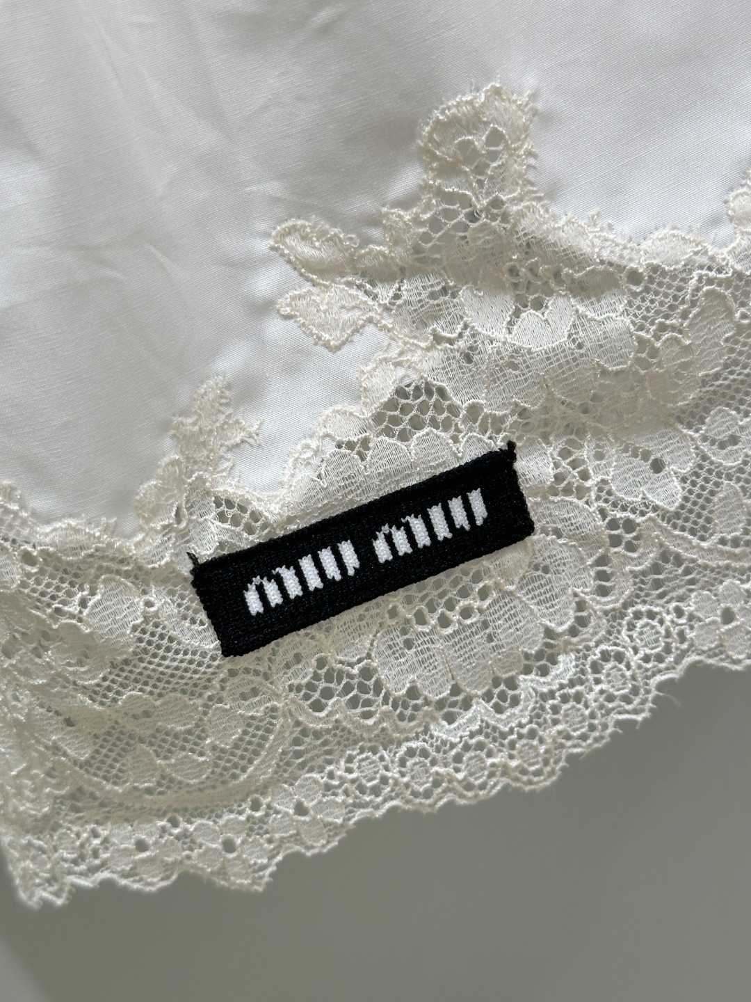 这款衣服是AAAAA 1:1 质量 (非常棒). 使用了和原版一模一样的材料. 商标部分也保持了和缪缪/Miu Miu一样. 图片拍摄是实物衣服拍摄, 您所收到的实物保证和我们图片一模一样.