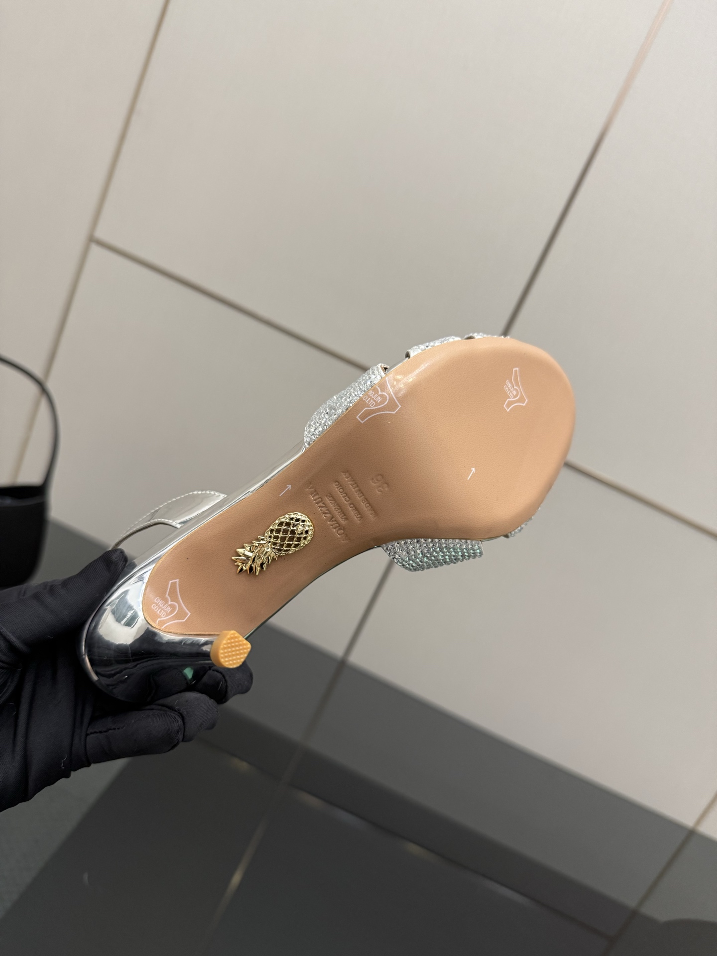 这款鞋子是AAAAA 1:1 质量 (非常棒). 使用了和原版一模一样的材料. 商标部分也保持了和Aquazzura一样. 图片拍摄是实物鞋子拍摄, 您所收到的实物保证和我们图片一模一样.
