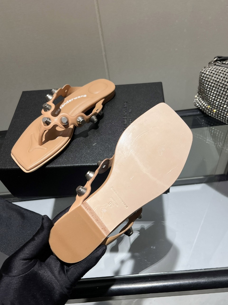 这款鞋子是AAAAA 1:1 质量 (非常棒). 使用了和原版一模一样的材料. 商标部分也保持了和亚历山大王/Alexander Wang一样. 图片拍摄是实物鞋子拍摄, 您所收到的实物保证和我们图片一模一样.