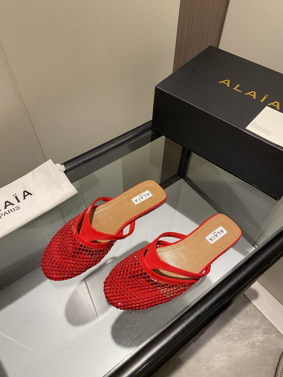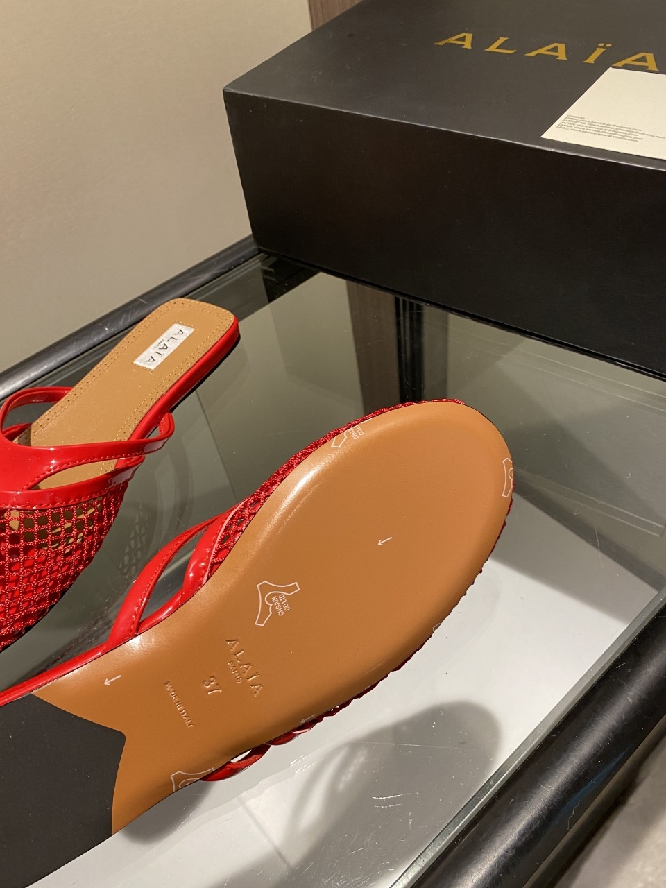 这款鞋子是AAAAA 1:1 质量 (非常棒). 使用了和原版一模一样的材料. 商标部分也保持了和Alaia一样. 图片拍摄是实物鞋子拍摄, 您所收到的实物保证和我们图片一模一样.