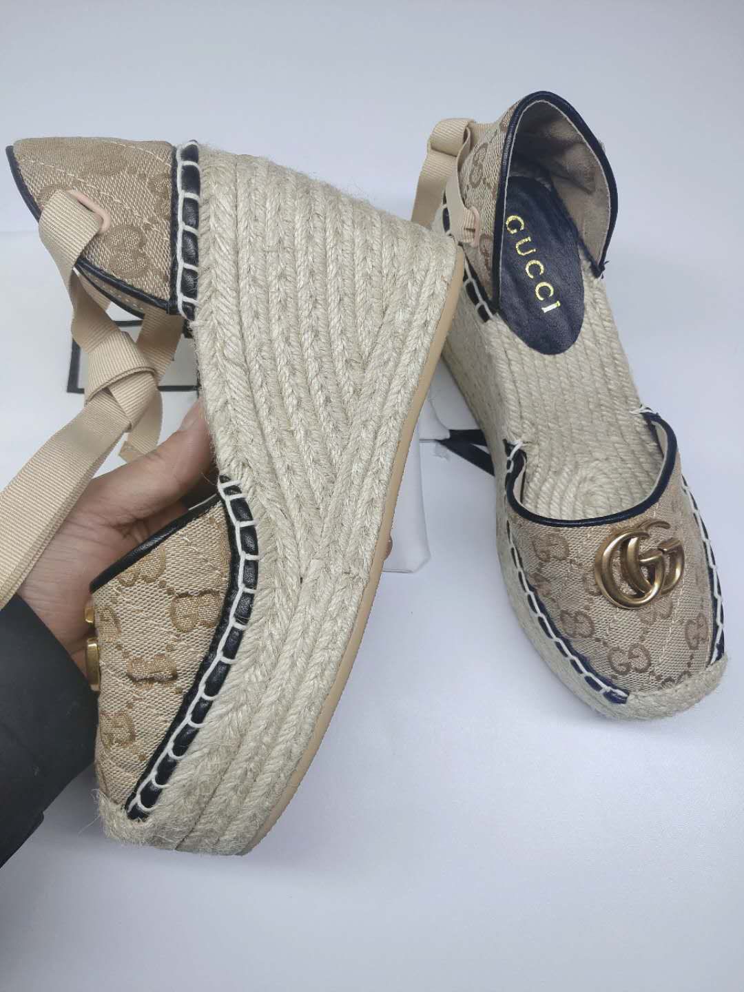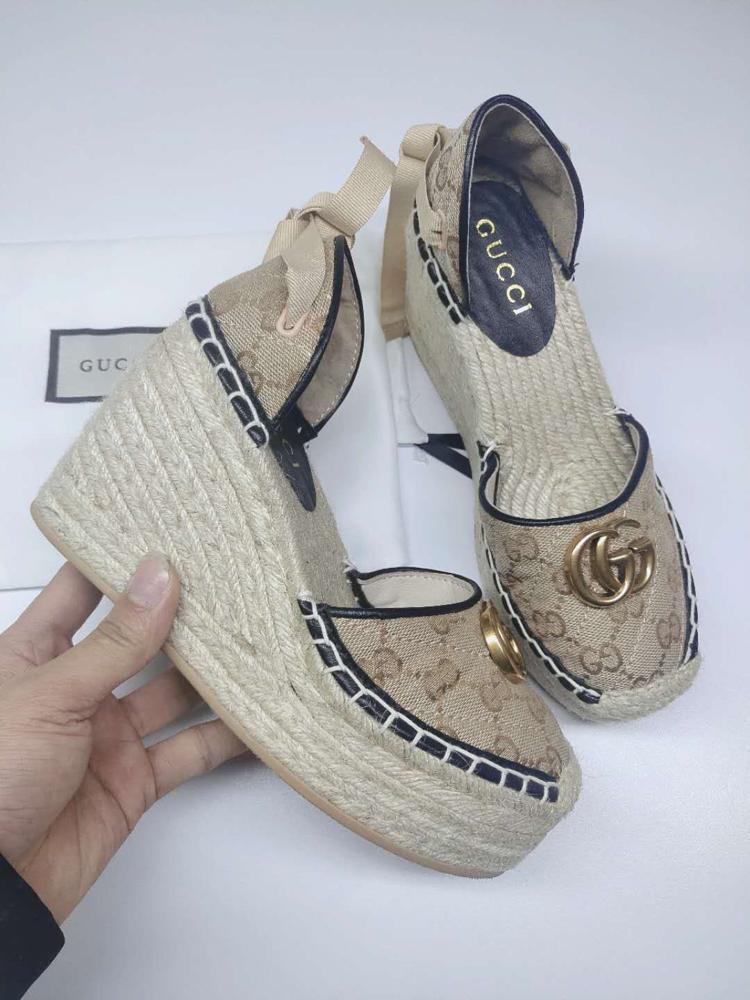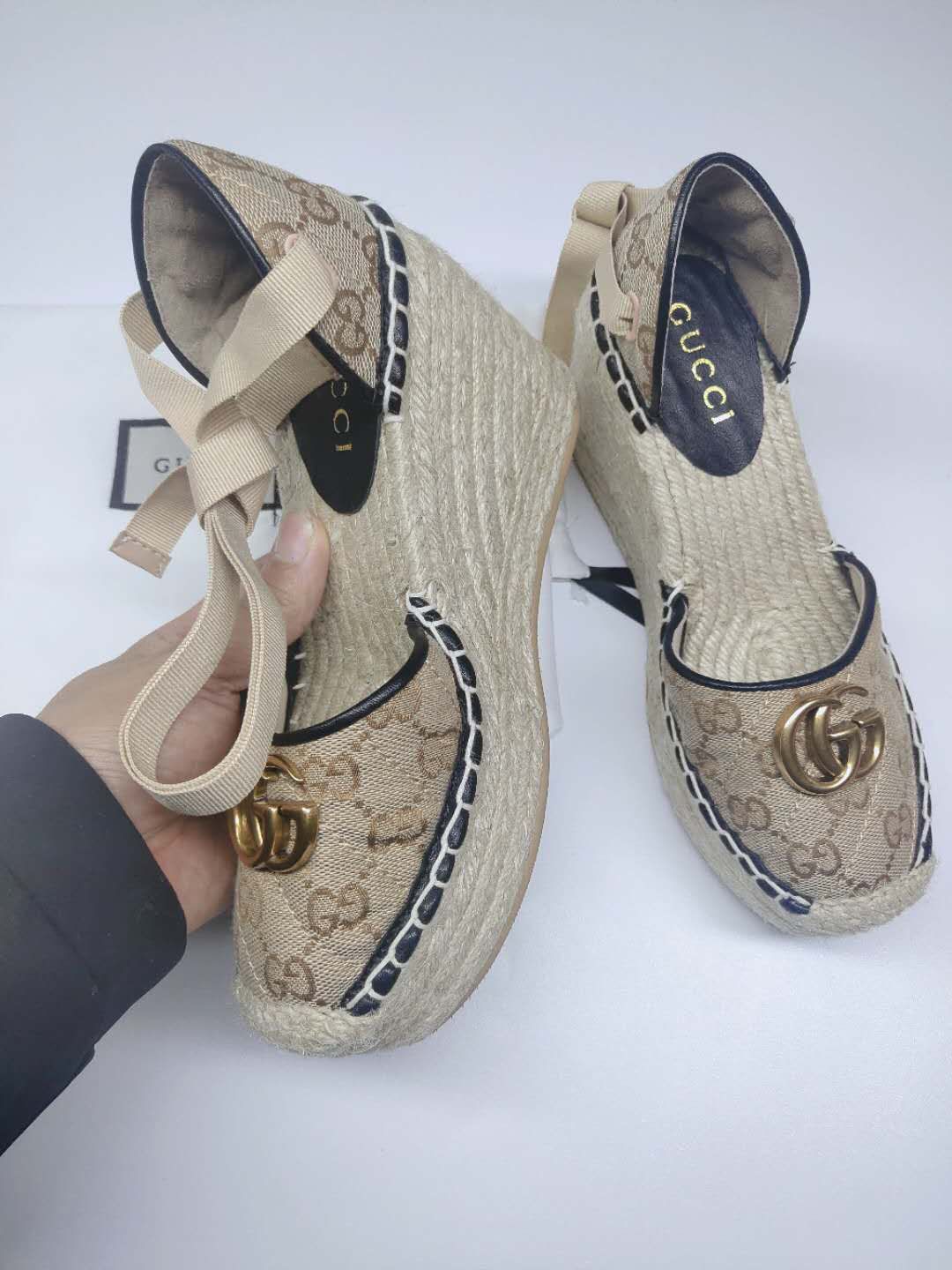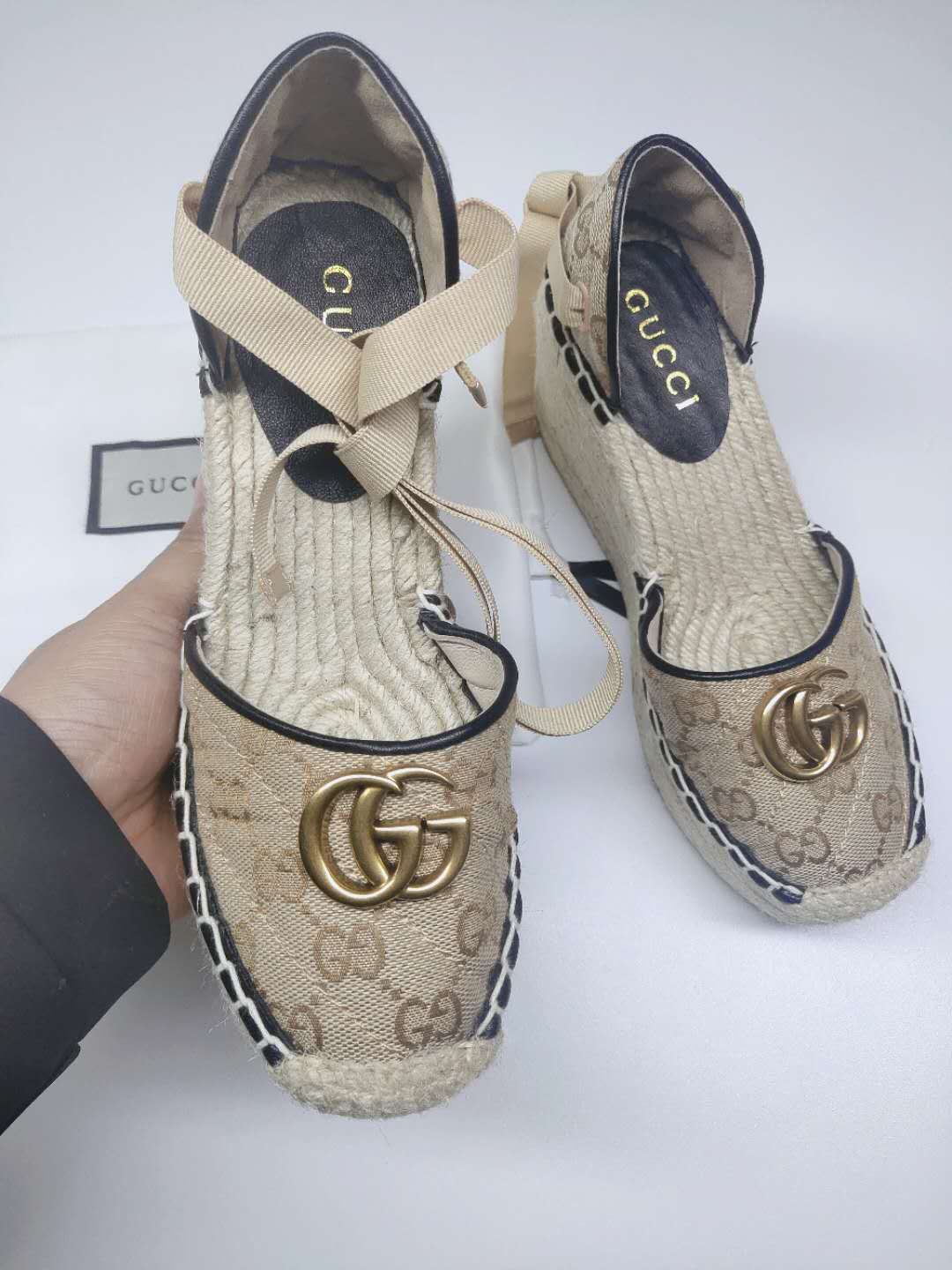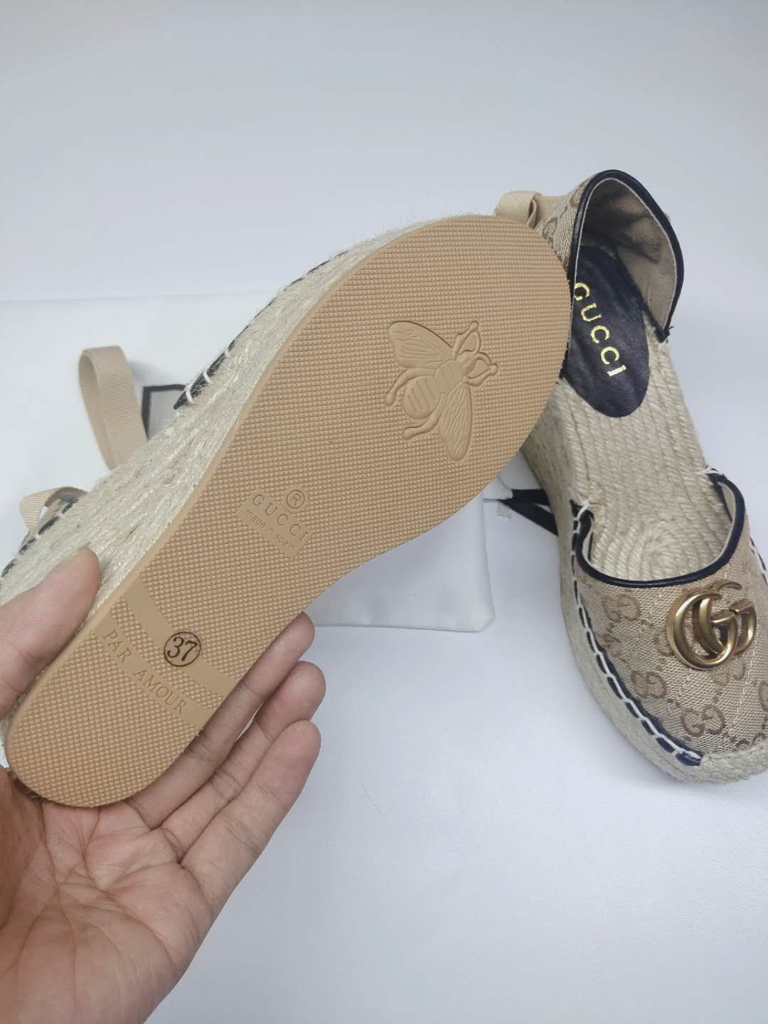 这款鞋子是AAAAA 1:1 质量 (非常棒). 使用了和原版一模一样的材料. 商标部分也保持了和古奇/Gucci一样. 图片拍摄是实物鞋子拍摄, 您所收到的实物保证和我们图片一模一样.