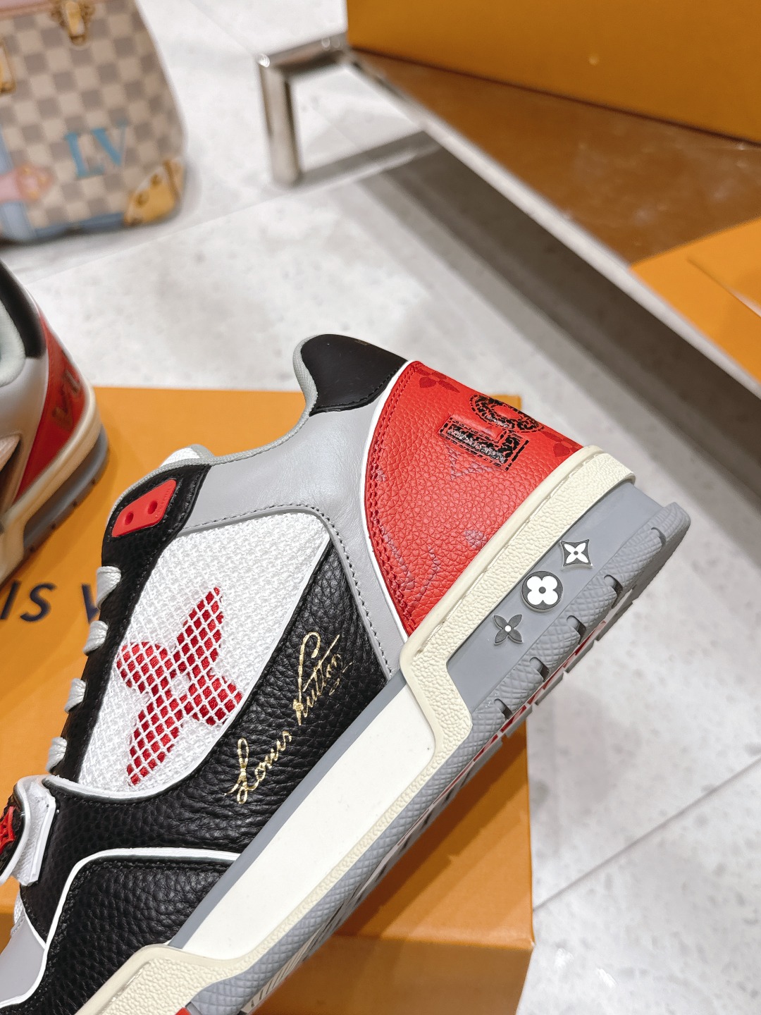 这款鞋子是AAAAA 1:1 质量 (非常棒). 使用了和原版一模一样的材料. 商标部分也保持了和路易威登/Louis Vuitton一样. 图片拍摄是实物鞋子拍摄, 您所收到的实物保证和我们图片一模一样.