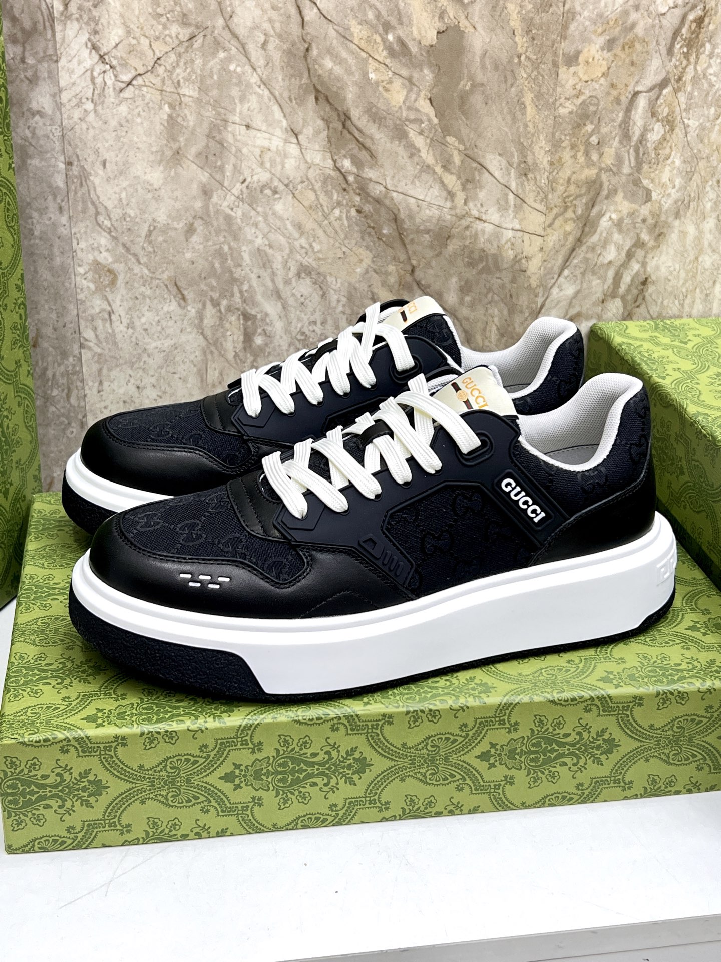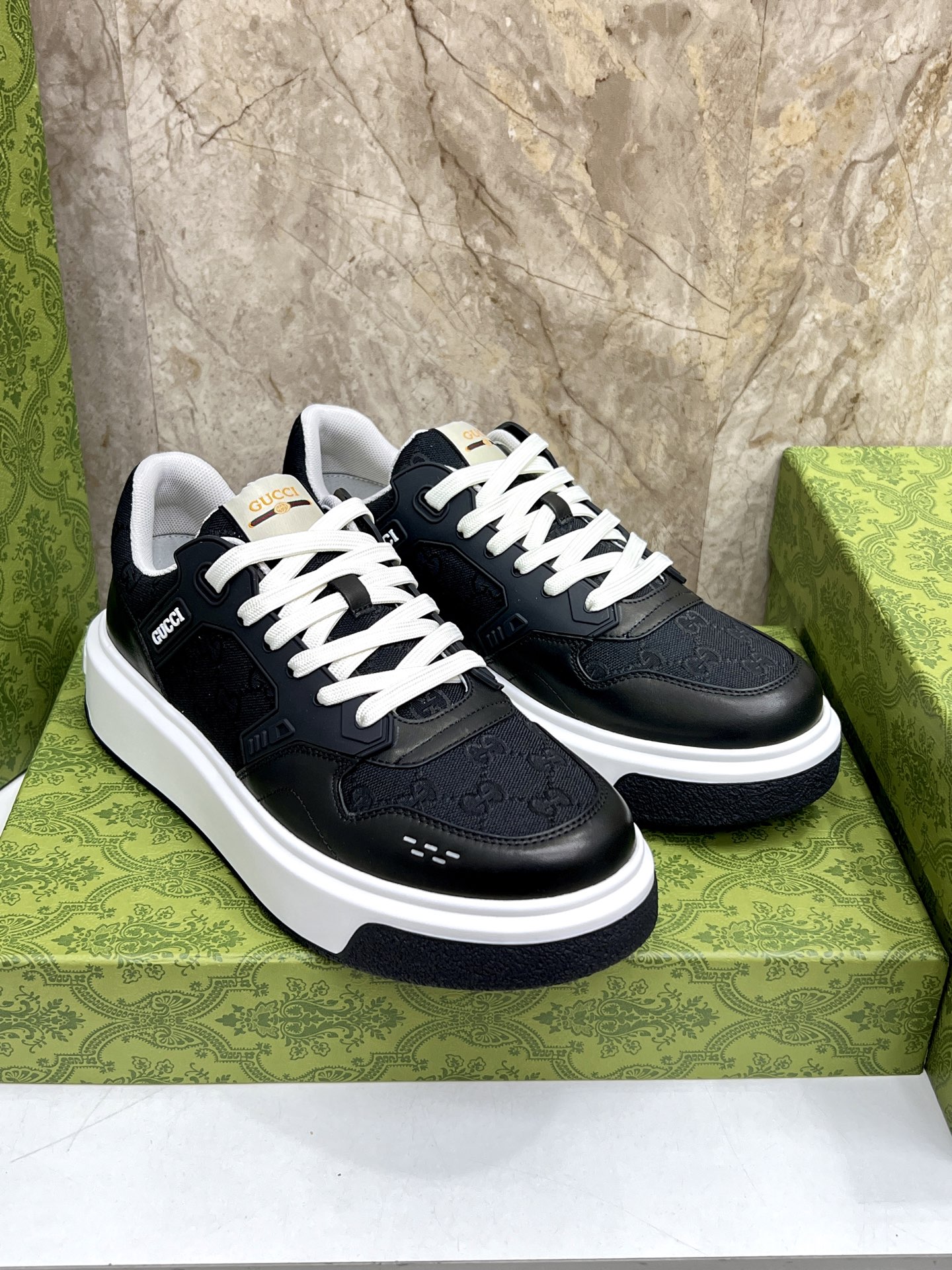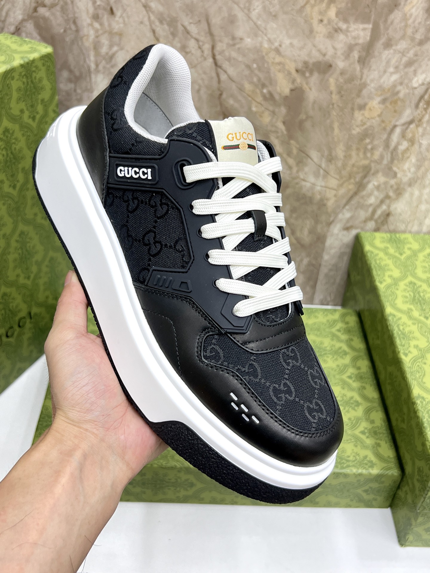 这款鞋子是AAAAA 1:1 质量 (非常棒). 使用了和原版一模一样的材料. 商标部分也保持了和古奇/Gucci一样. 图片拍摄是实物鞋子拍摄, 您所收到的实物保证和我们图片一模一样.