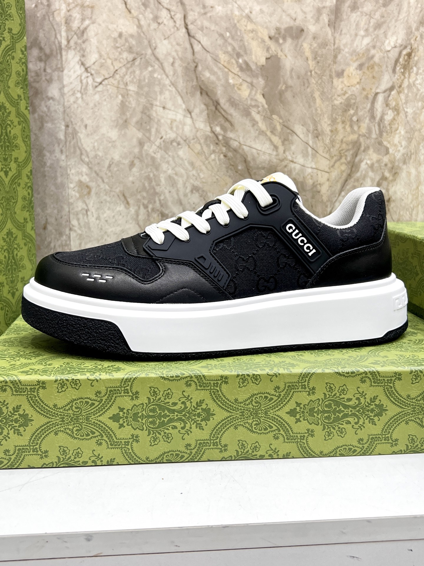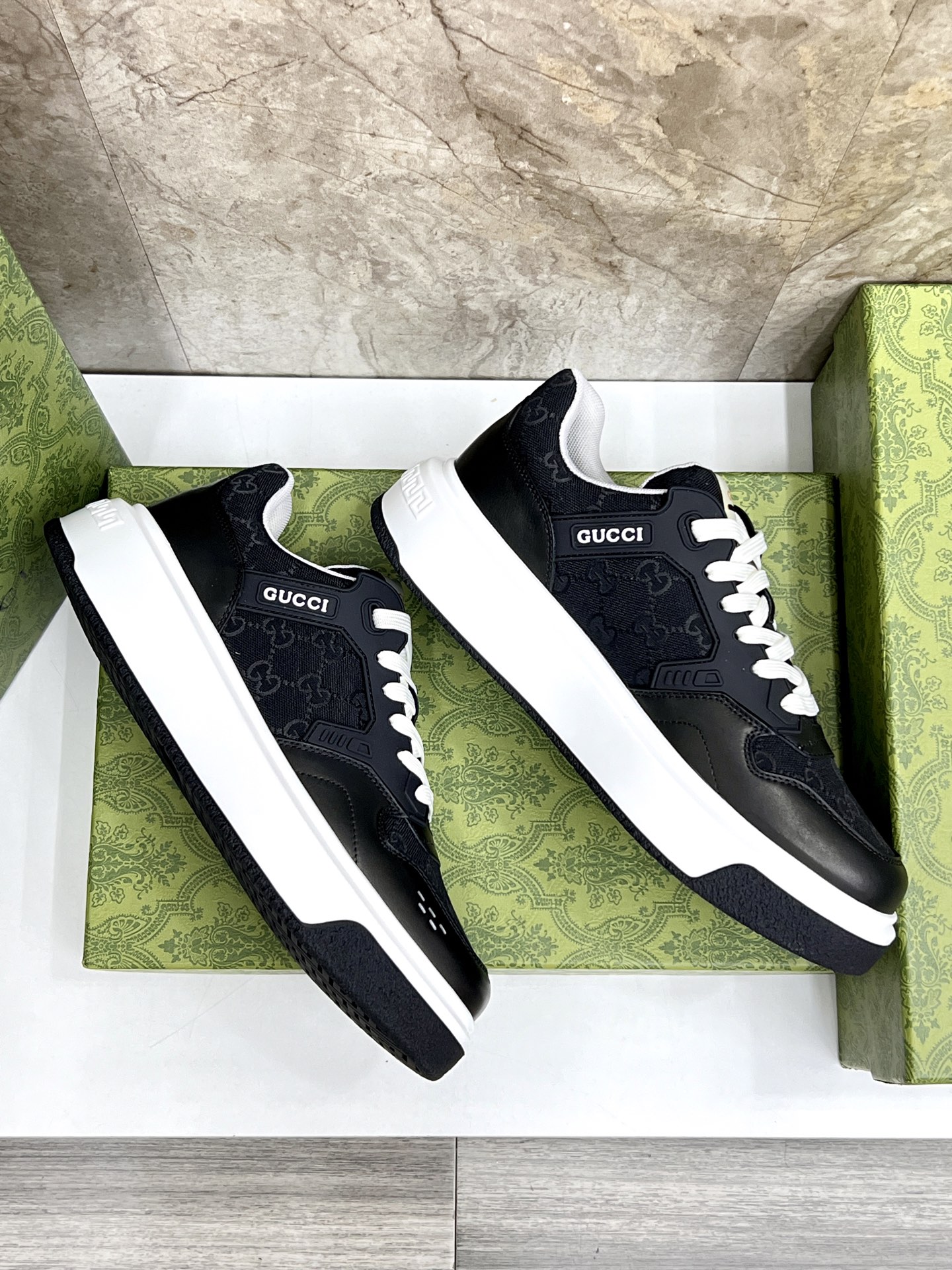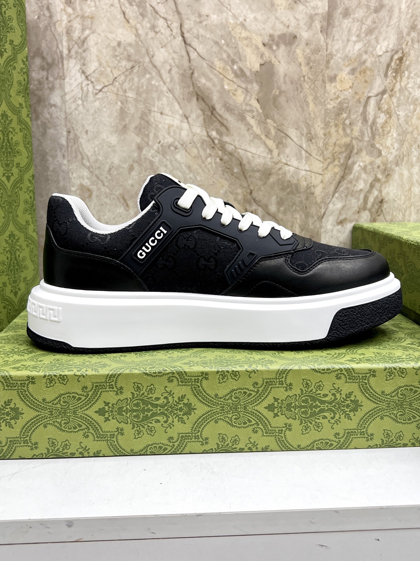 这款鞋子是AAAAA 1:1 质量 (非常棒). 使用了和原版一模一样的材料. 商标部分也保持了和古奇/Gucci一样. 图片拍摄是实物鞋子拍摄, 您所收到的实物保证和我们图片一模一样.
