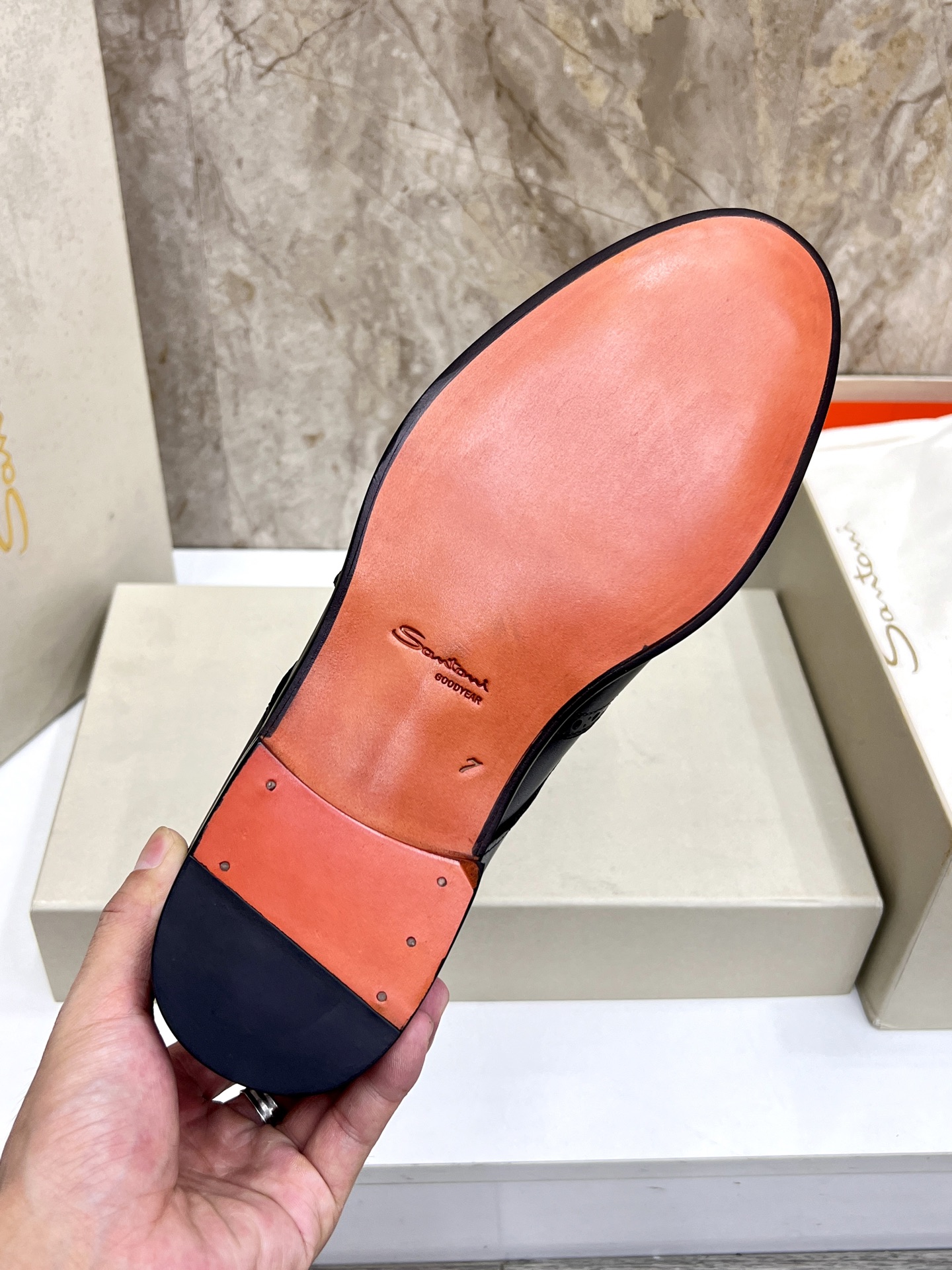这款鞋子是AAAAA 1:1 质量 (非常棒). 使用了和原版一模一样的材料. 商标部分也保持了和Santoni一样. 图片拍摄是实物鞋子拍摄, 您所收到的实物保证和我们图片一模一样.