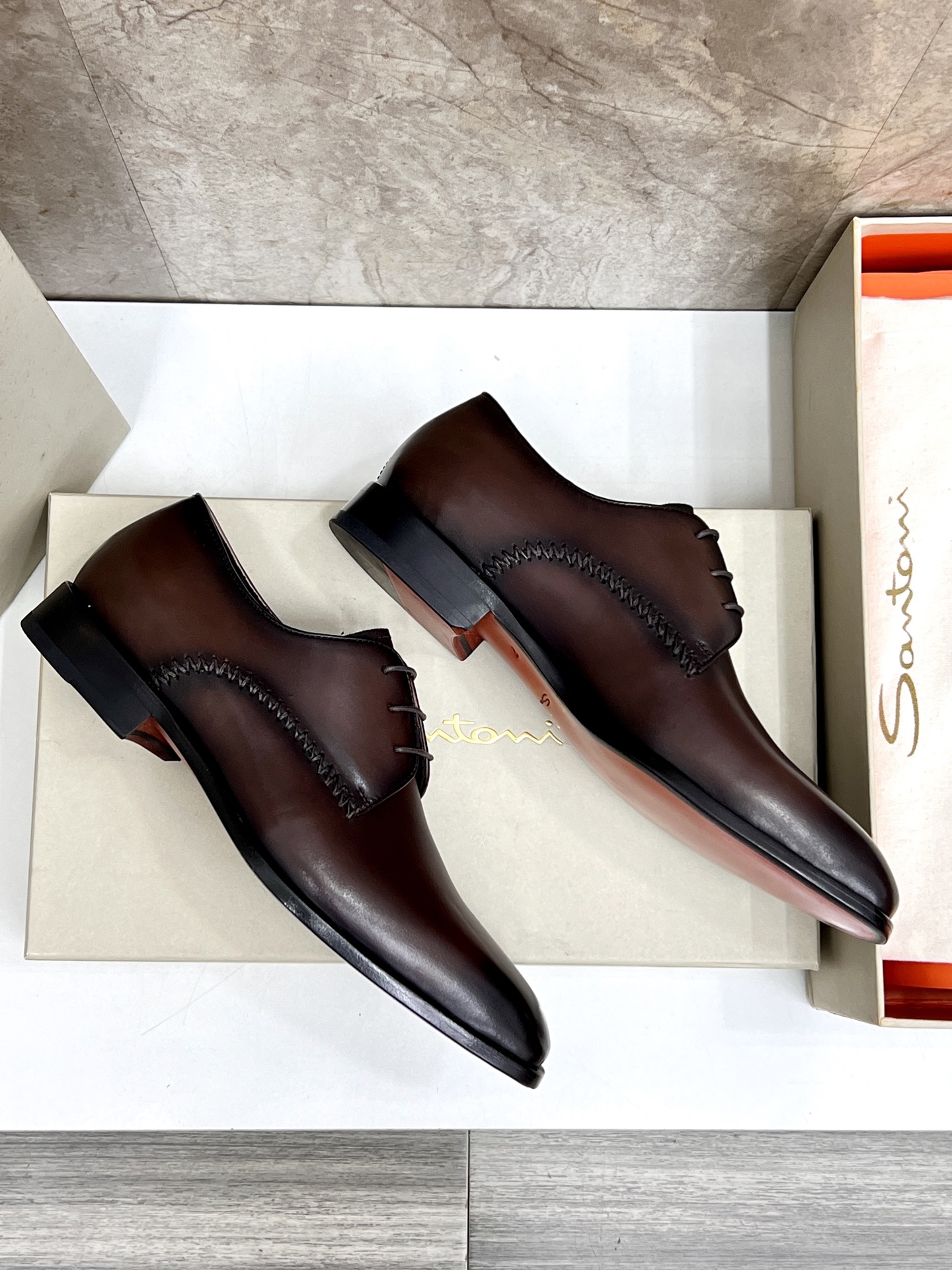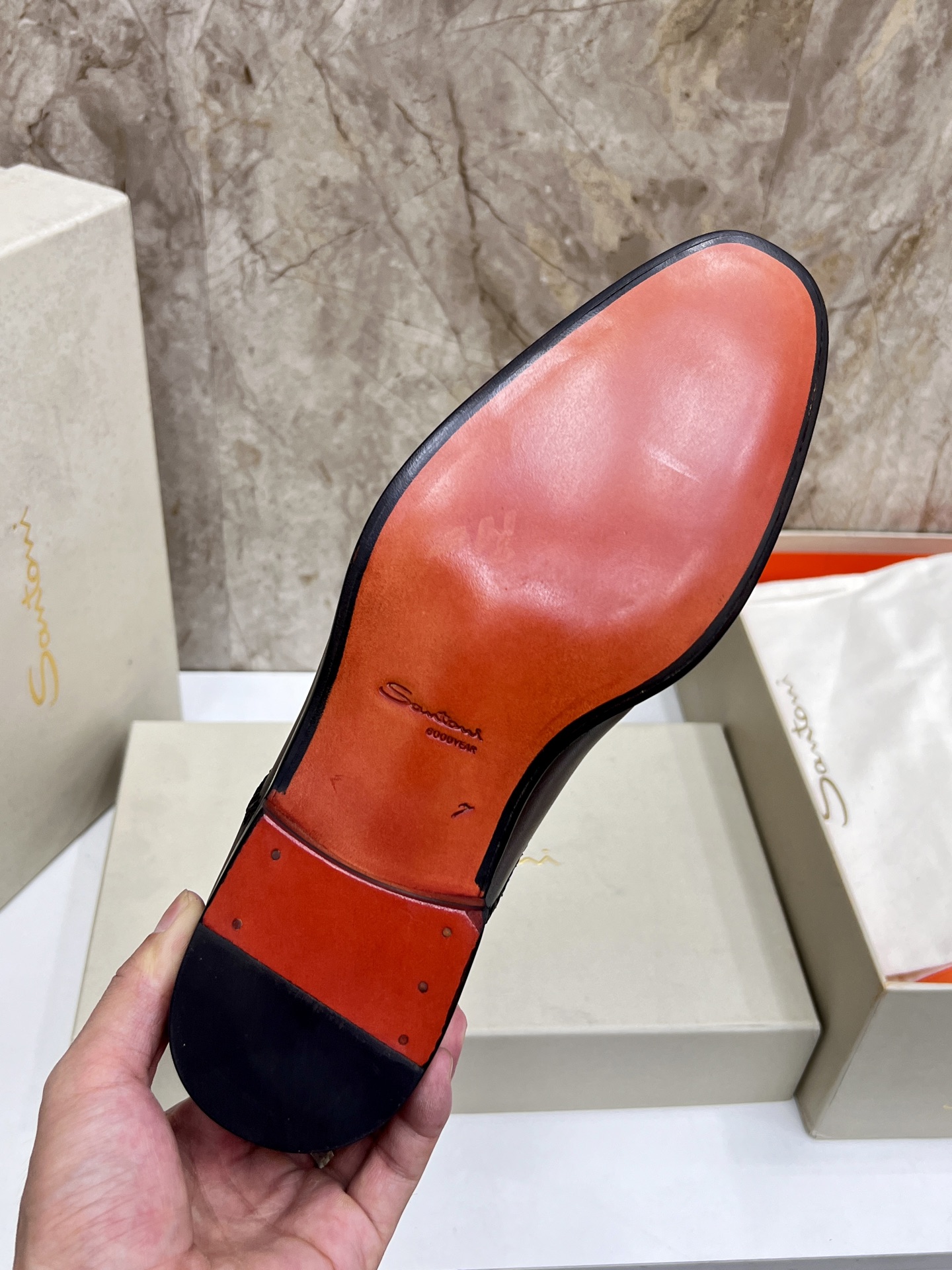 这款鞋子是AAAAA 1:1 质量 (非常棒). 使用了和原版一模一样的材料. 商标部分也保持了和Santoni一样. 图片拍摄是实物鞋子拍摄, 您所收到的实物保证和我们图片一模一样.