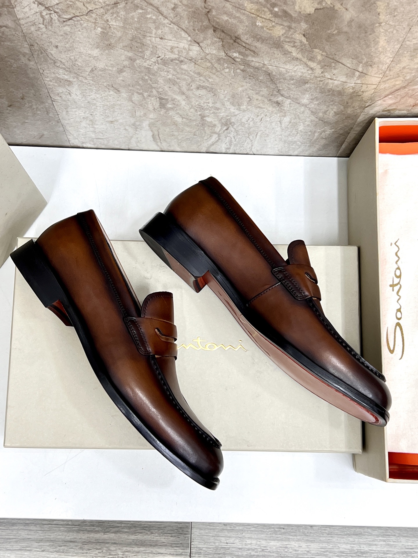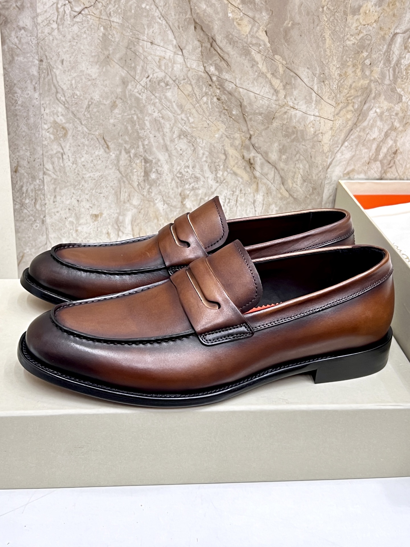 这款鞋子是AAAAA 1:1 质量 (非常棒). 使用了和原版一模一样的材料. 商标部分也保持了和Santoni一样. 图片拍摄是实物鞋子拍摄, 您所收到的实物保证和我们图片一模一样.
