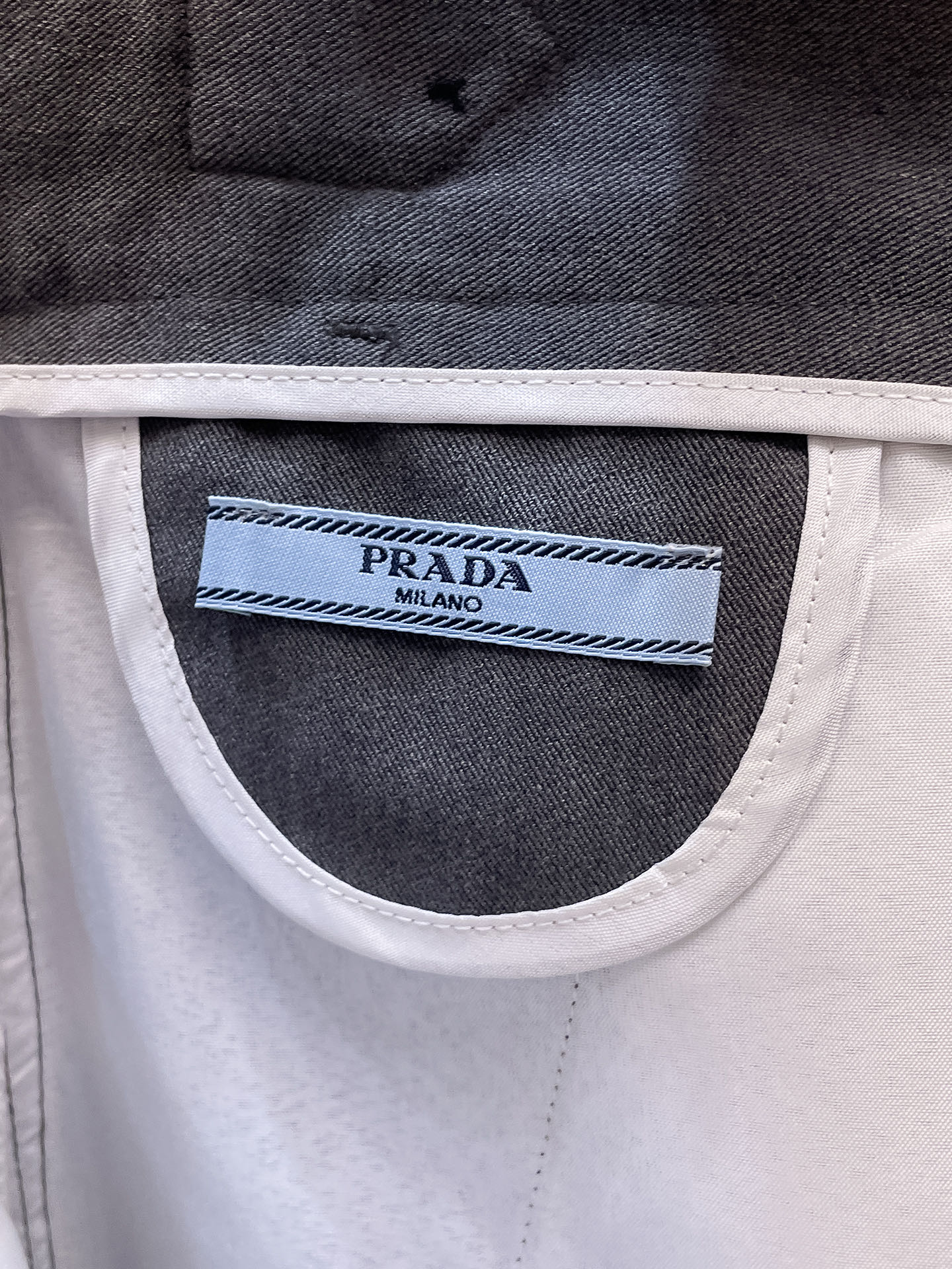 这款衣服是AAAAA 1:1 质量 (非常棒). 使用了和原版一模一样的材料. 商标部分也保持了和普拉达/Prada一样. 图片拍摄是实物衣服拍摄, 您所收到的实物保证和我们图片一模一样.