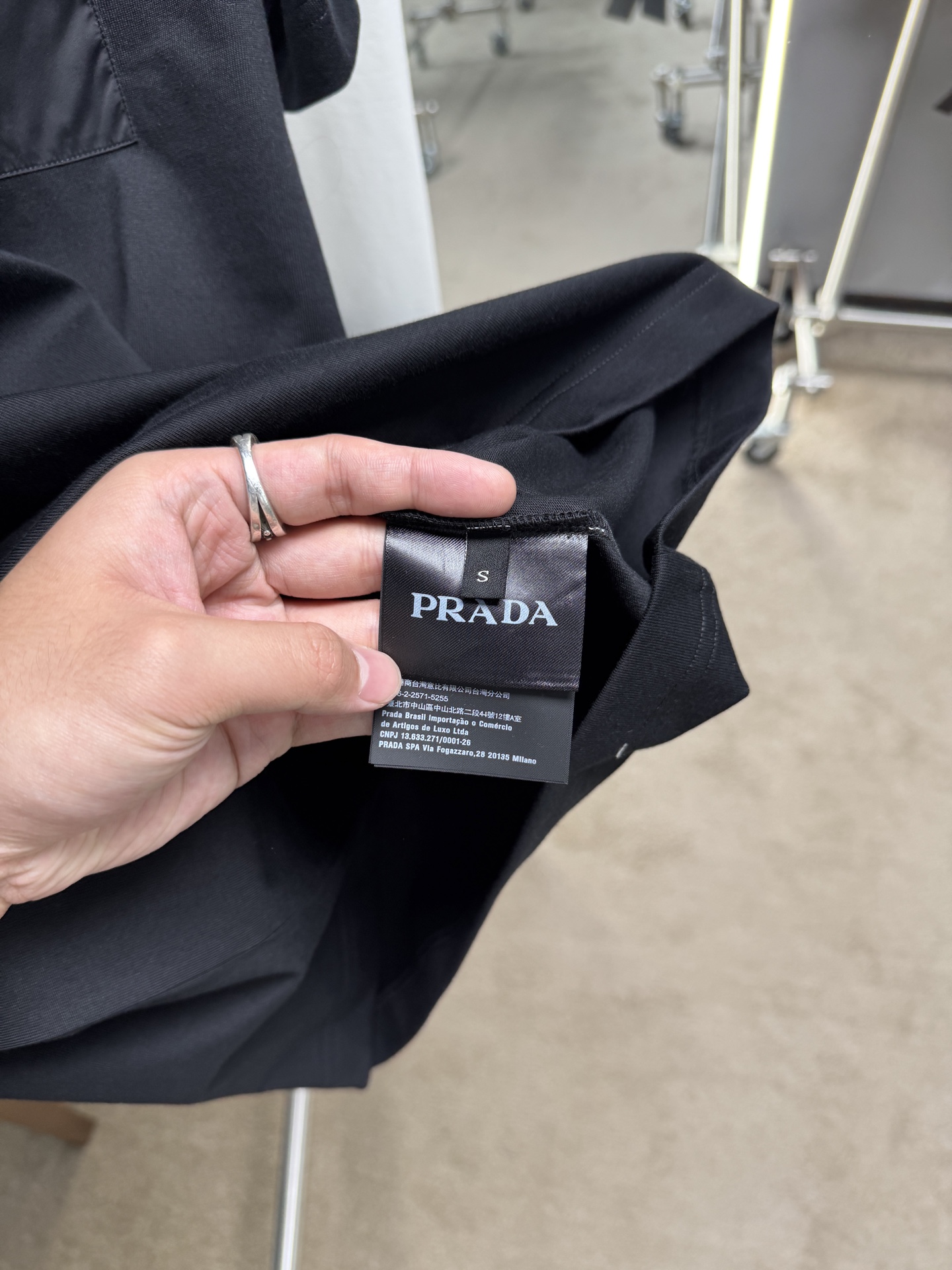 这款衣服是AAAAA 1:1 质量 (非常棒). 使用了和原版一模一样的材料. 商标部分也保持了和普拉达/Prada一样. 图片拍摄是实物衣服拍摄, 您所收到的实物保证和我们图片一模一样.