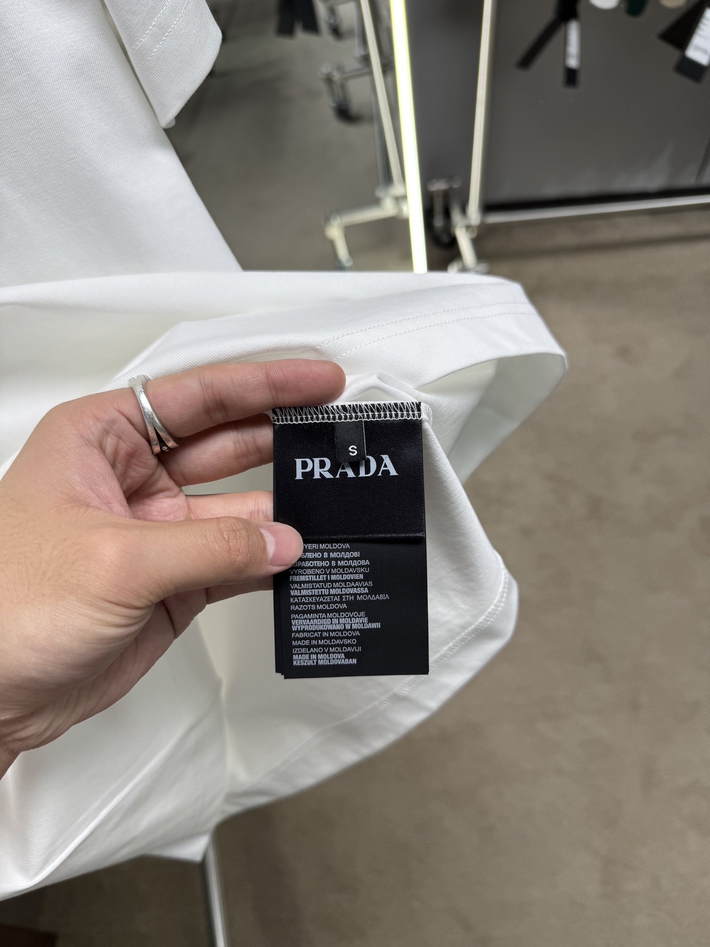 这款衣服是AAAAA 1:1 质量 (非常棒). 使用了和原版一模一样的材料. 商标部分也保持了和普拉达/Prada一样. 图片拍摄是实物衣服拍摄, 您所收到的实物保证和我们图片一模一样.