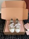 这款鞋子是AAAAA 1:1 质量 (非常棒). 使用了和原版一模一样的材料. 商标部分也保持了和缪缪/Miu Miu一样. 图片拍摄是实物鞋子拍摄, 您所收到的实物保证和我们图片一模一样.
