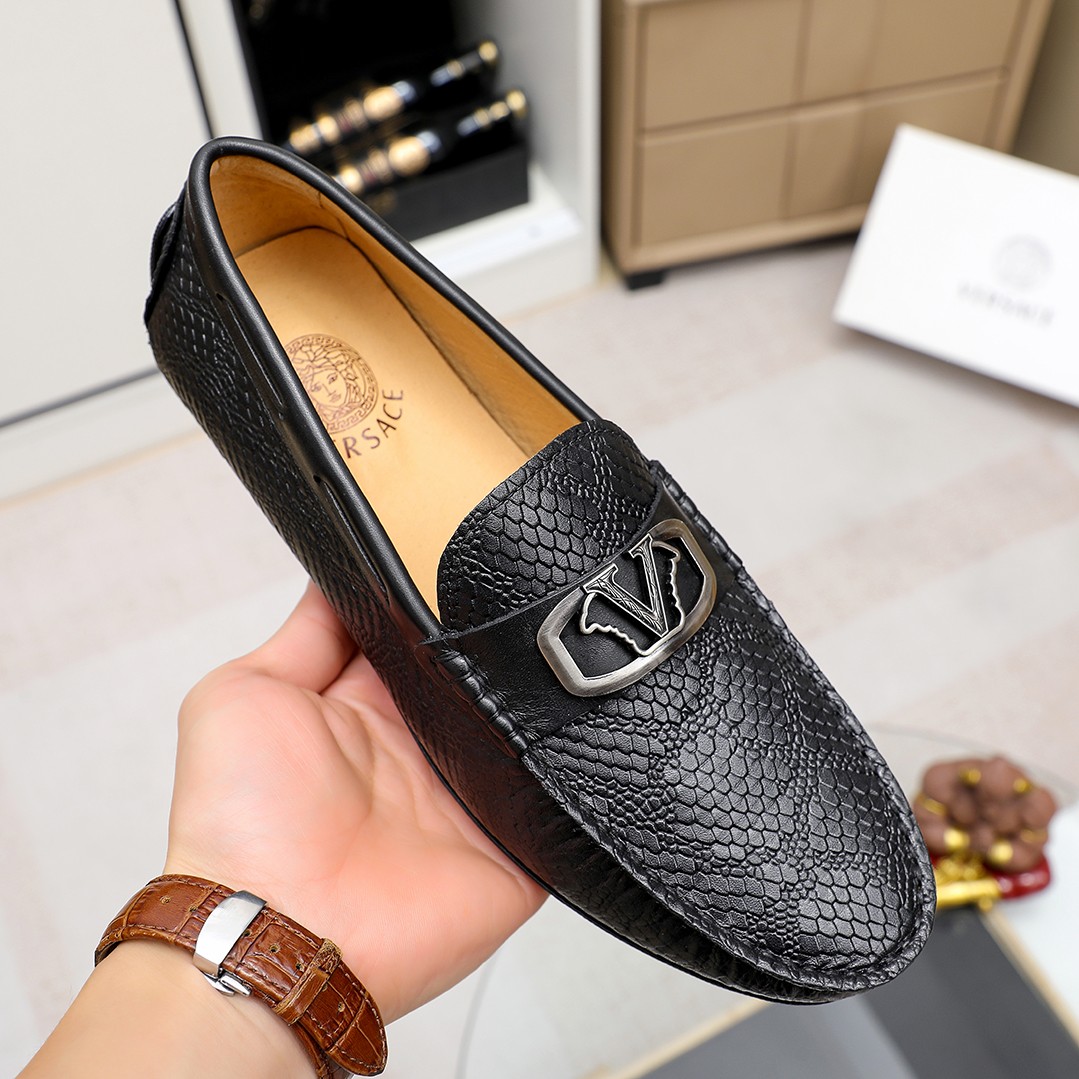这款鞋子是AAAAA 1:1 质量 (非常棒). 使用了和原版一模一样的材料. 商标部分也保持了和范思哲/Versace一样. 图片拍摄是实物鞋子拍摄, 您所收到的实物保证和我们图片一模一样.