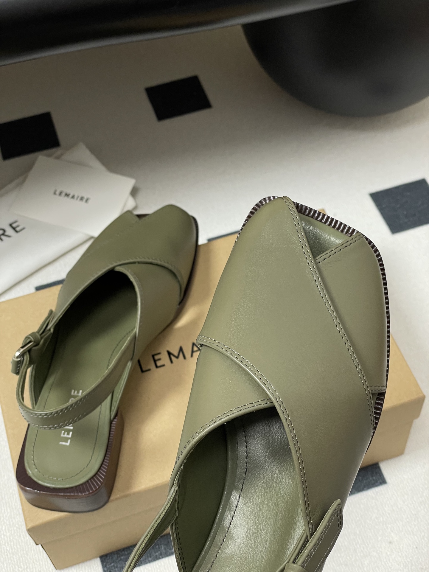 这款鞋子是AAAAA 1:1 质量 (非常棒). 使用了和原版一模一样的材料. 商标部分也保持了和Lemaire一样. 图片拍摄是实物鞋子拍摄, 您所收到的实物保证和我们图片一模一样.