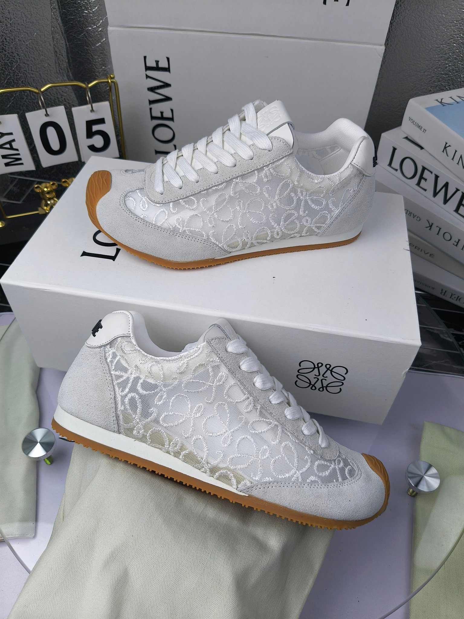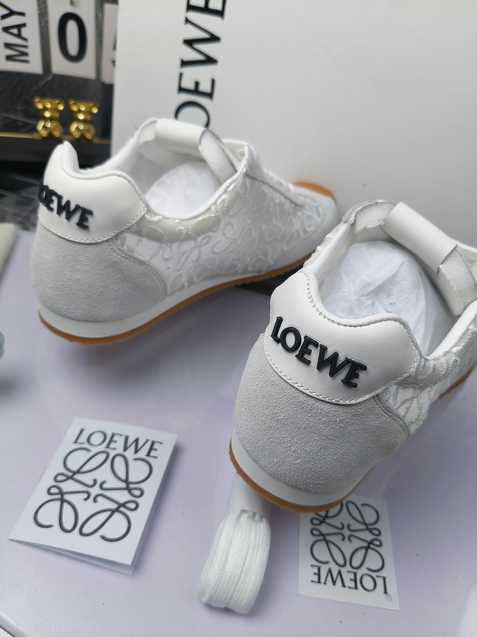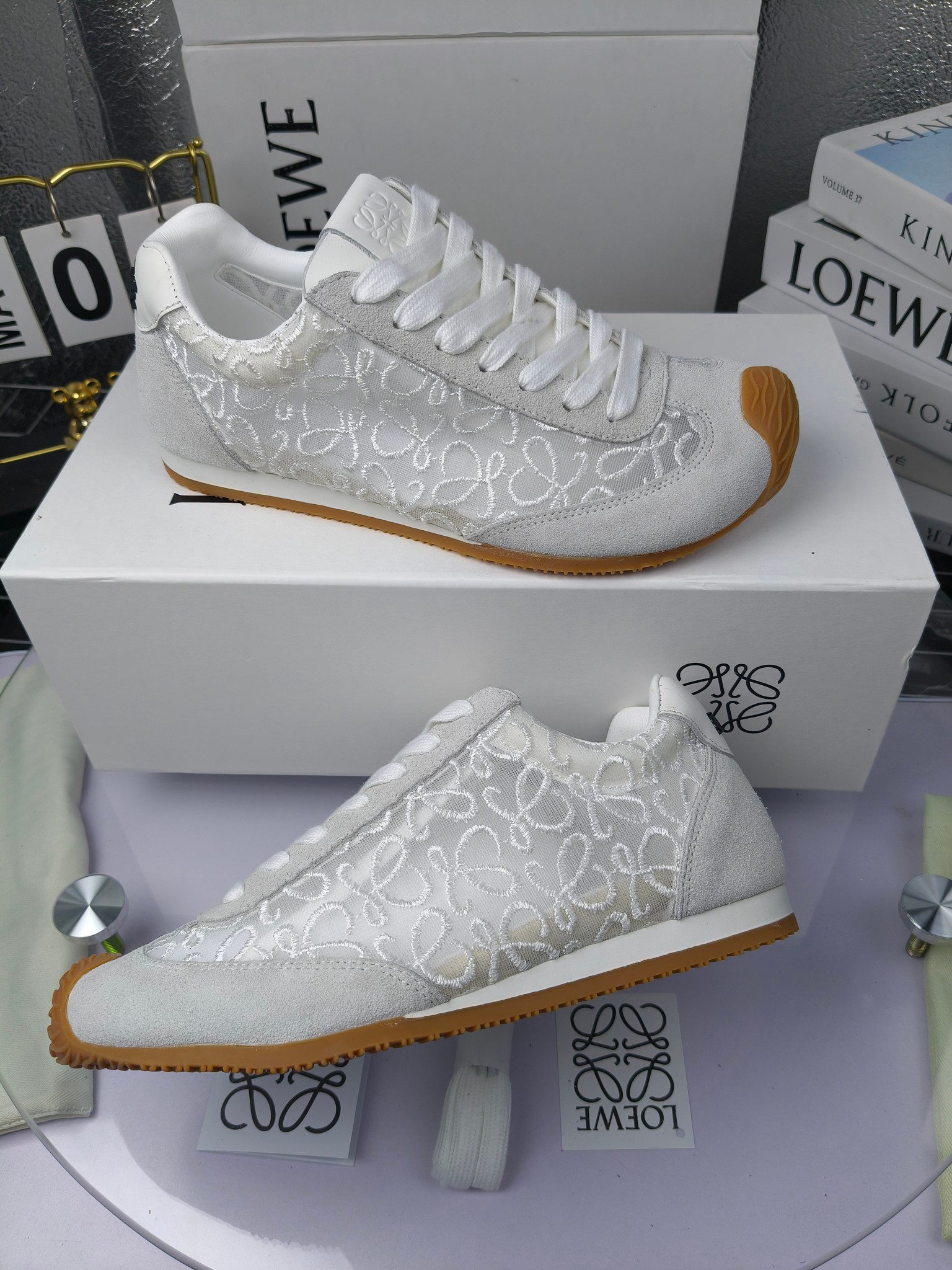这款鞋子是AAAAA 1:1 质量 (非常棒). 使用了和原版一模一样的材料. 商标部分也保持了和罗意威/Loewe一样. 图片拍摄是实物鞋子拍摄, 您所收到的实物保证和我们图片一模一样.