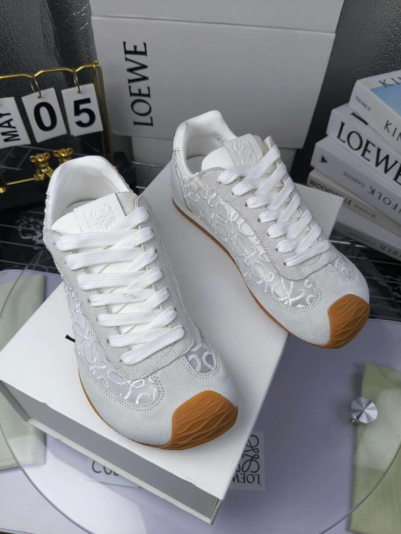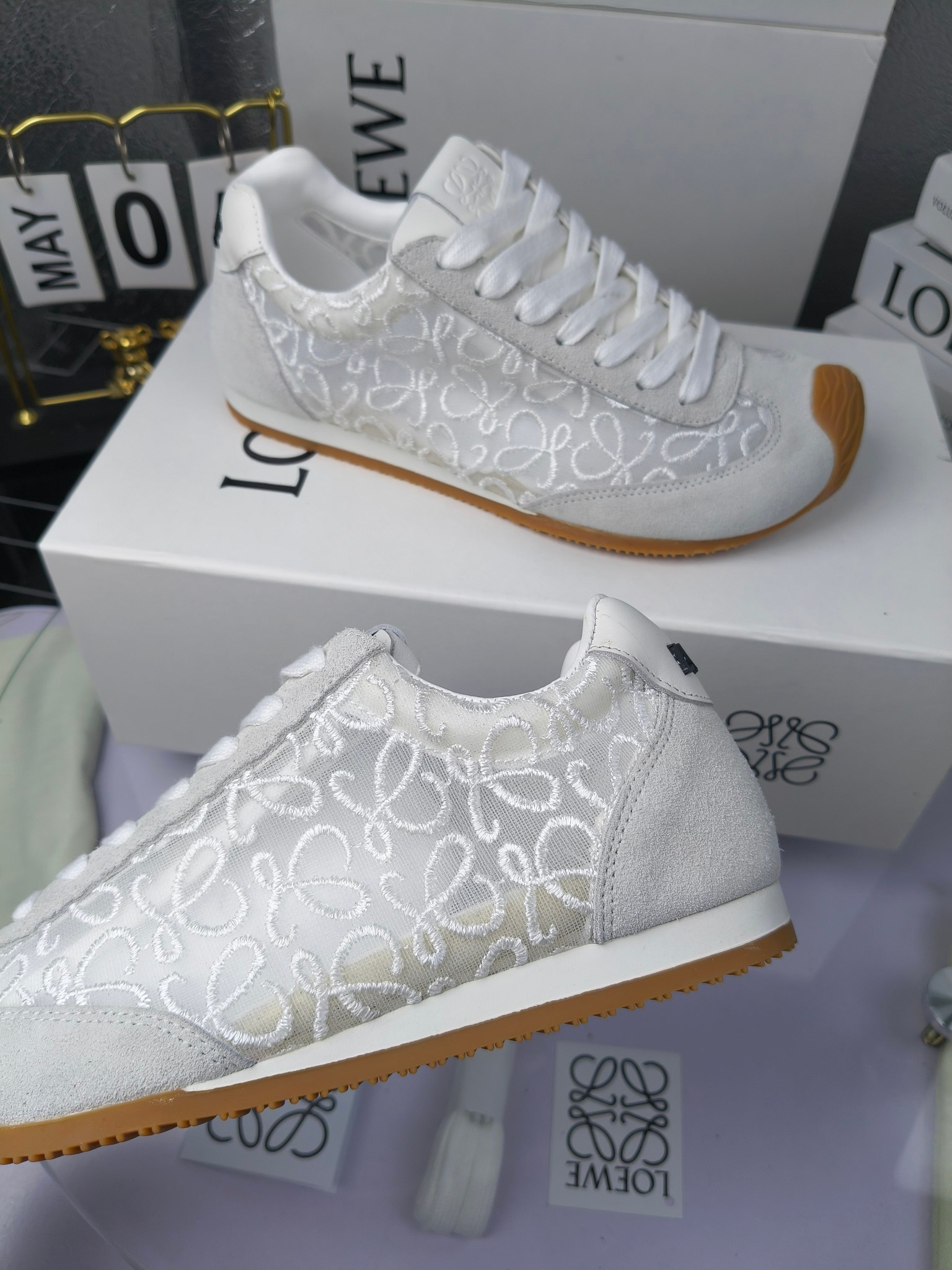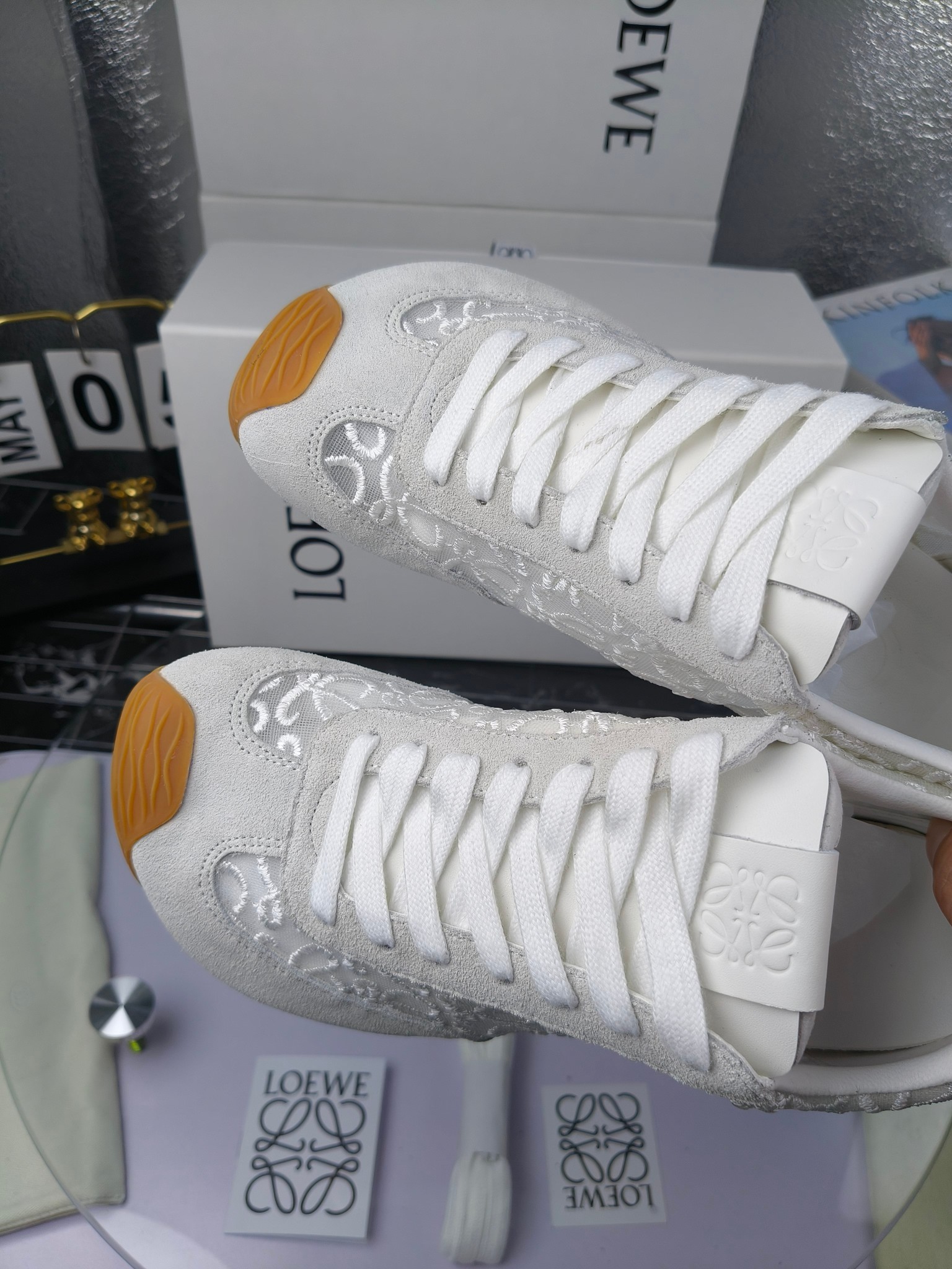 这款鞋子是AAAAA 1:1 质量 (非常棒). 使用了和原版一模一样的材料. 商标部分也保持了和罗意威/Loewe一样. 图片拍摄是实物鞋子拍摄, 您所收到的实物保证和我们图片一模一样.