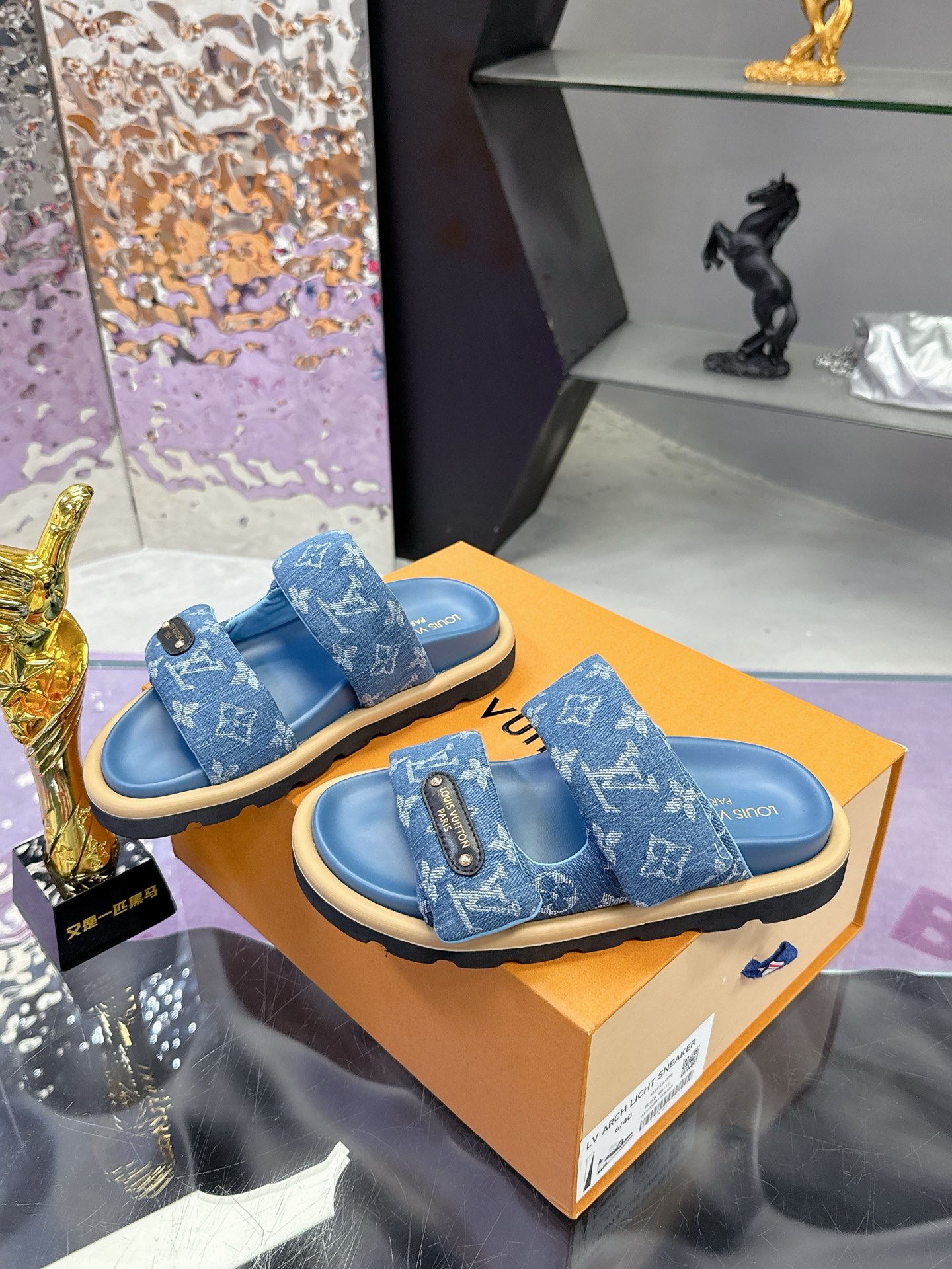 这款鞋子是AAAAA 1:1 质量 (非常棒). 使用了和原版一模一样的材料. 商标部分也保持了和路易威登/Louis Vuitton一样. 图片拍摄是实物鞋子拍摄, 您所收到的实物保证和我们图片一模一样.