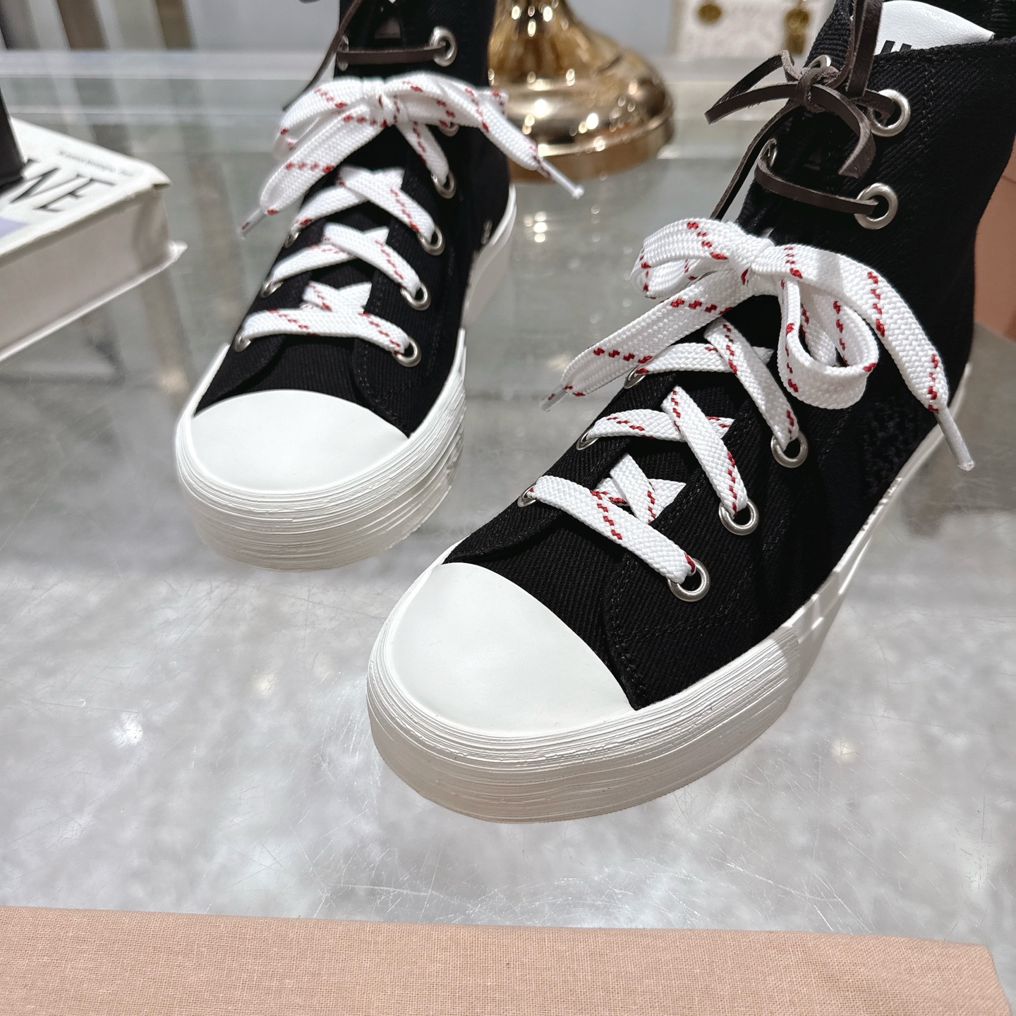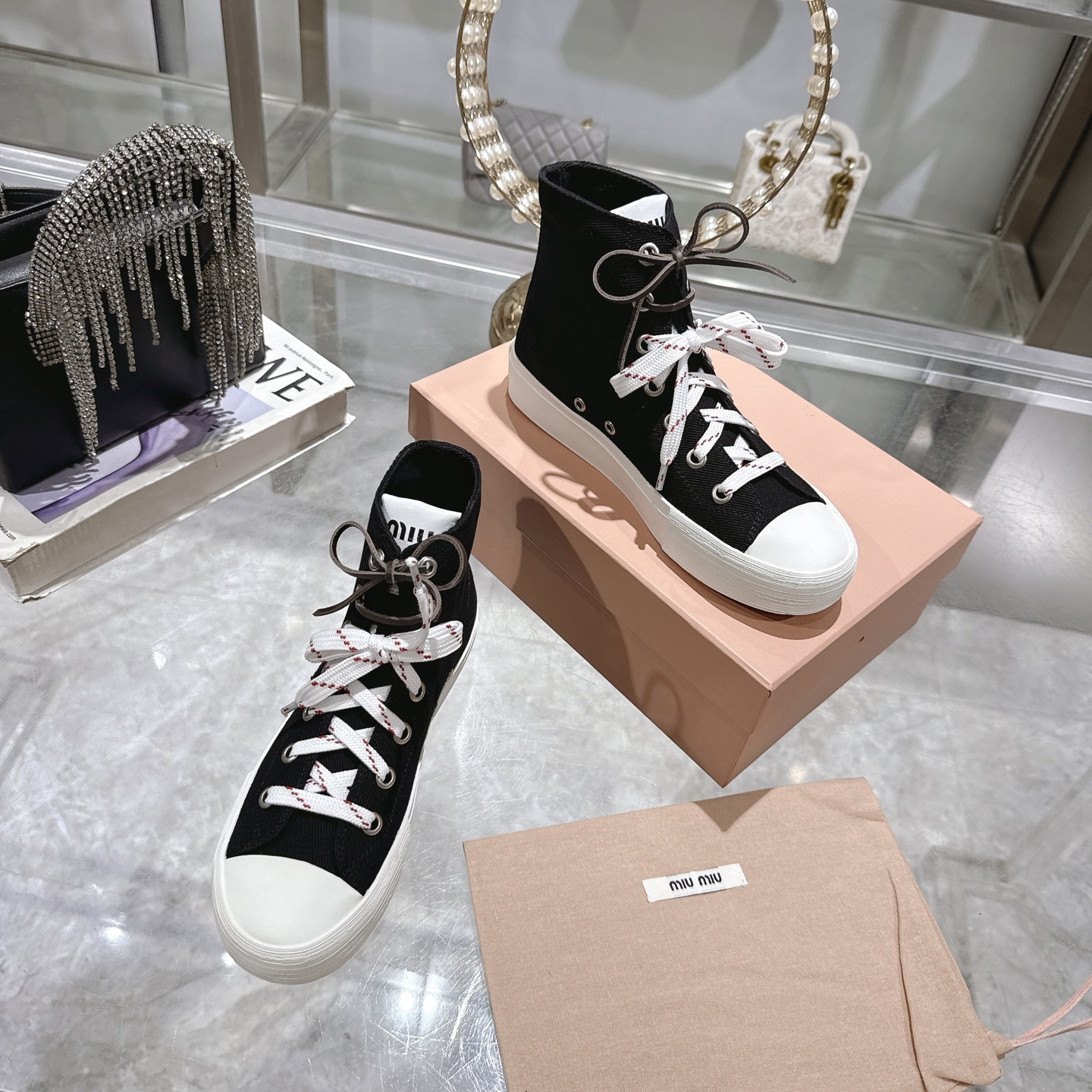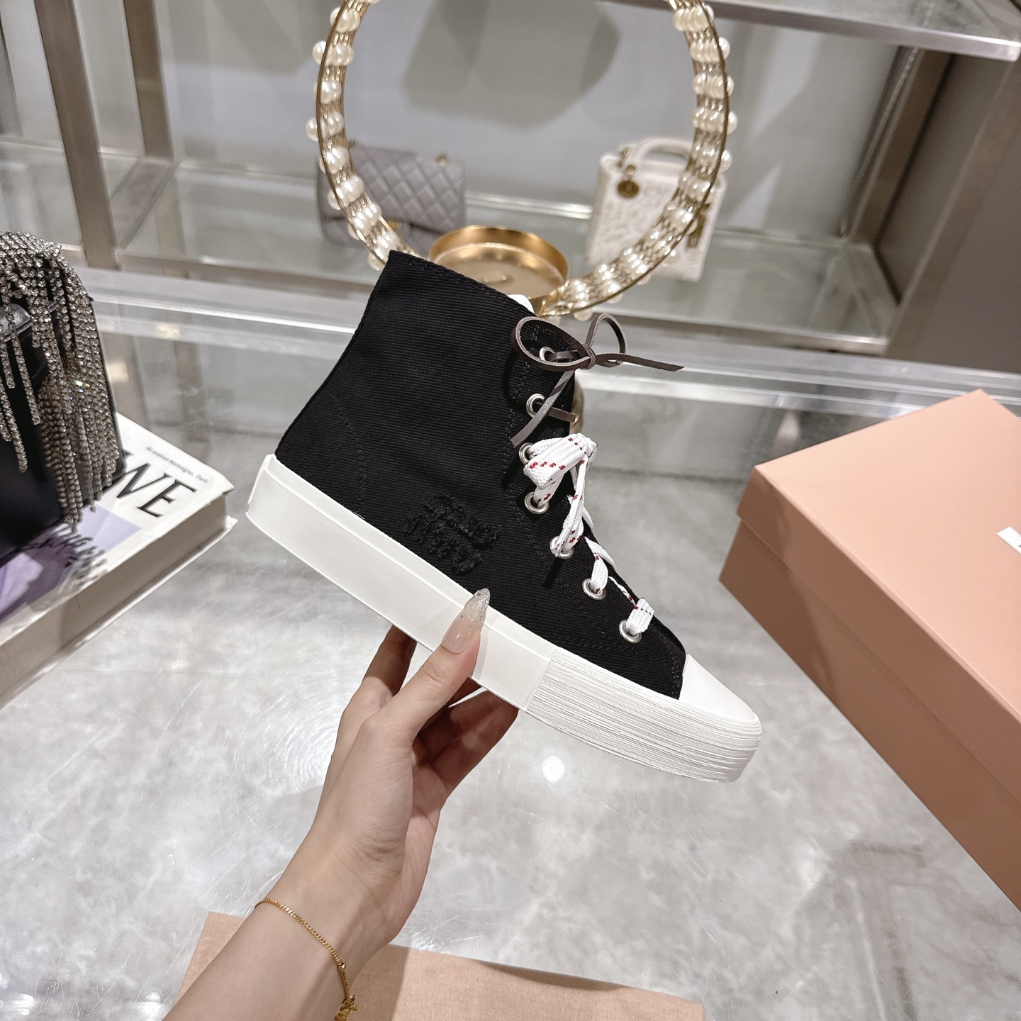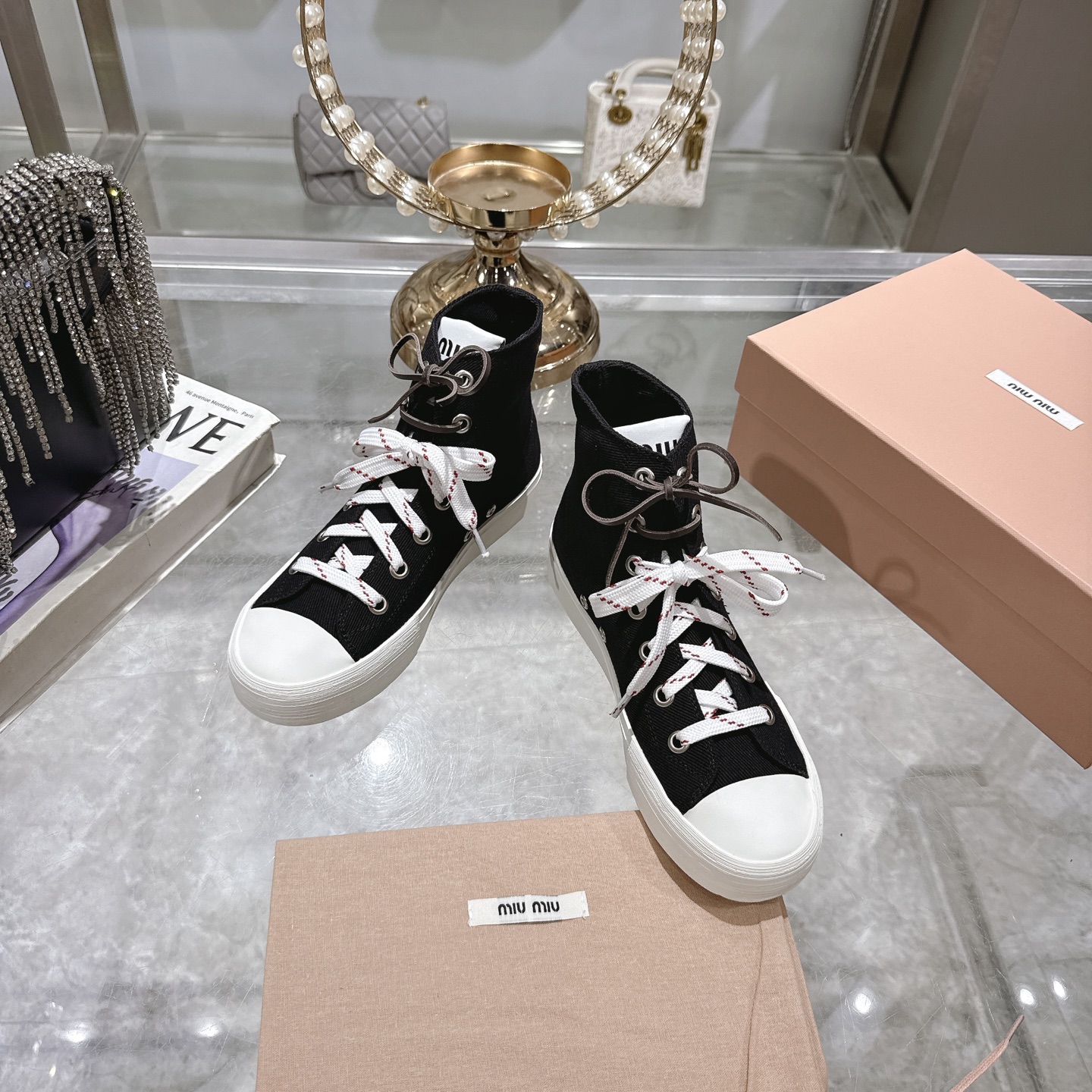 这款鞋子是AAAAA 1:1 质量 (非常棒). 使用了和原版一模一样的材料. 商标部分也保持了和缪缪/Miu Miu一样. 图片拍摄是实物鞋子拍摄, 您所收到的实物保证和我们图片一模一样.