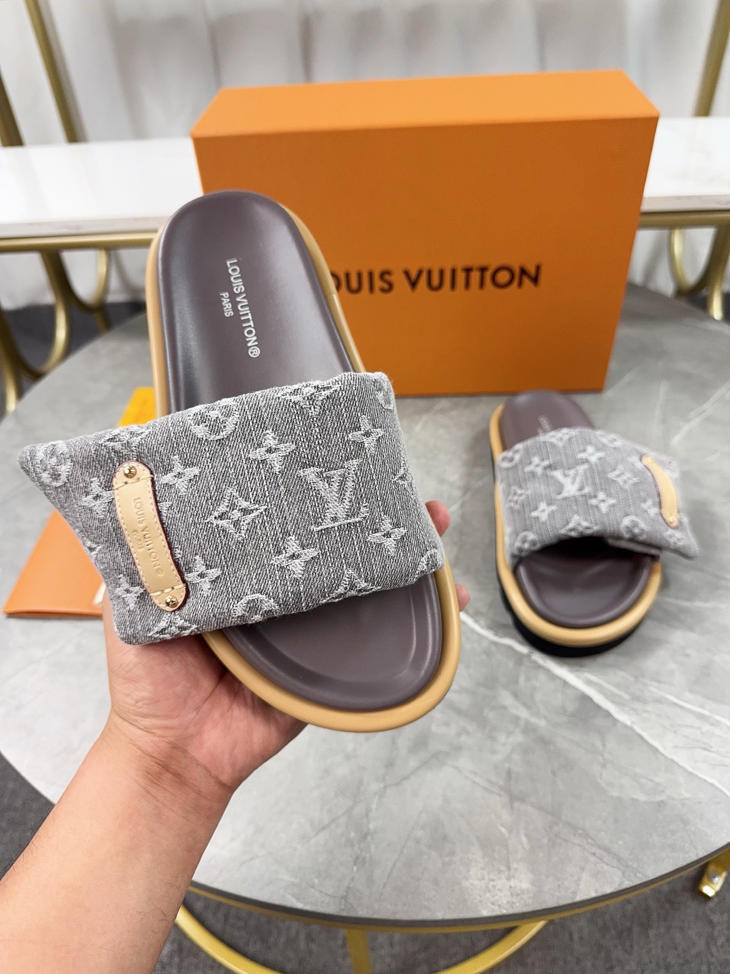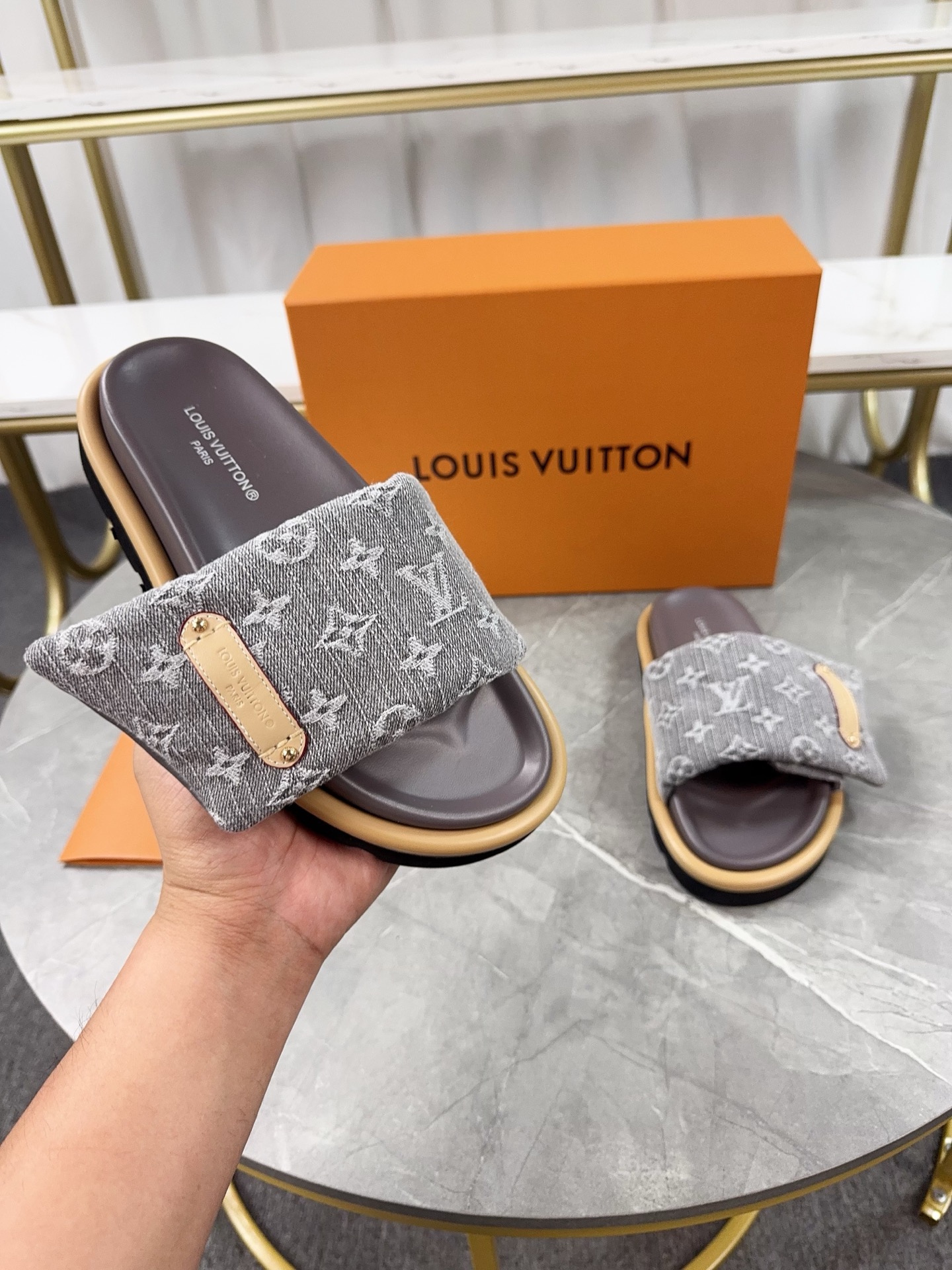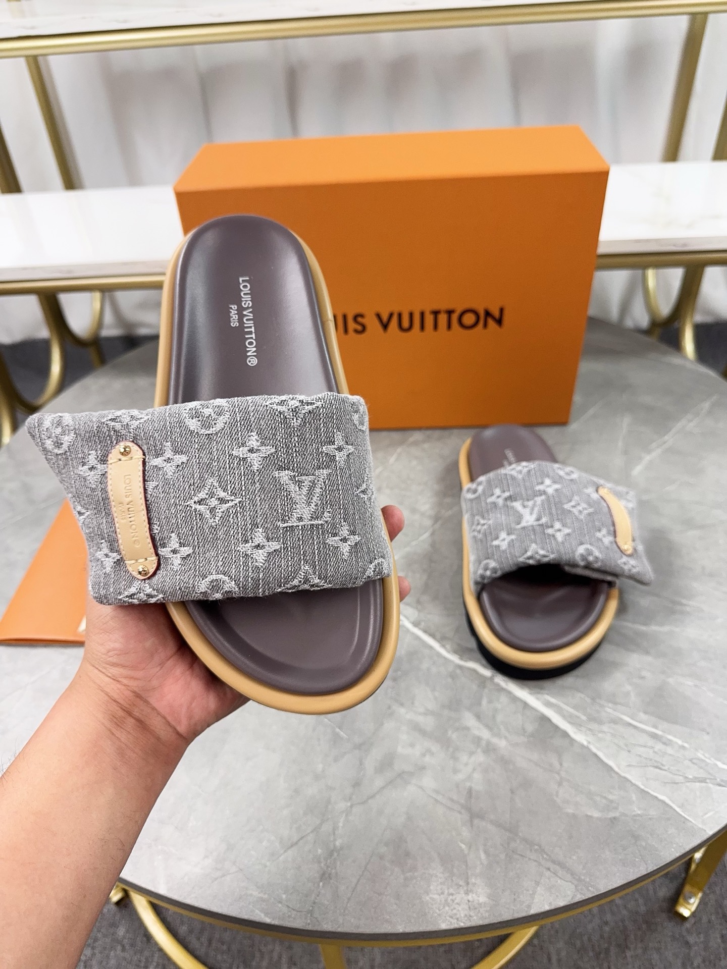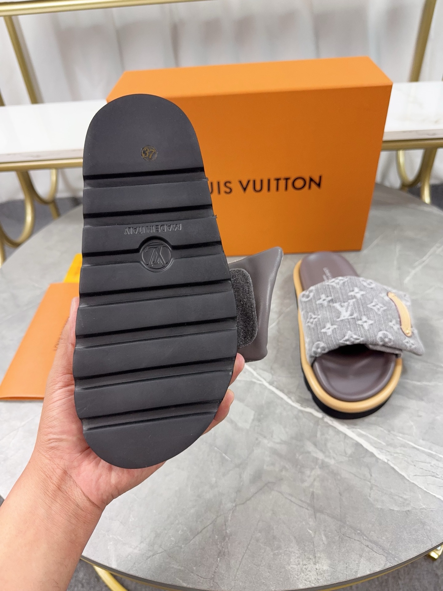 这款鞋子是AAAAA 1:1 质量 (非常棒). 使用了和原版一模一样的材料. 商标部分也保持了和路易威登/Louis Vuitton一样. 图片拍摄是实物鞋子拍摄, 您所收到的实物保证和我们图片一模一样.