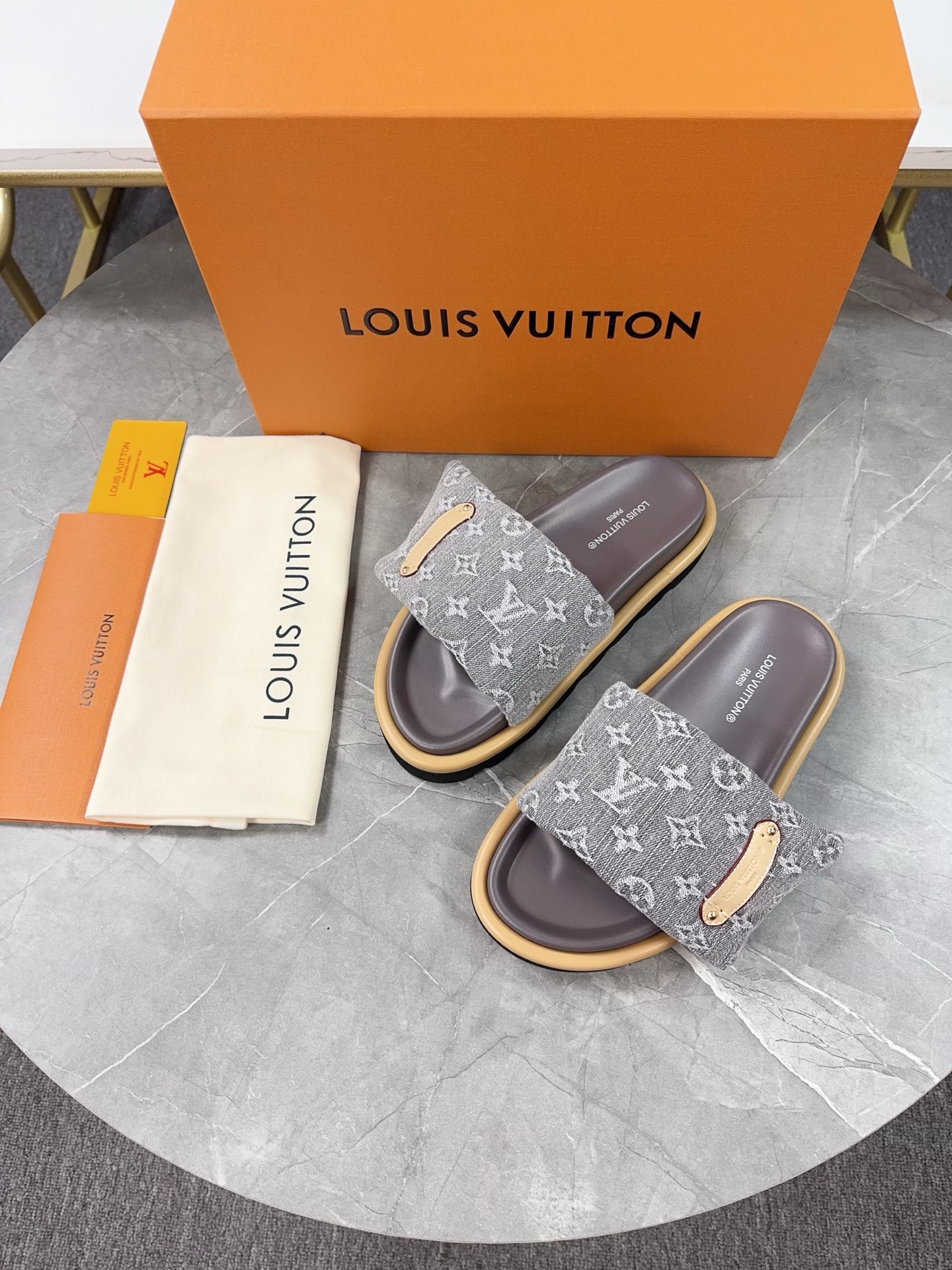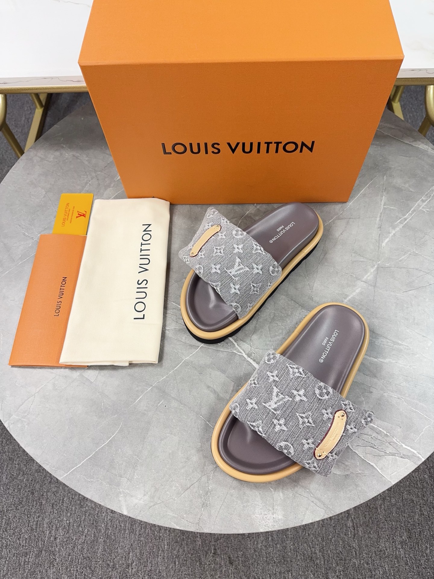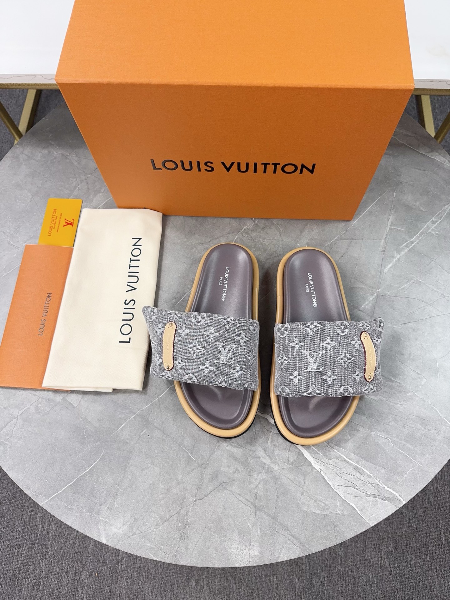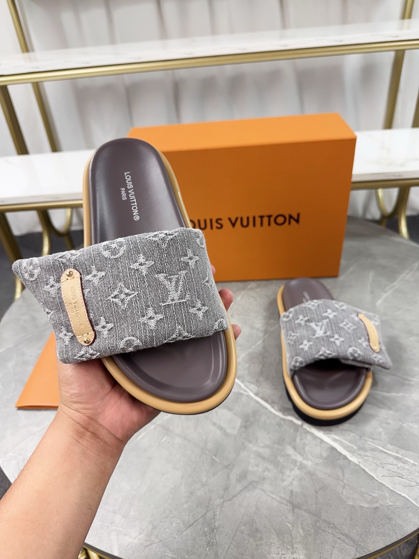 这款鞋子是AAAAA 1:1 质量 (非常棒). 使用了和原版一模一样的材料. 商标部分也保持了和路易威登/Louis Vuitton一样. 图片拍摄是实物鞋子拍摄, 您所收到的实物保证和我们图片一模一样.