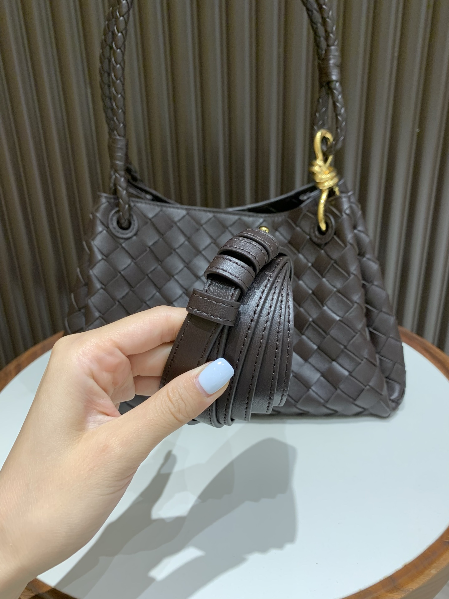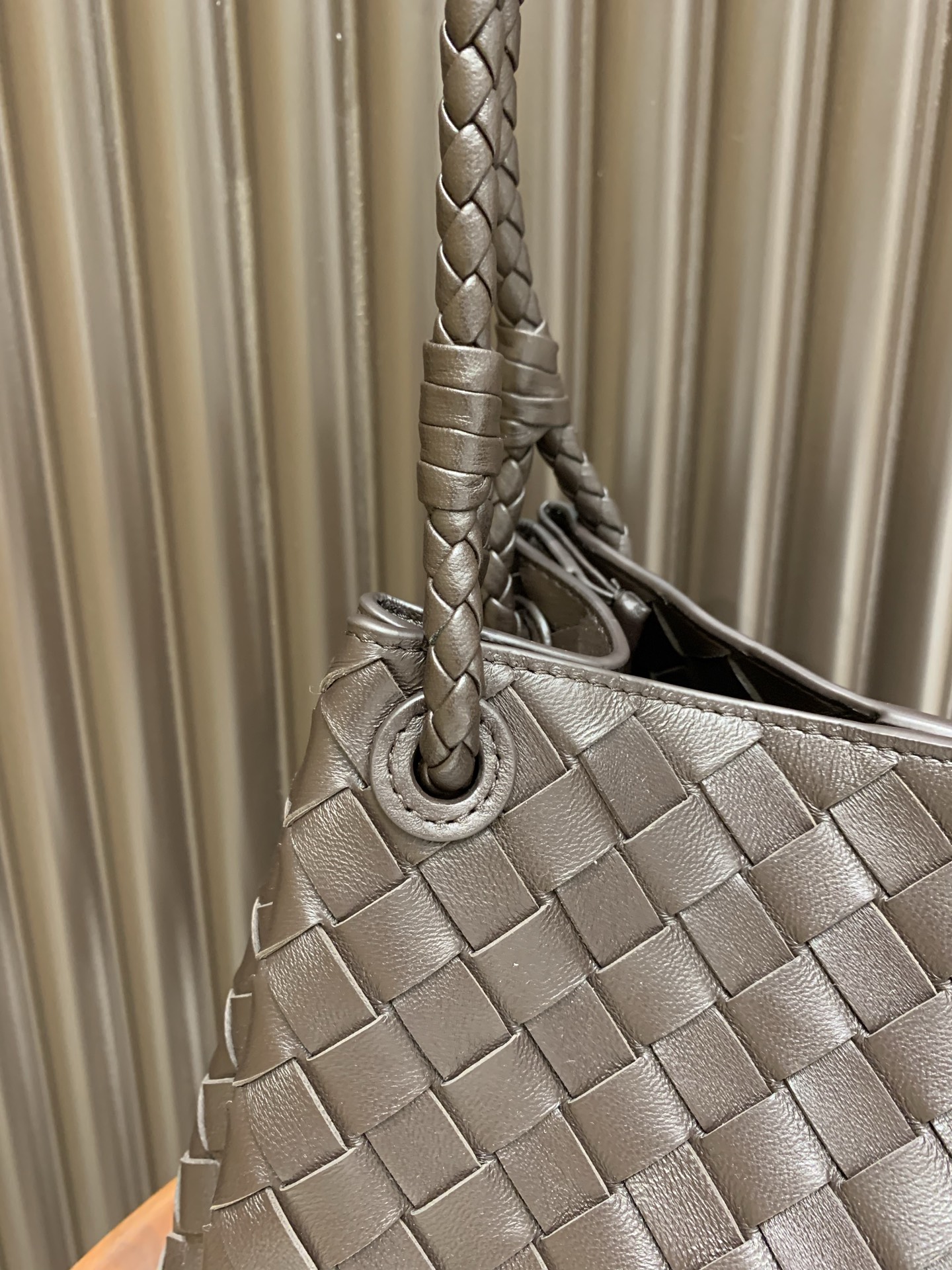 这款包包是AAAAA 1:1 质量 (非常棒). 使用了和原版一模一样的材料. 商标部分也保持了和葆蝶家/Bottega Veneta一样. 图片拍摄是实物包包拍摄, 您所收到的实物保证和我们图片一模一样.