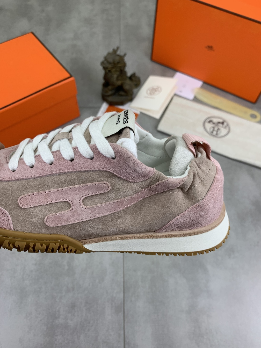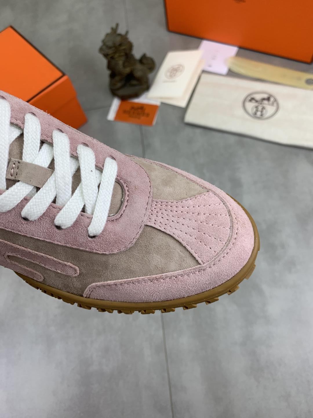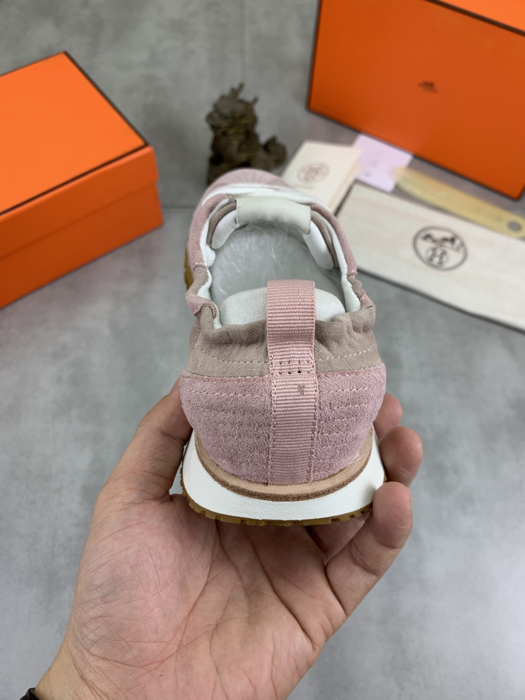 这款鞋子是AAAAA 1:1 质量 (非常棒). 使用了和原版一模一样的材料. 商标部分也保持了和爱马仕/Hermes一样. 图片拍摄是实物鞋子拍摄, 您所收到的实物保证和我们图片一模一样.