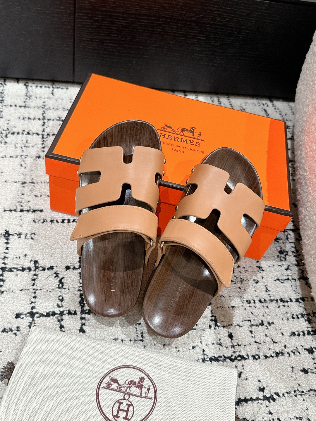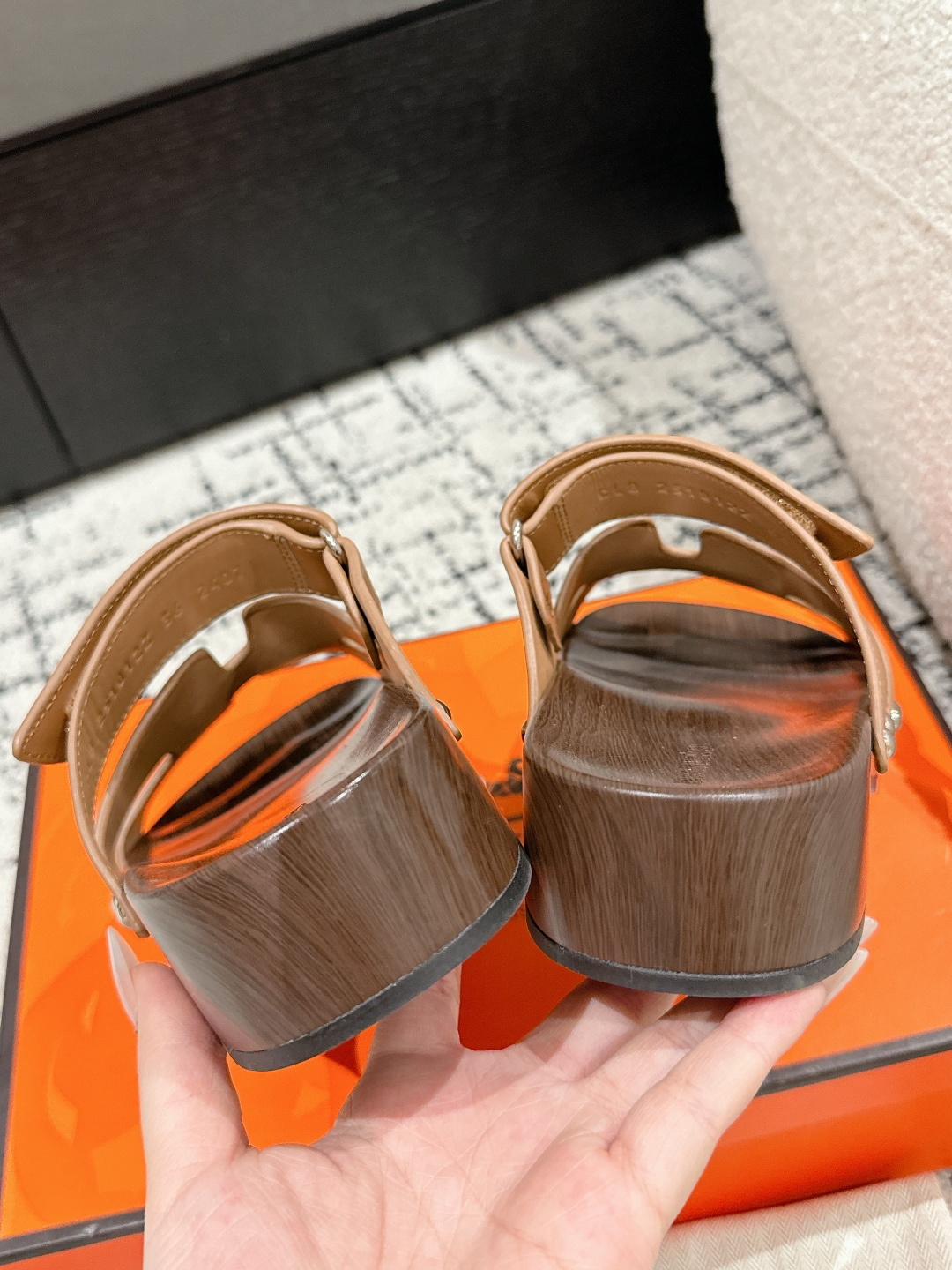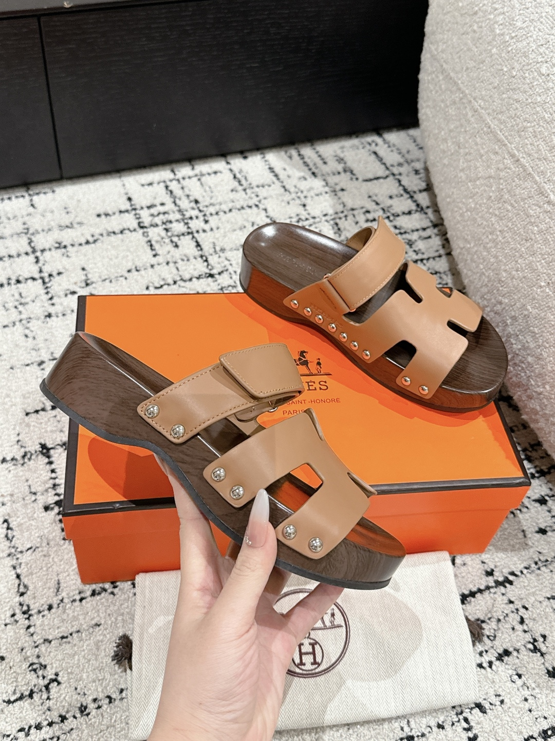 这款鞋子是AAAAA 1:1 质量 (非常棒). 使用了和原版一模一样的材料. 商标部分也保持了和爱马仕/Hermes一样. 图片拍摄是实物鞋子拍摄, 您所收到的实物保证和我们图片一模一样.