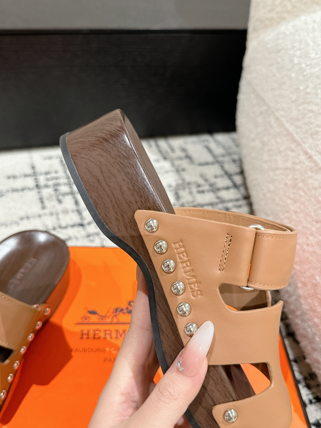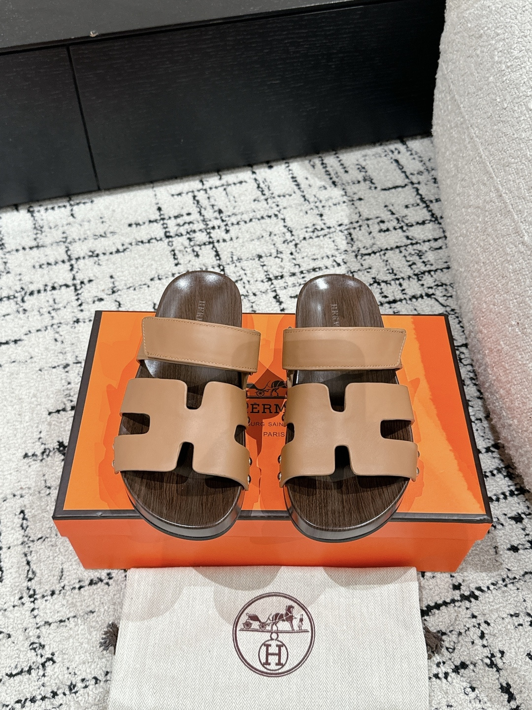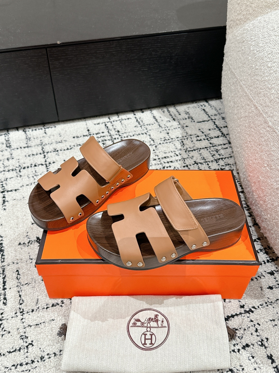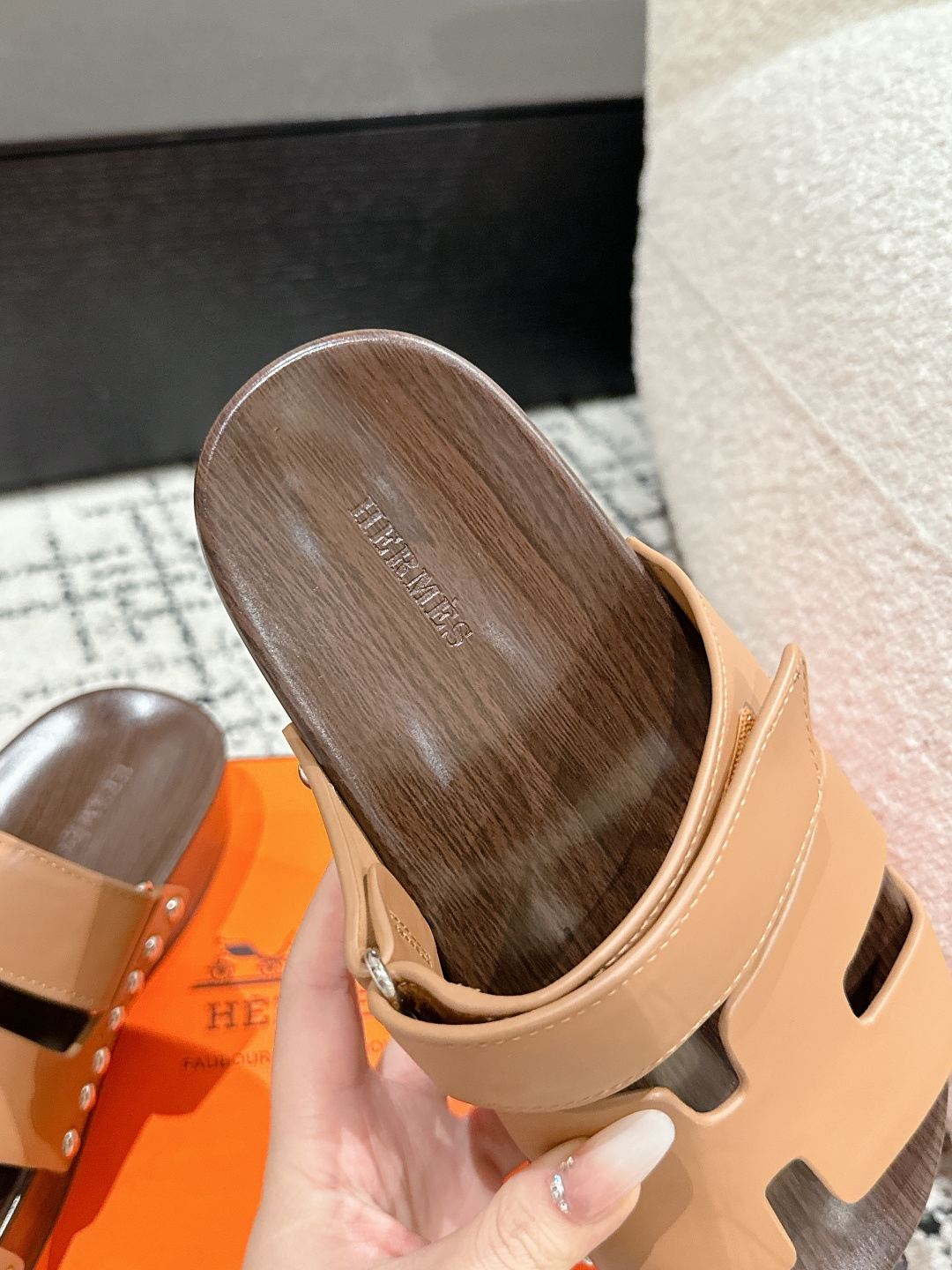 这款鞋子是AAAAA 1:1 质量 (非常棒). 使用了和原版一模一样的材料. 商标部分也保持了和爱马仕/Hermes一样. 图片拍摄是实物鞋子拍摄, 您所收到的实物保证和我们图片一模一样.