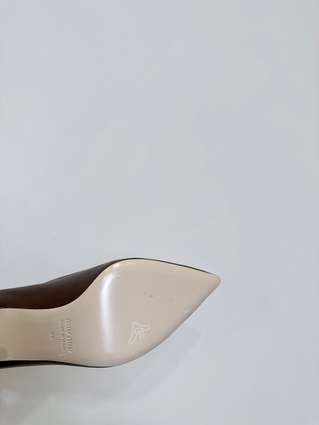 这款鞋子是AAAAA 1:1 质量 (非常棒). 使用了和原版一模一样的材料. 商标部分也保持了和缪缪/Miu Miu一样. 图片拍摄是实物鞋子拍摄, 您所收到的实物保证和我们图片一模一样.