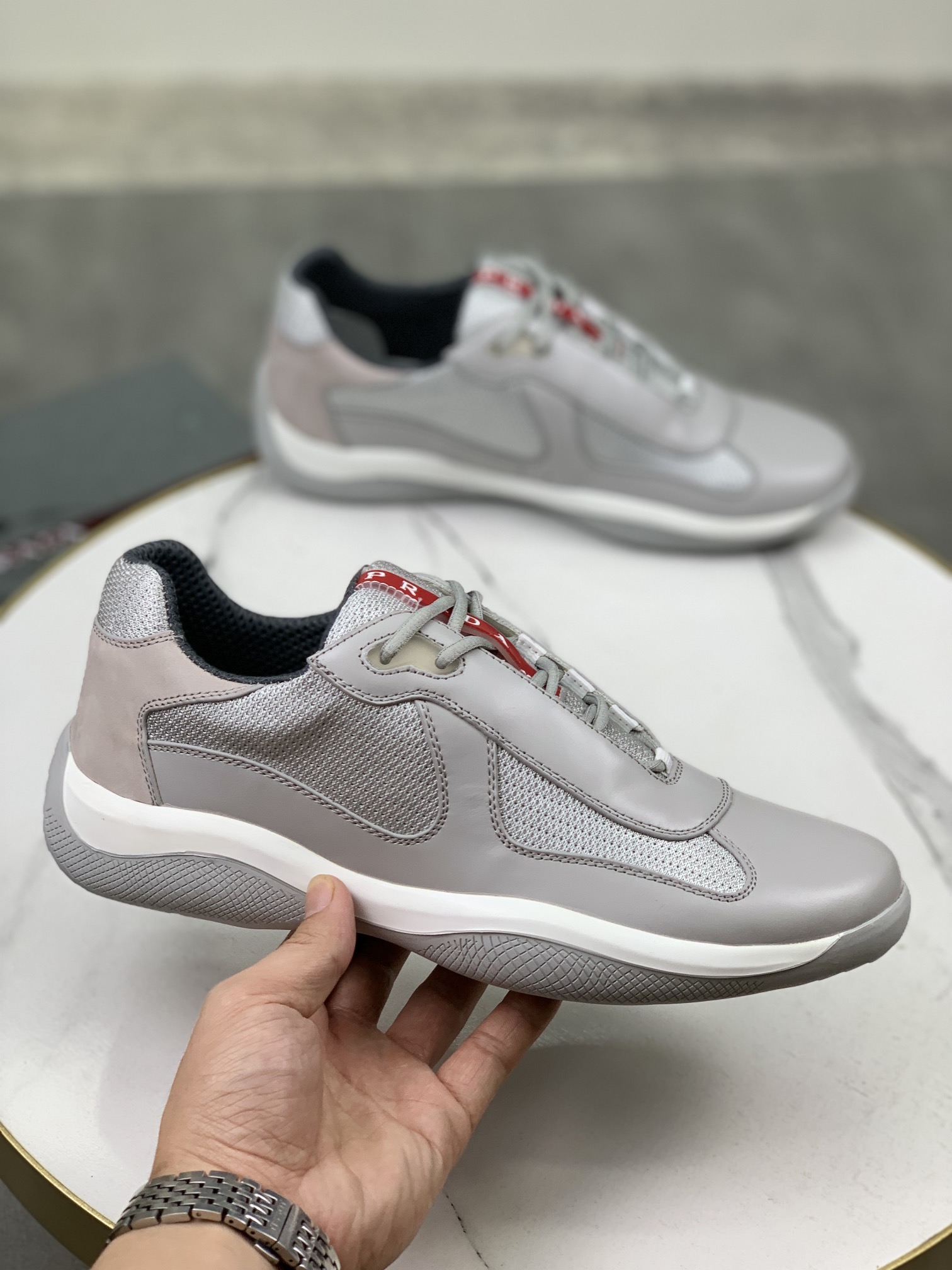 这款鞋子是AAAAA 1:1 质量 (非常棒). 使用了和原版一模一样的材料. 商标部分也保持了和普拉达/Prada一样. 图片拍摄是实物鞋子拍摄, 您所收到的实物保证和我们图片一模一样.