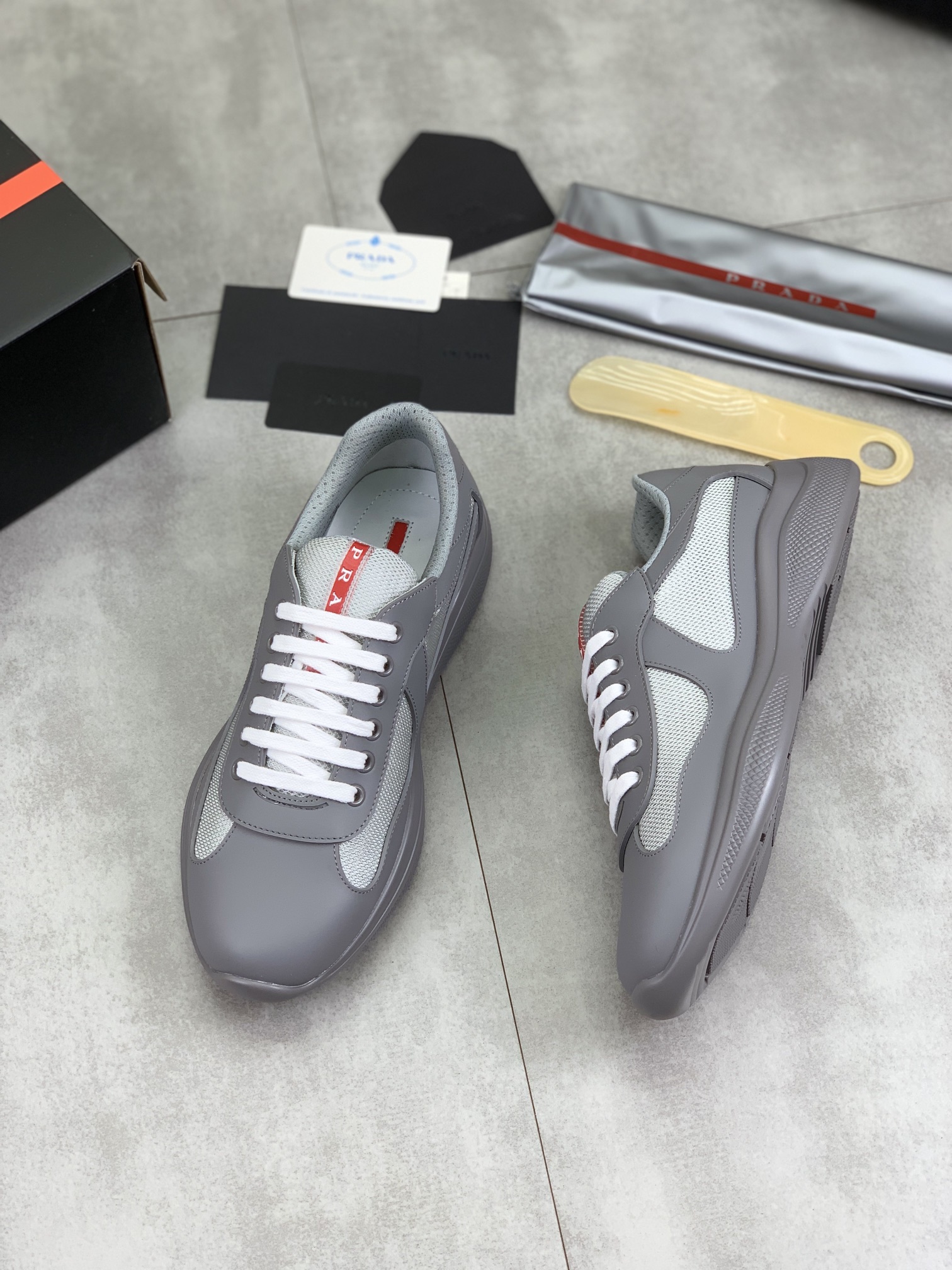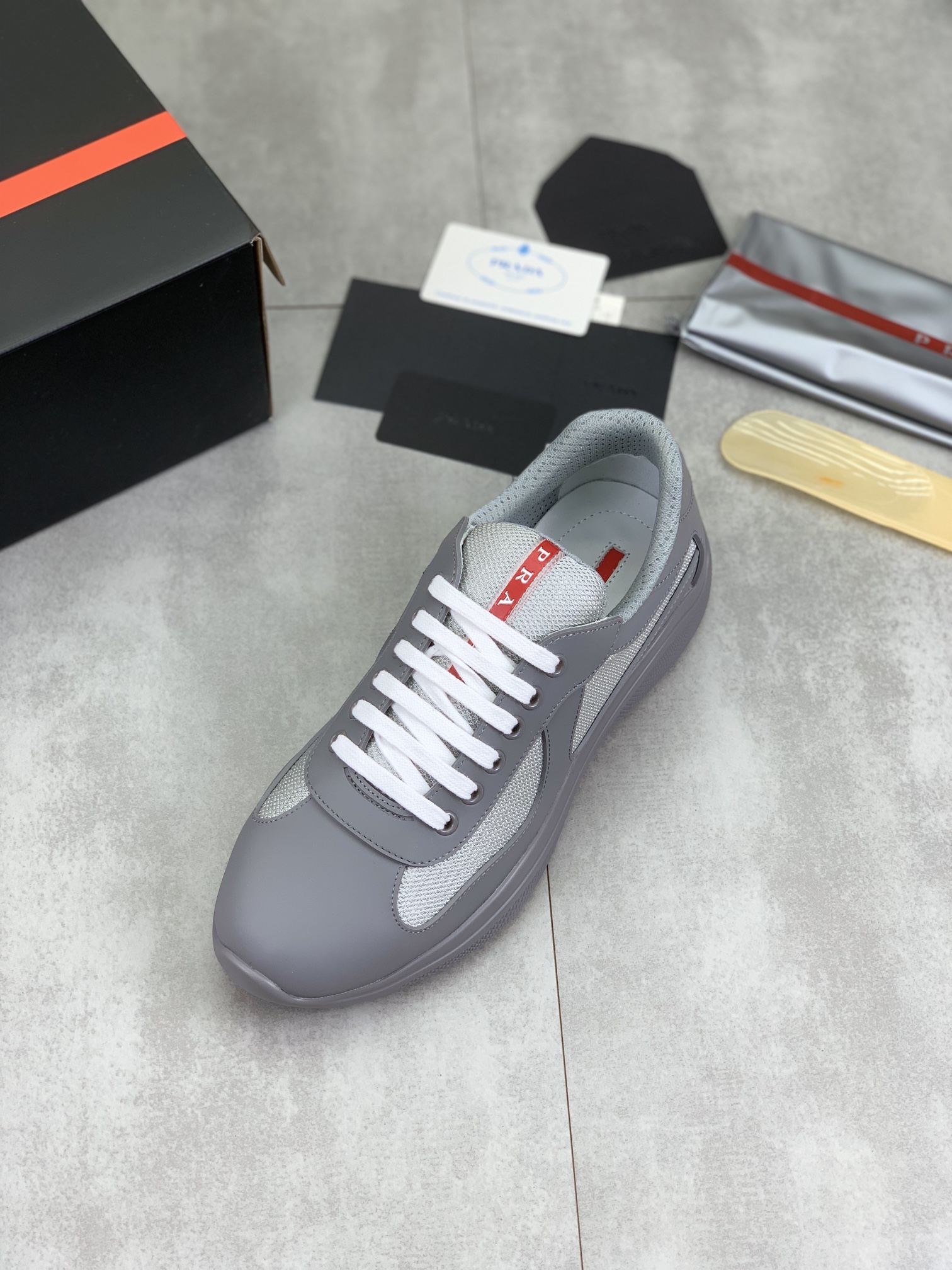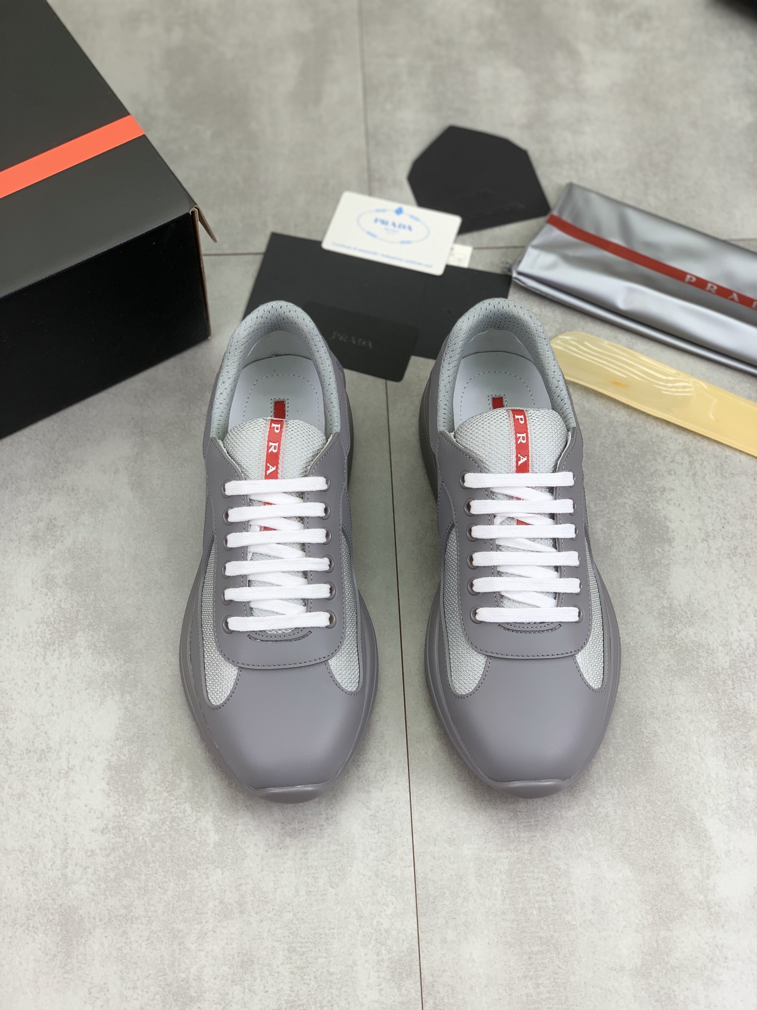 这款鞋子是AAAAA 1:1 质量 (非常棒). 使用了和原版一模一样的材料. 商标部分也保持了和普拉达/Prada一样. 图片拍摄是实物鞋子拍摄, 您所收到的实物保证和我们图片一模一样.