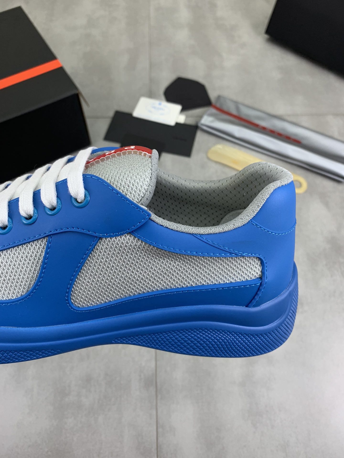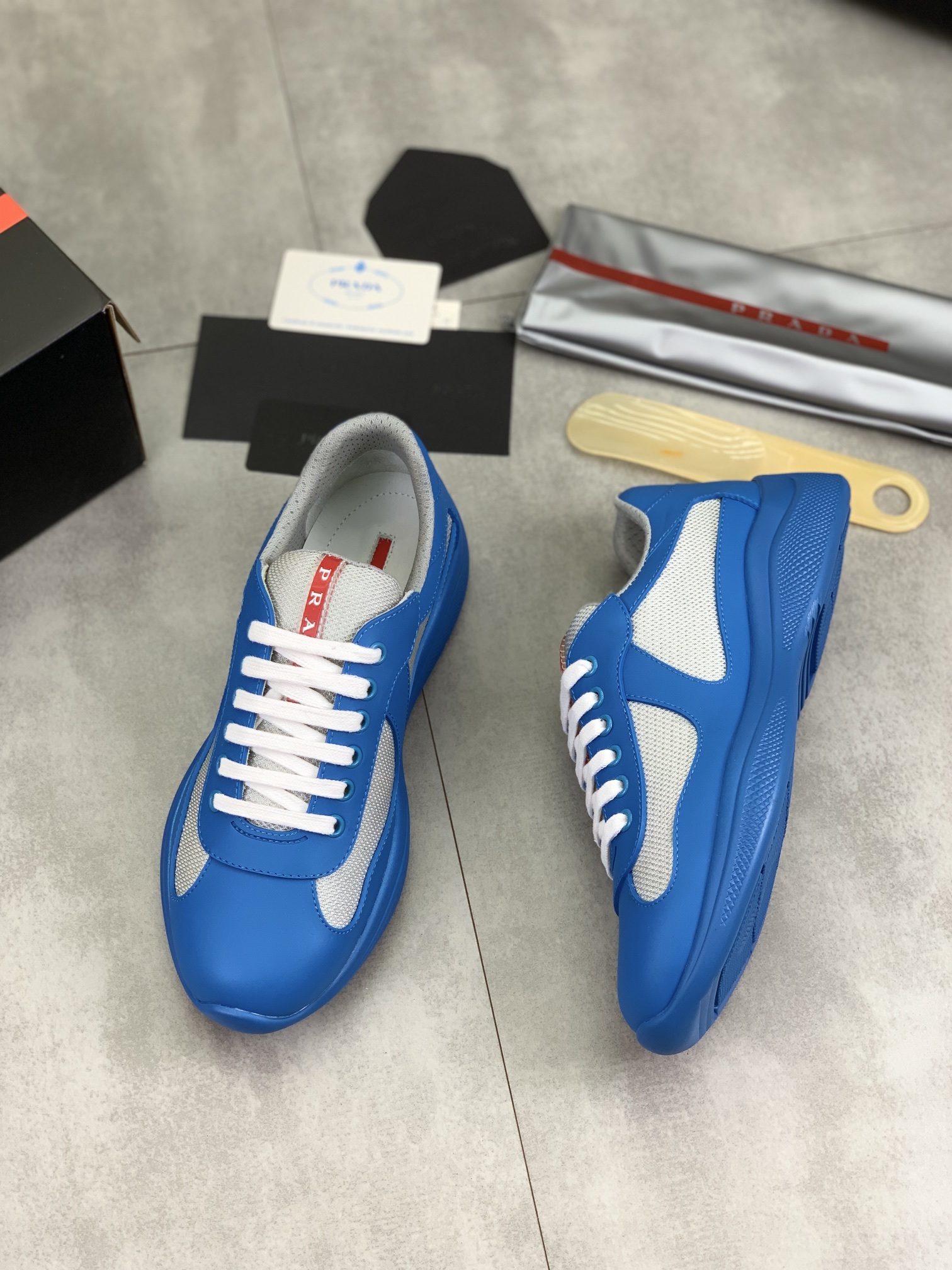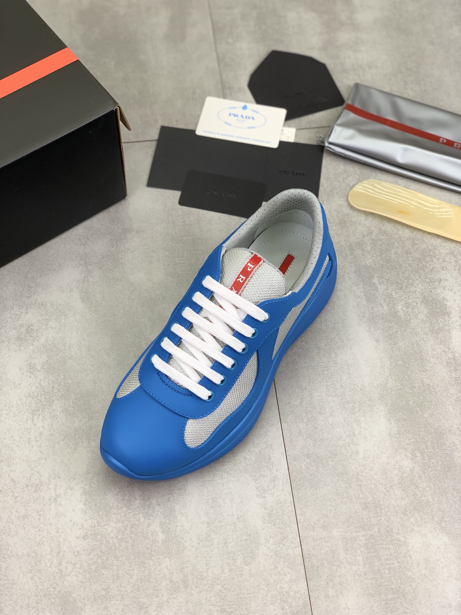 这款鞋子是AAAAA 1:1 质量 (非常棒). 使用了和原版一模一样的材料. 商标部分也保持了和普拉达/Prada一样. 图片拍摄是实物鞋子拍摄, 您所收到的实物保证和我们图片一模一样.