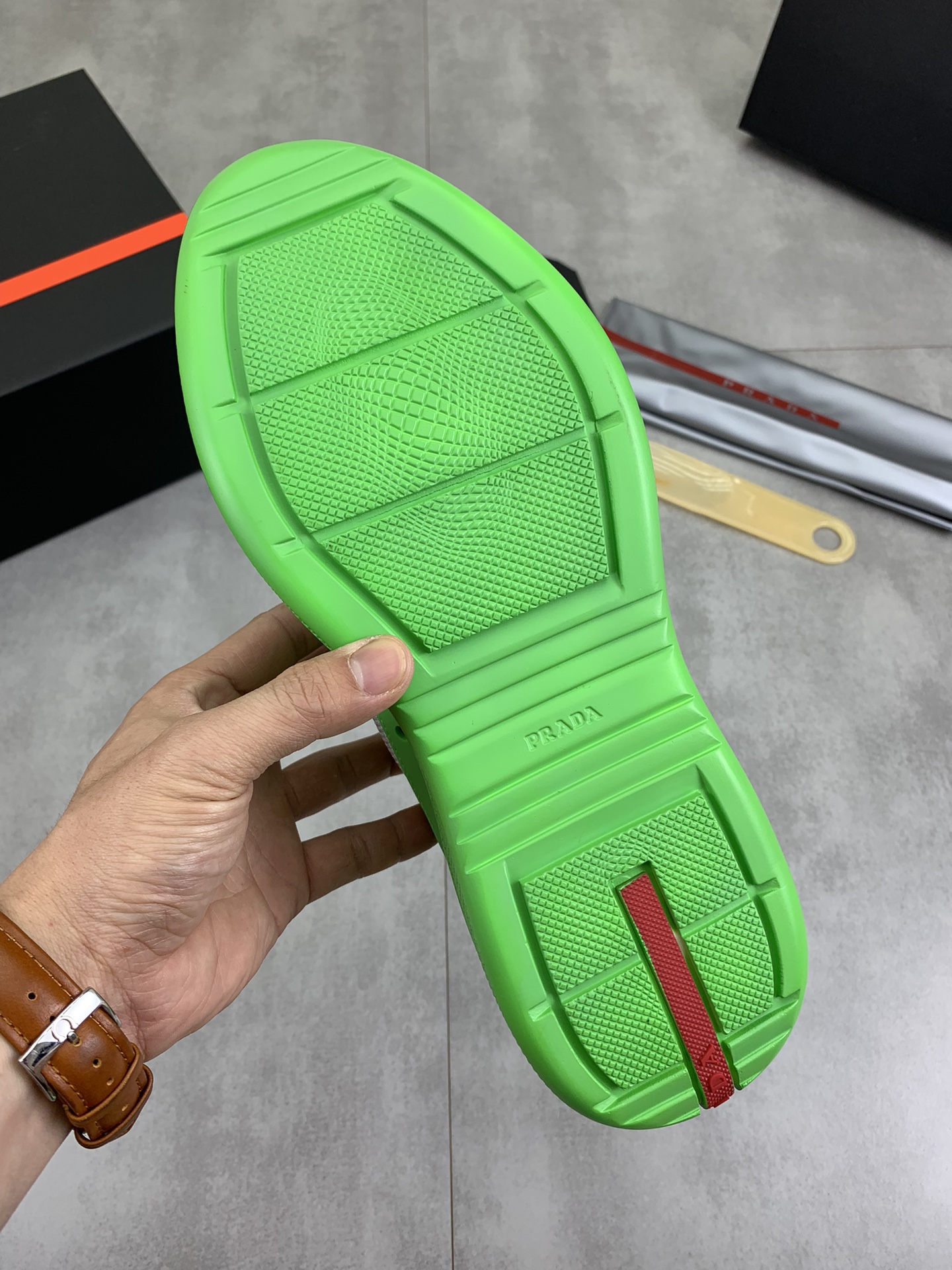 这款鞋子是AAAAA 1:1 质量 (非常棒). 使用了和原版一模一样的材料. 商标部分也保持了和普拉达/Prada一样. 图片拍摄是实物鞋子拍摄, 您所收到的实物保证和我们图片一模一样.