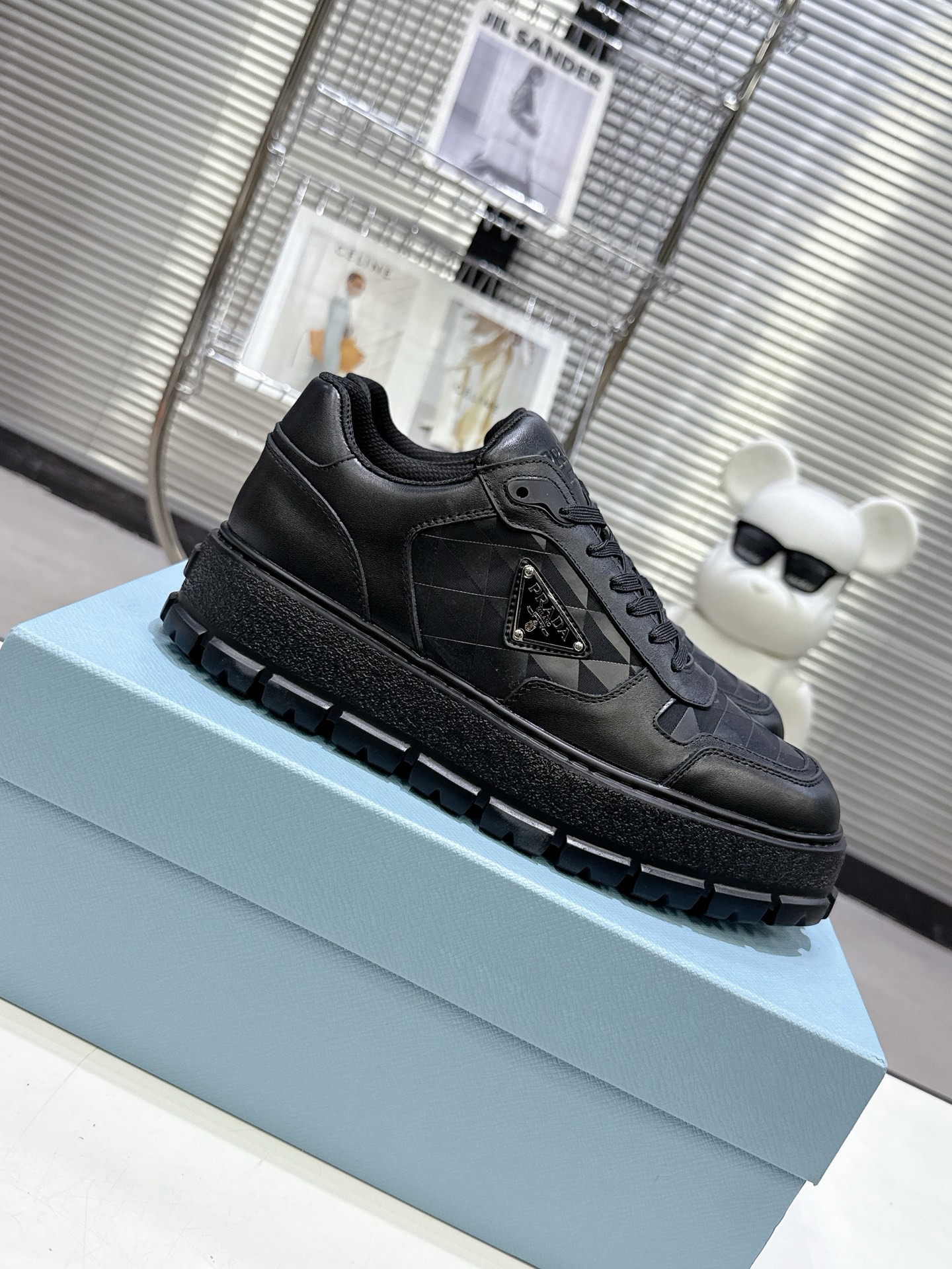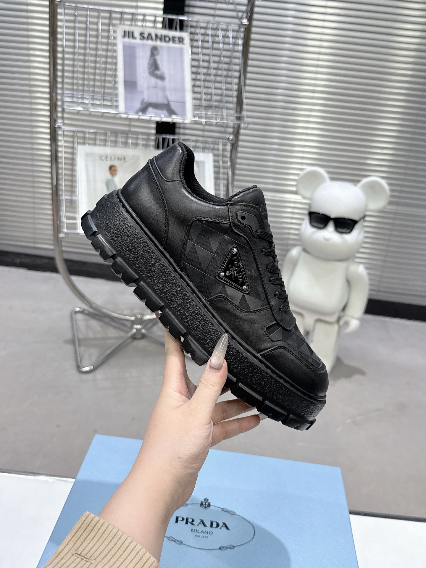 这款鞋子是AAAAA 1:1 质量 (非常棒). 使用了和原版一模一样的材料. 商标部分也保持了和普拉达/Prada一样. 图片拍摄是实物鞋子拍摄, 您所收到的实物保证和我们图片一模一样.