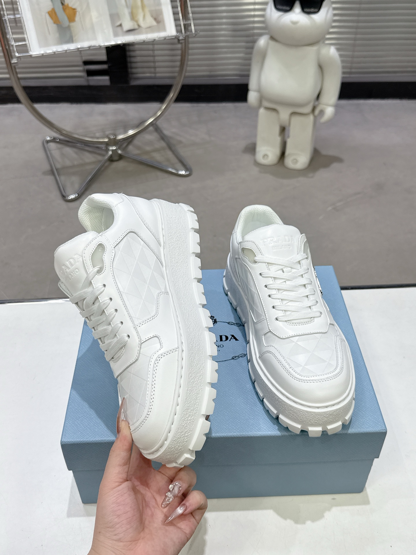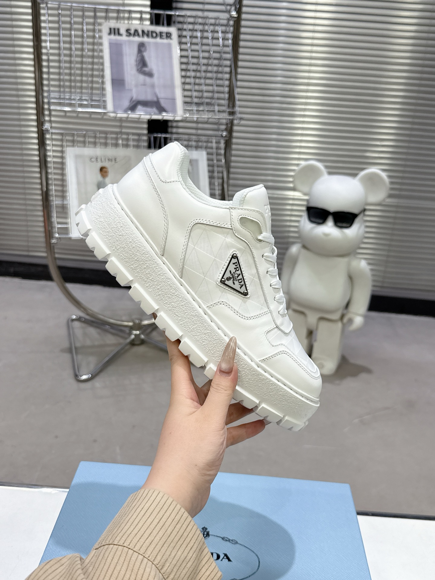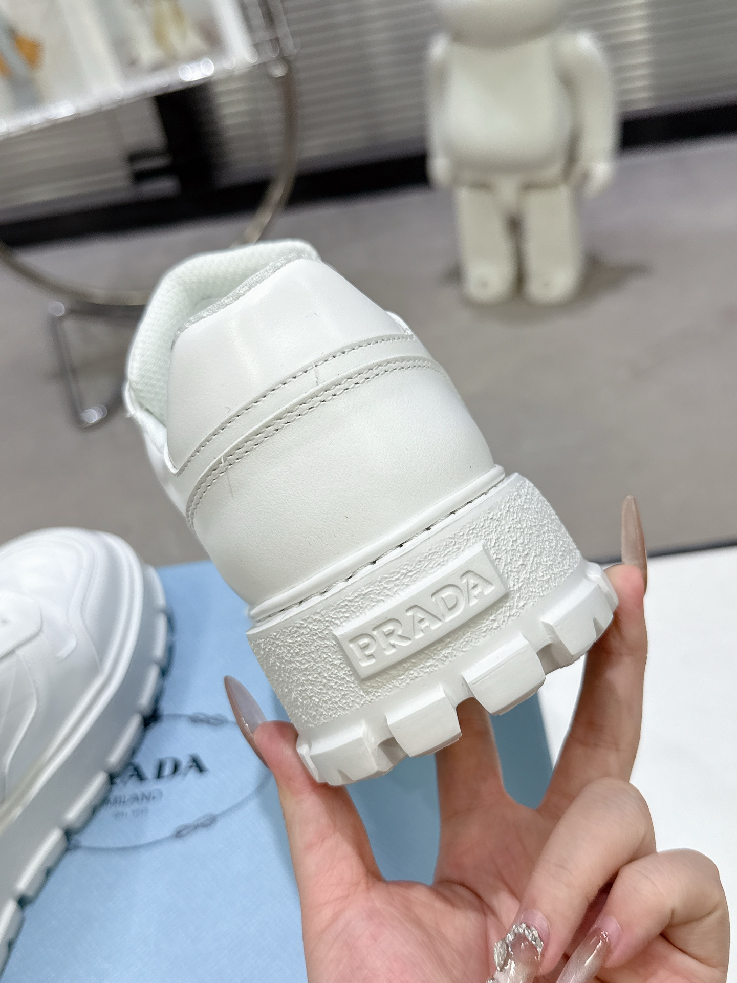 这款鞋子是AAAAA 1:1 质量 (非常棒). 使用了和原版一模一样的材料. 商标部分也保持了和普拉达/Prada一样. 图片拍摄是实物鞋子拍摄, 您所收到的实物保证和我们图片一模一样.