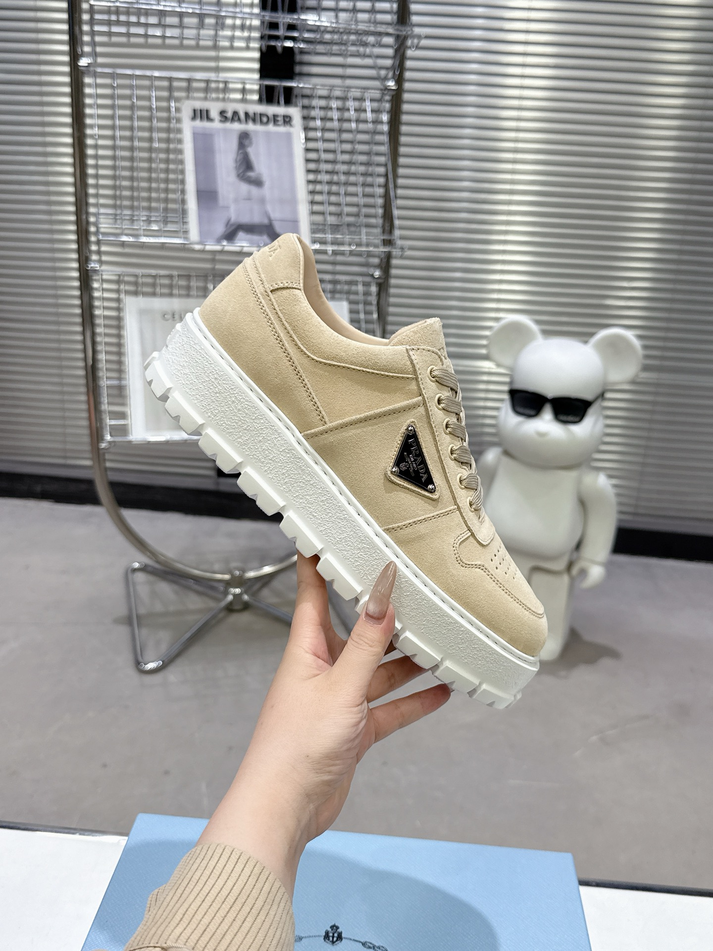 这款鞋子是AAAAA 1:1 质量 (非常棒). 使用了和原版一模一样的材料. 商标部分也保持了和普拉达/Prada一样. 图片拍摄是实物鞋子拍摄, 您所收到的实物保证和我们图片一模一样.