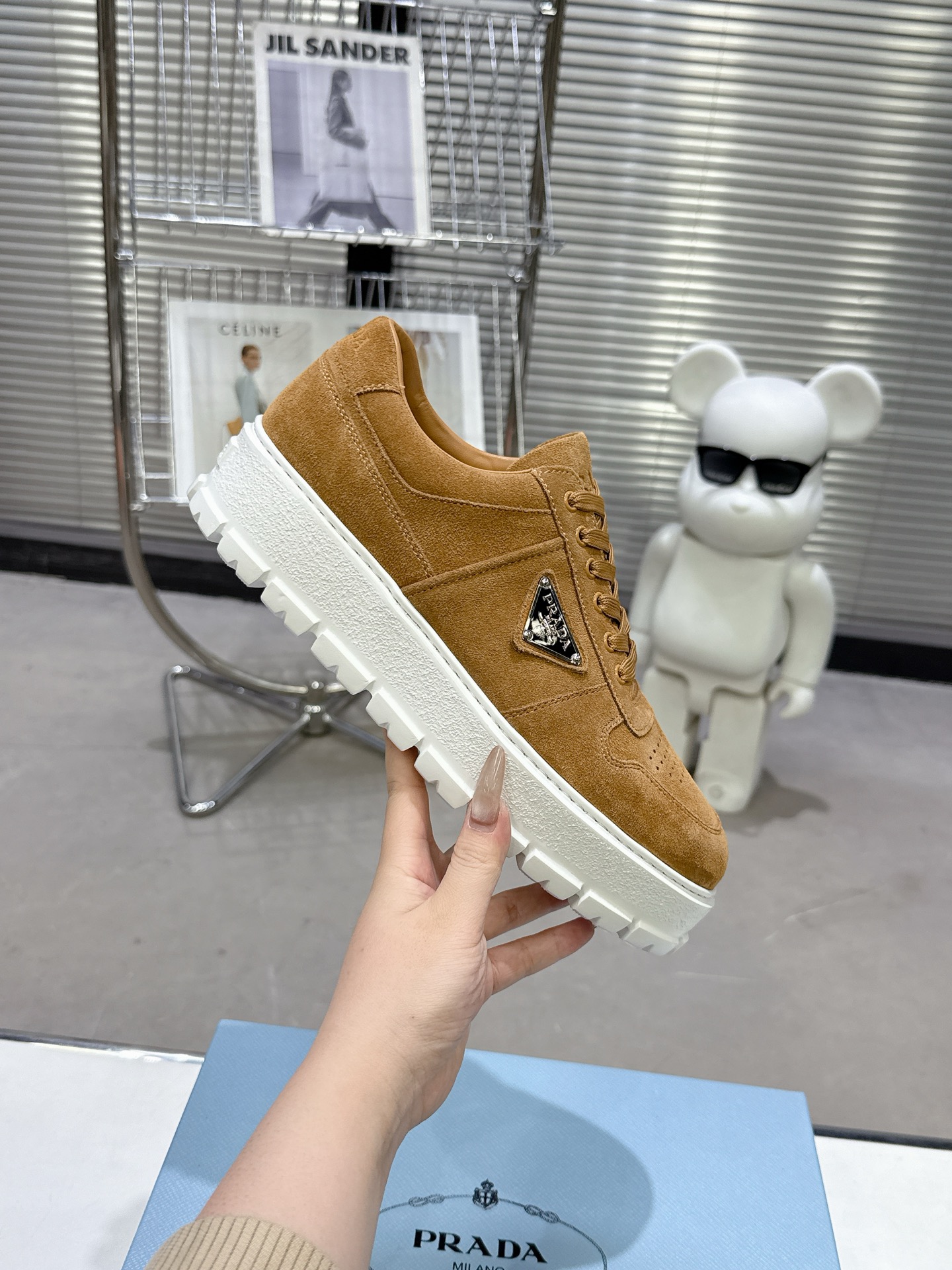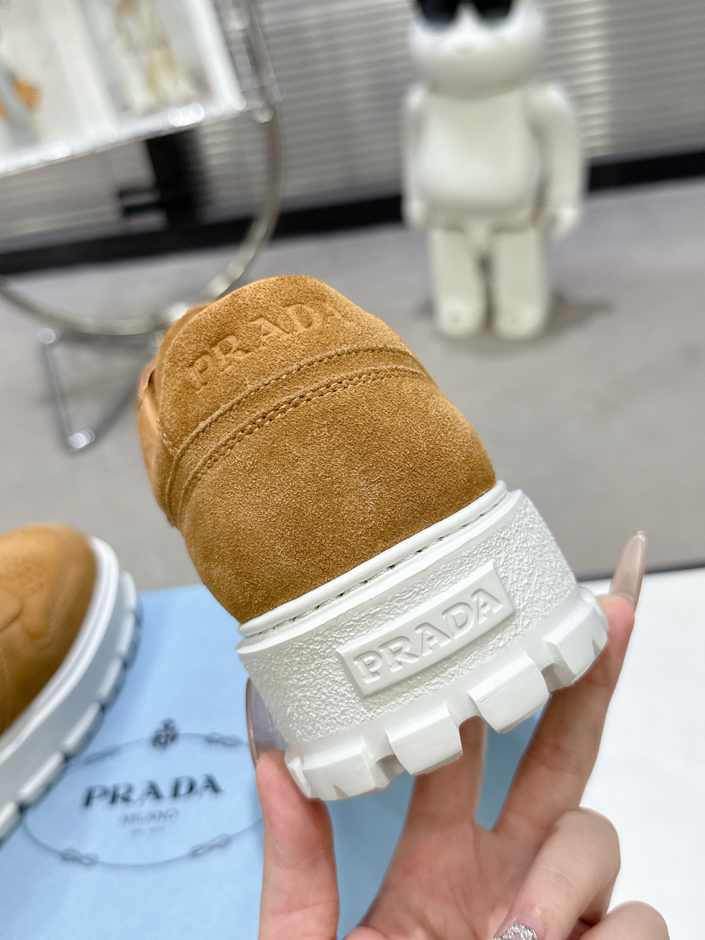 这款鞋子是AAAAA 1:1 质量 (非常棒). 使用了和原版一模一样的材料. 商标部分也保持了和普拉达/Prada一样. 图片拍摄是实物鞋子拍摄, 您所收到的实物保证和我们图片一模一样.