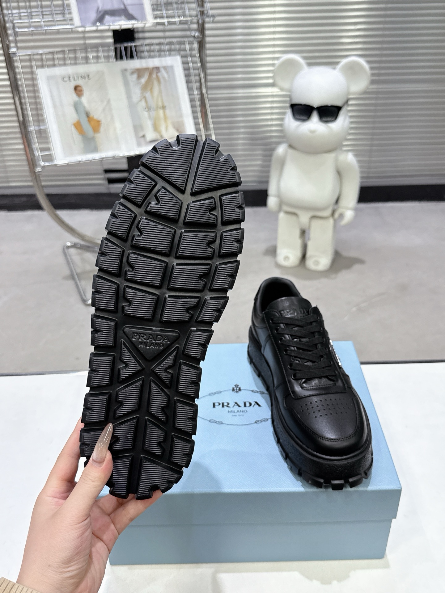 这款鞋子是AAAAA 1:1 质量 (非常棒). 使用了和原版一模一样的材料. 商标部分也保持了和普拉达/Prada一样. 图片拍摄是实物鞋子拍摄, 您所收到的实物保证和我们图片一模一样.