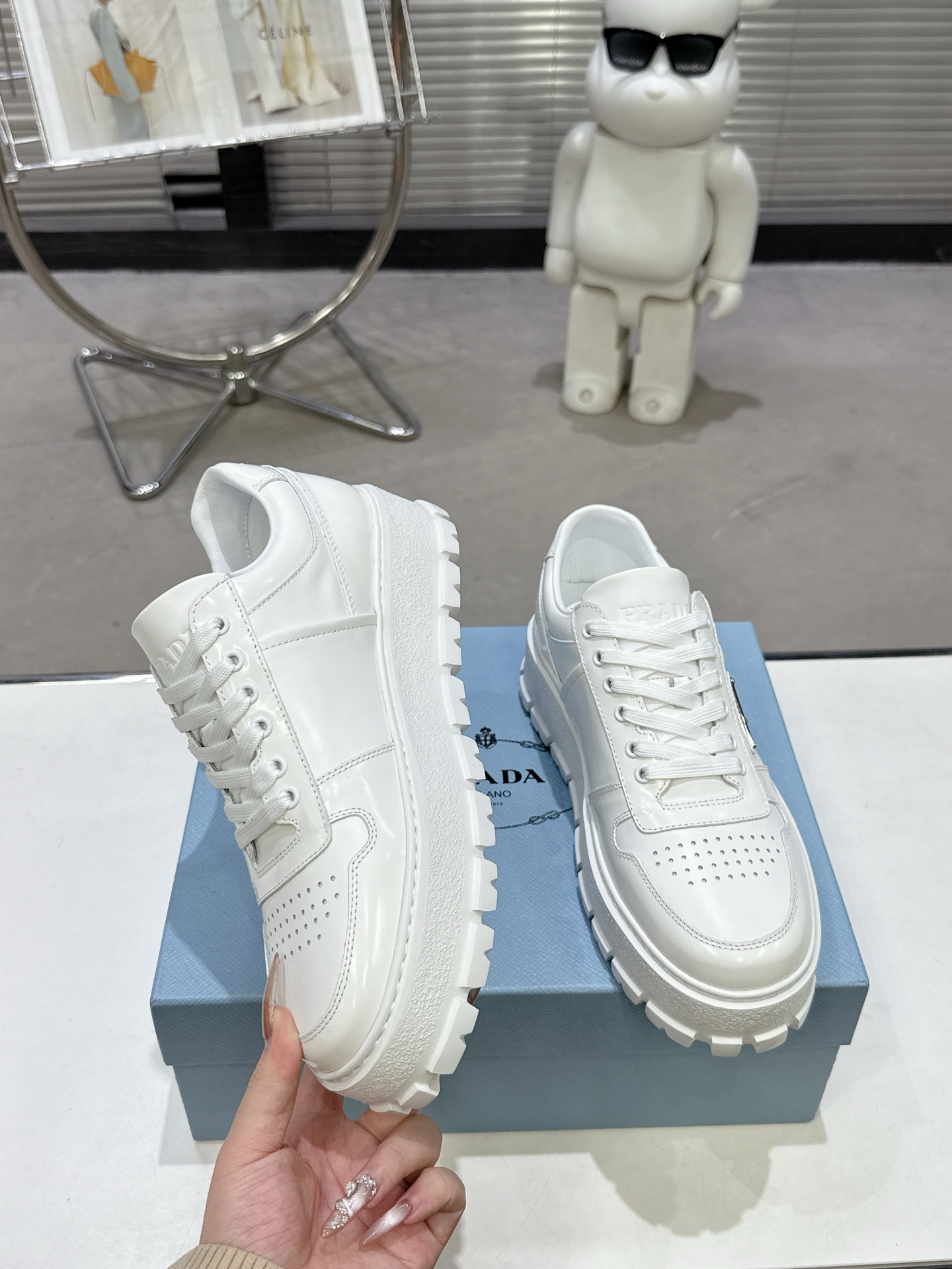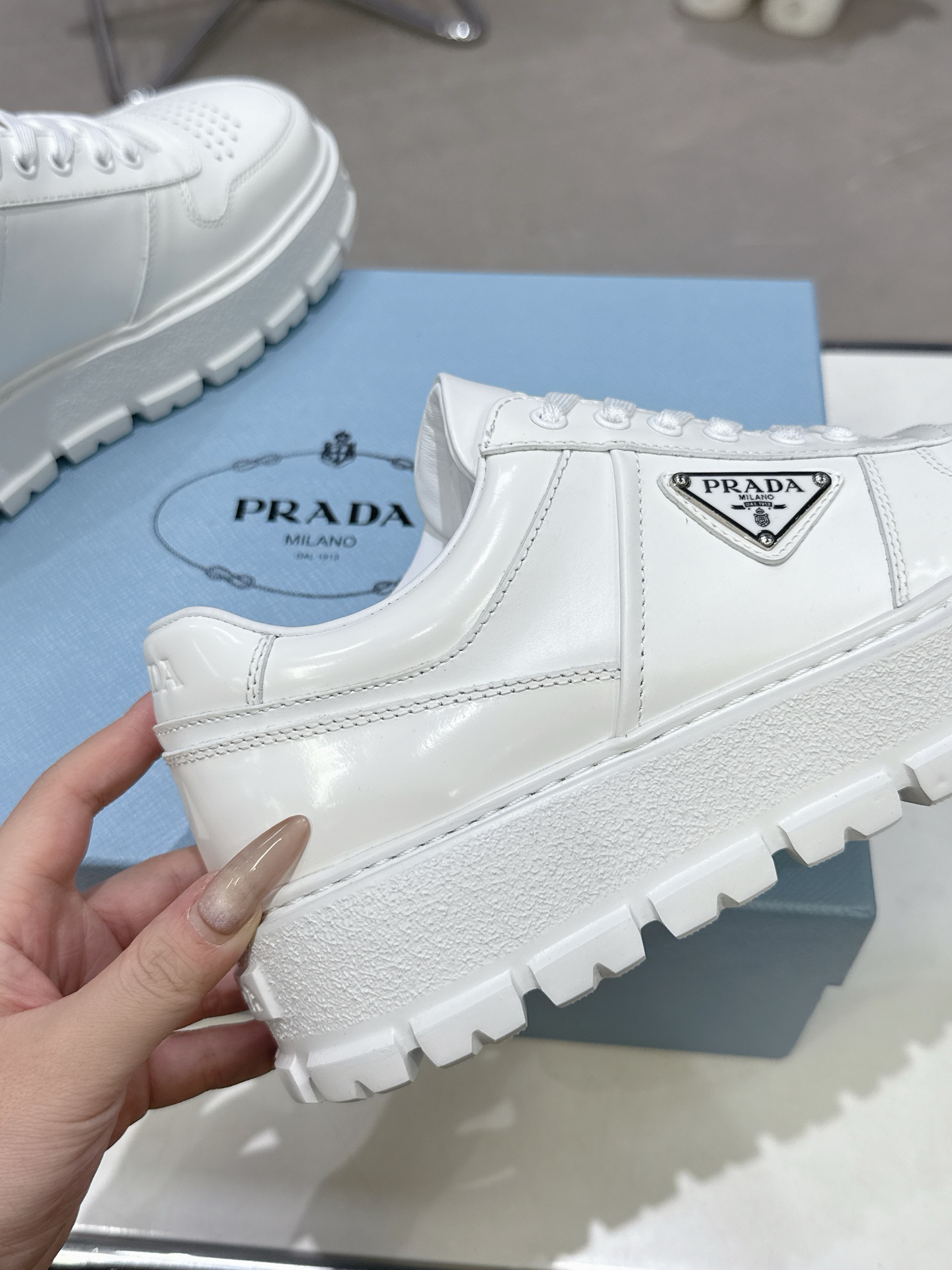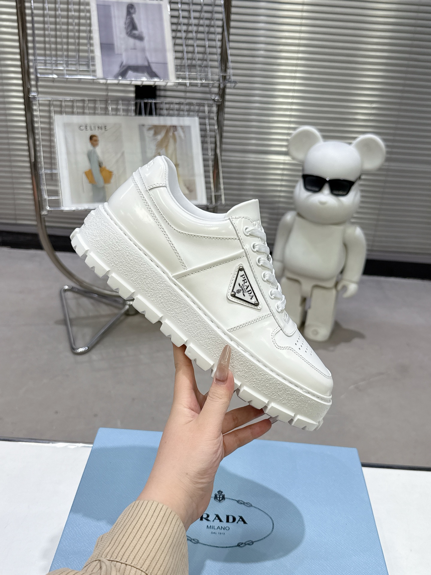 这款鞋子是AAAAA 1:1 质量 (非常棒). 使用了和原版一模一样的材料. 商标部分也保持了和普拉达/Prada一样. 图片拍摄是实物鞋子拍摄, 您所收到的实物保证和我们图片一模一样.