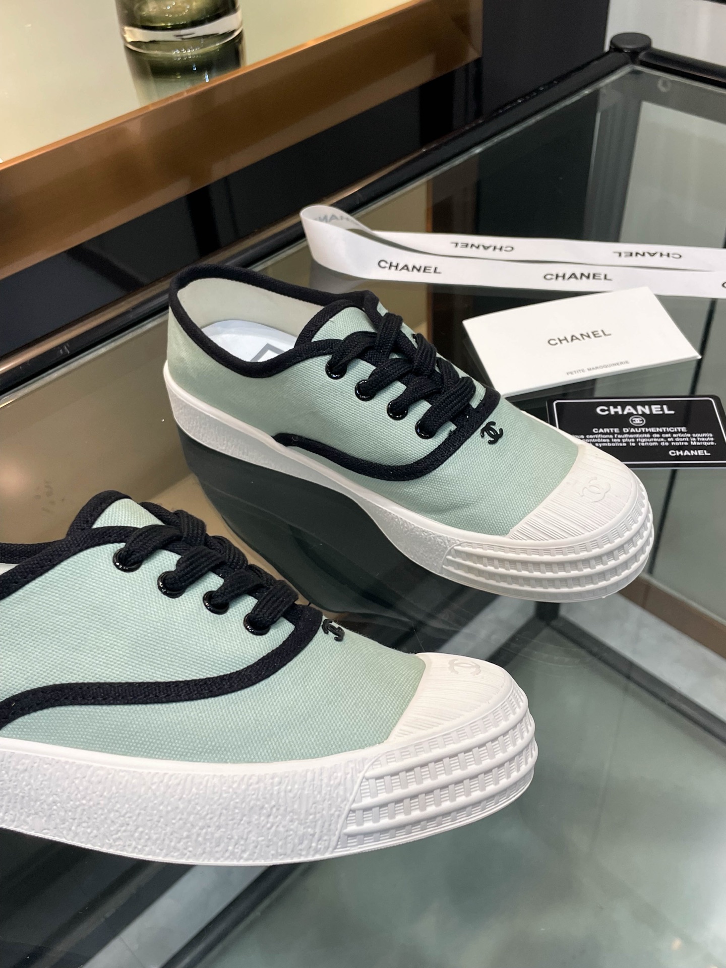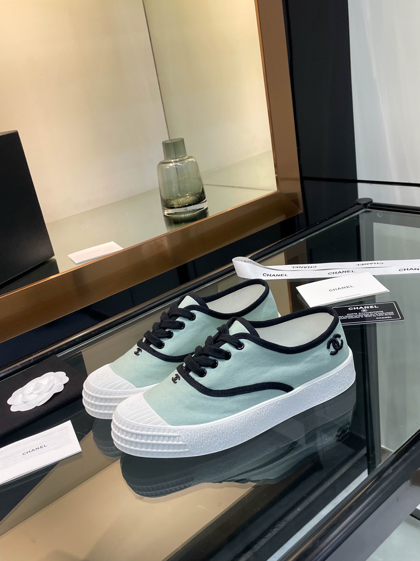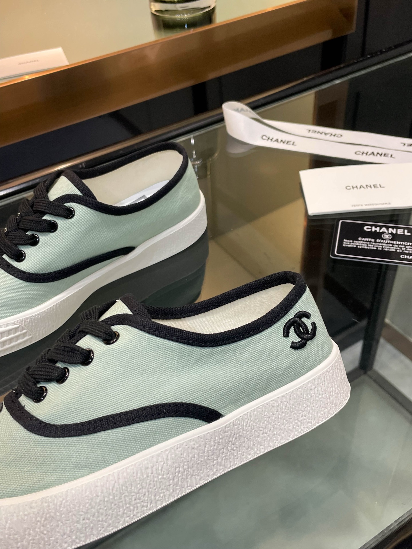 这款鞋子是AAAAA 1:1 质量 (非常棒). 使用了和原版一模一样的材料. 商标部分也保持了和香奈儿/Chanel一样. 图片拍摄是实物鞋子拍摄, 您所收到的实物保证和我们图片一模一样.