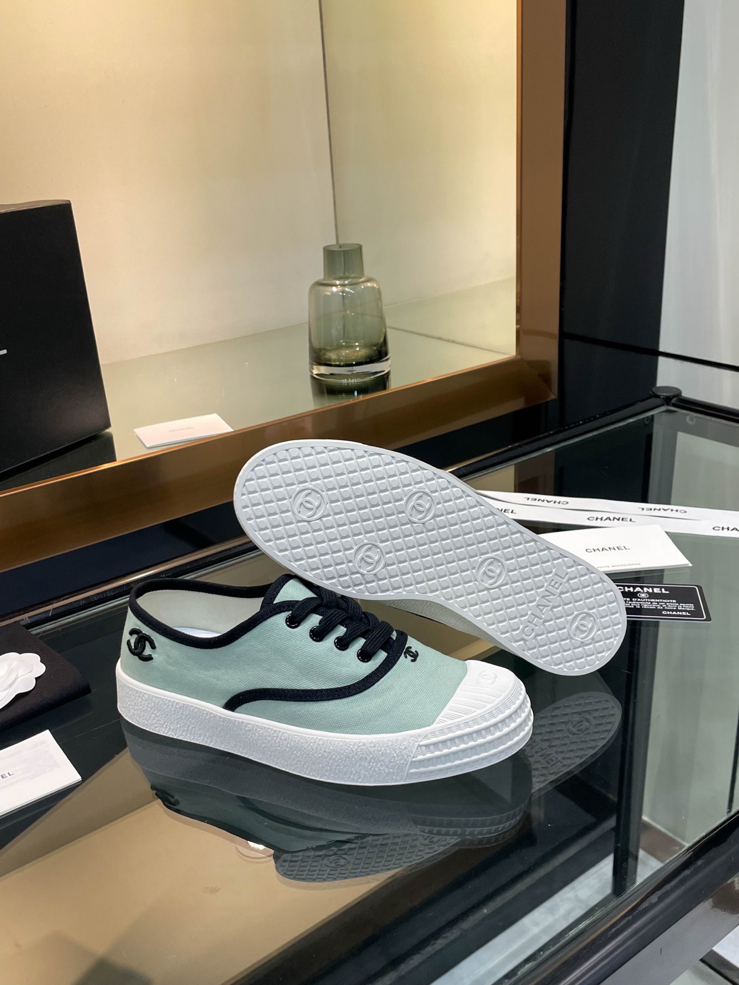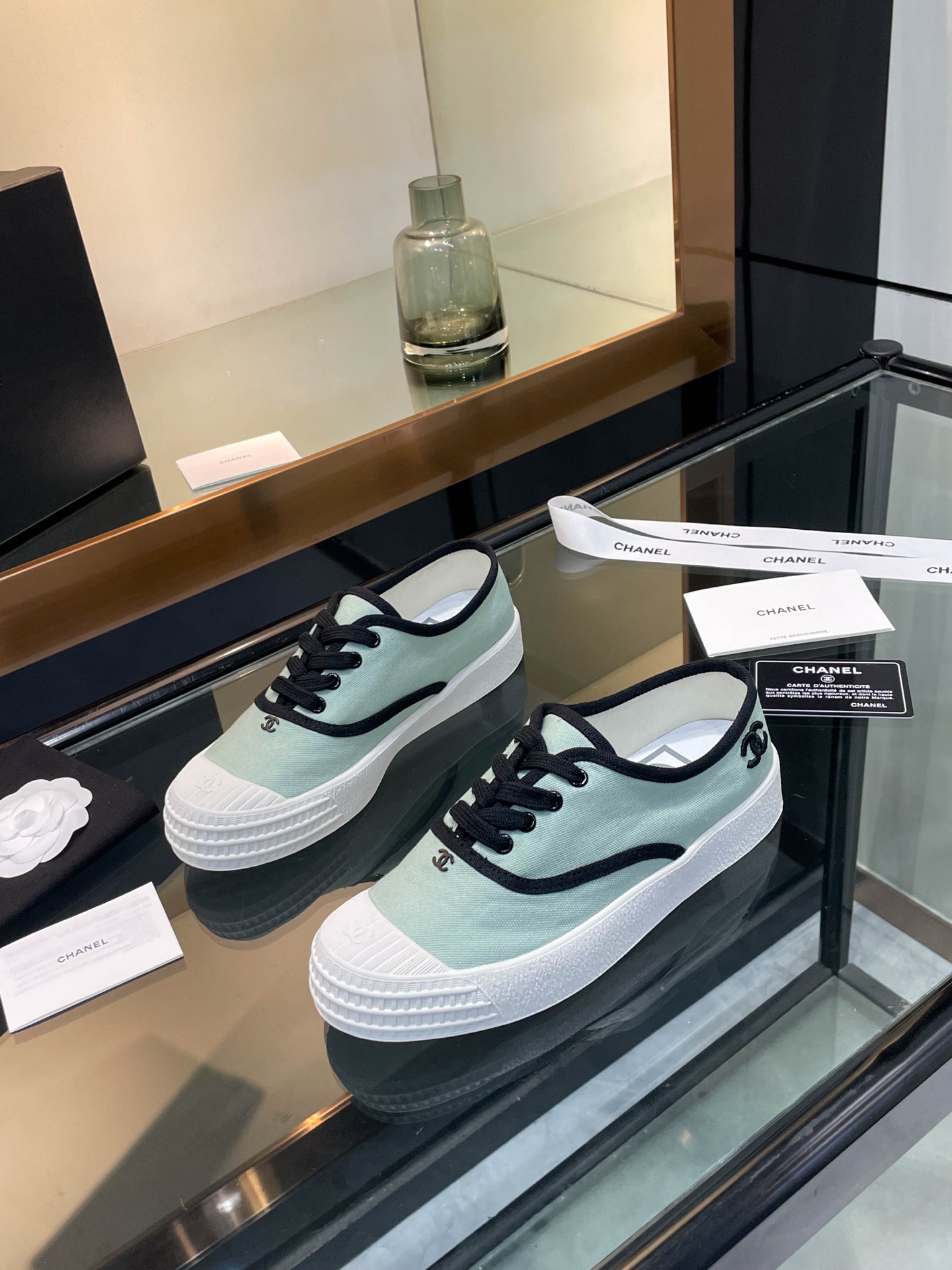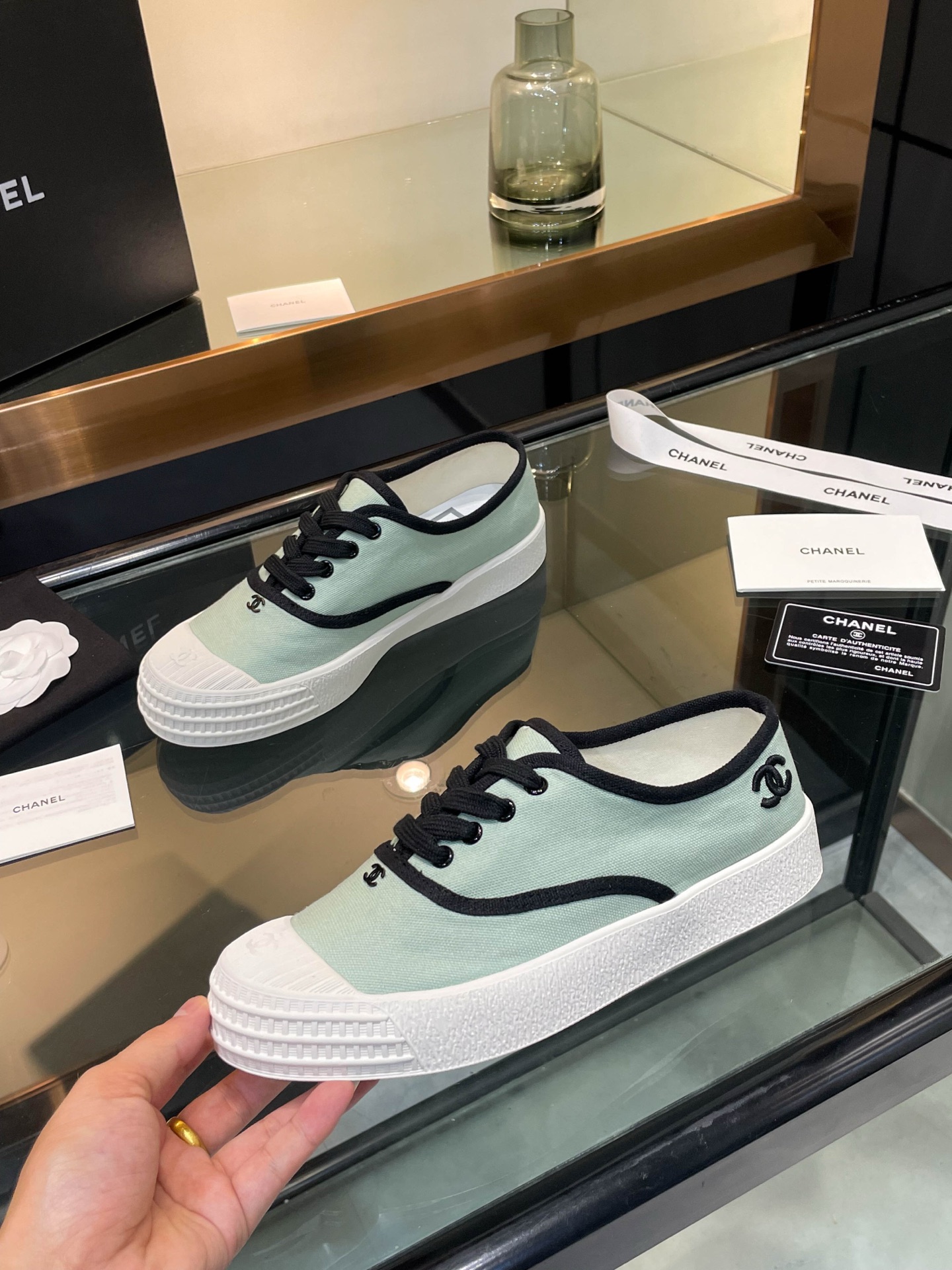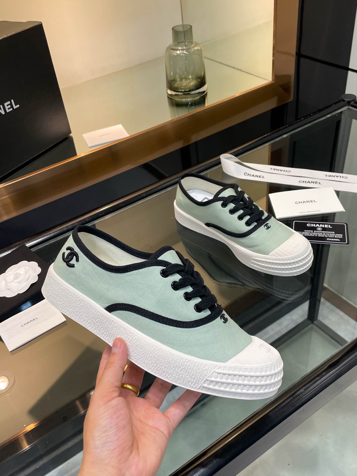 这款鞋子是AAAAA 1:1 质量 (非常棒). 使用了和原版一模一样的材料. 商标部分也保持了和香奈儿/Chanel一样. 图片拍摄是实物鞋子拍摄, 您所收到的实物保证和我们图片一模一样.