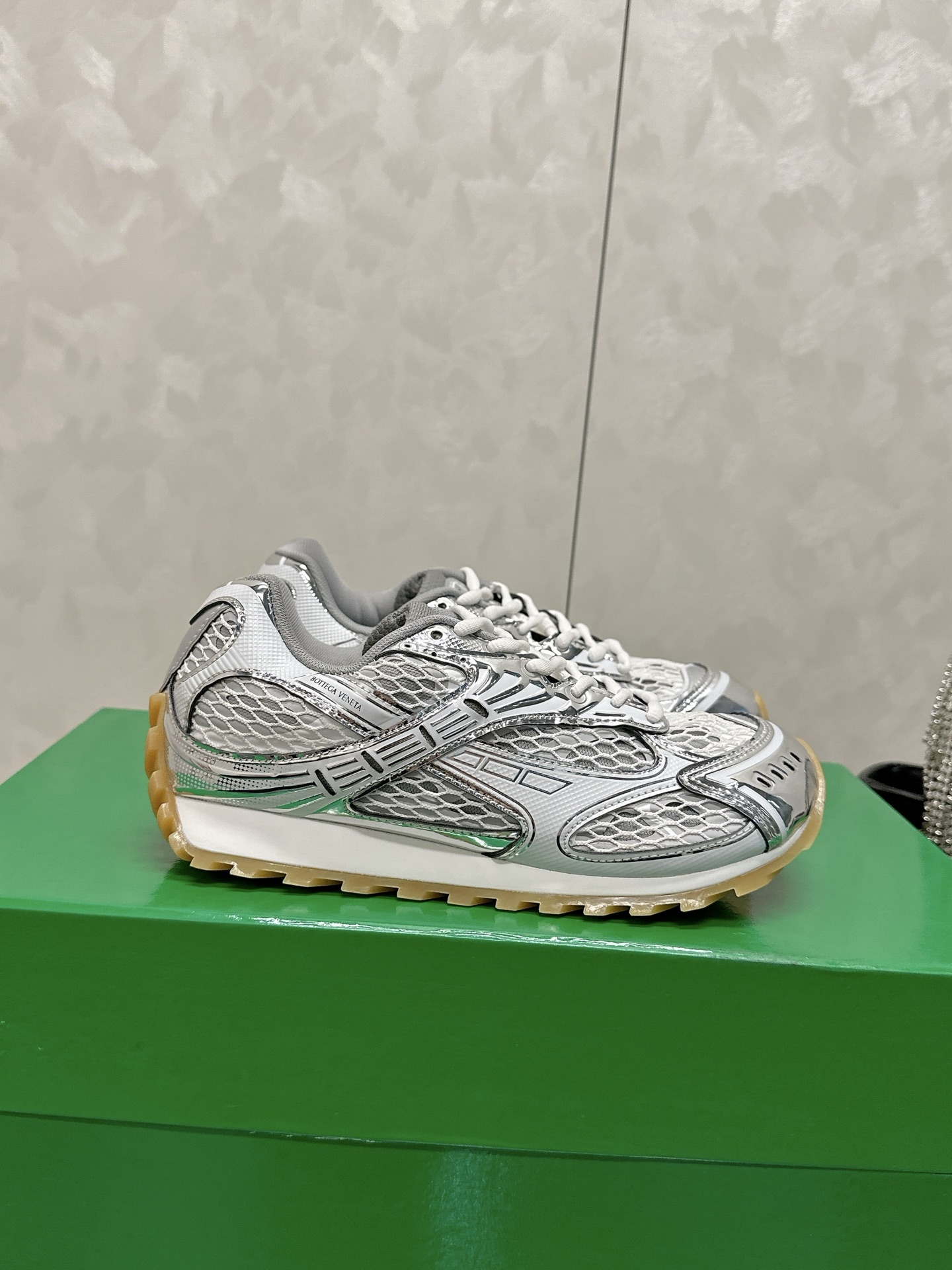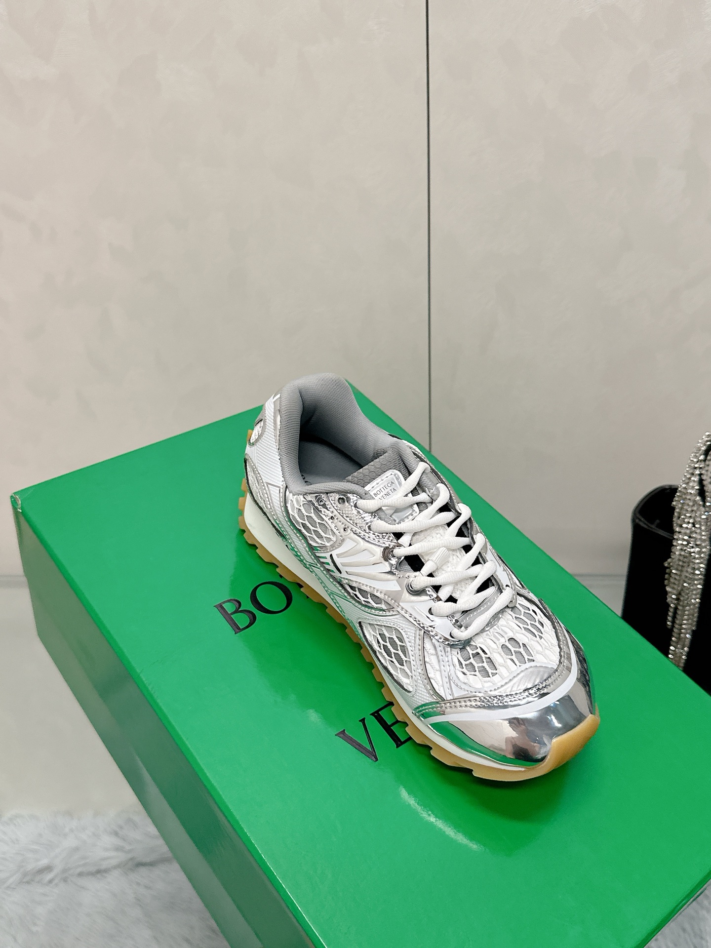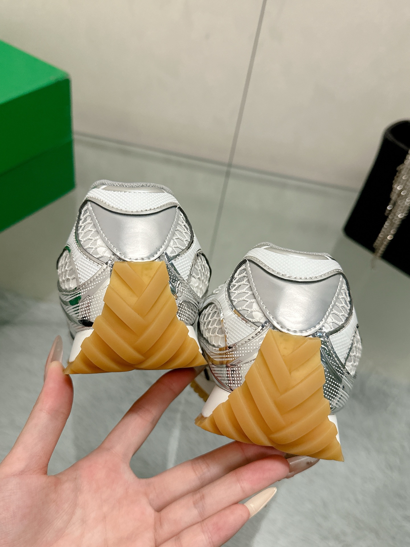这款鞋子是AAAAA 1:1 质量 (非常棒). 使用了和原版一模一样的材料. 商标部分也保持了和葆蝶家/Bottega Veneta一样. 图片拍摄是实物鞋子拍摄, 您所收到的实物保证和我们图片一模一样.