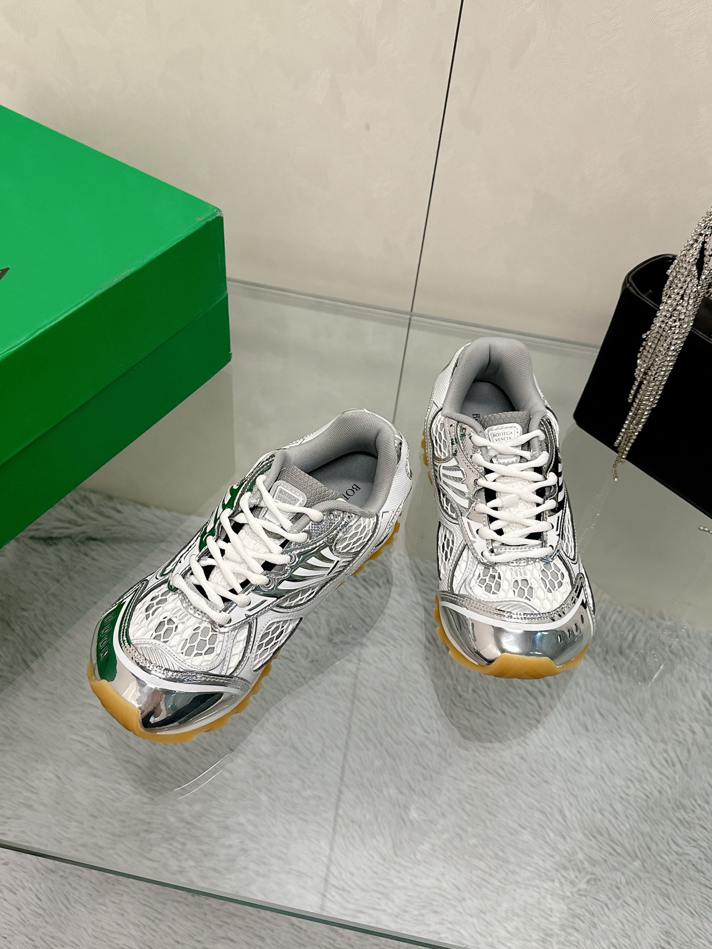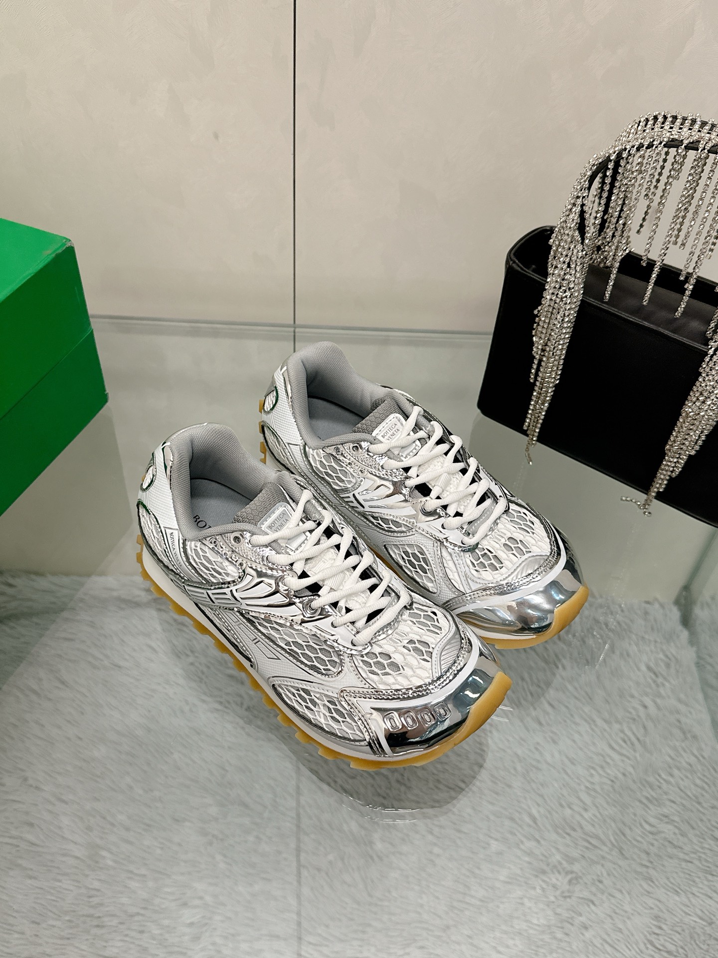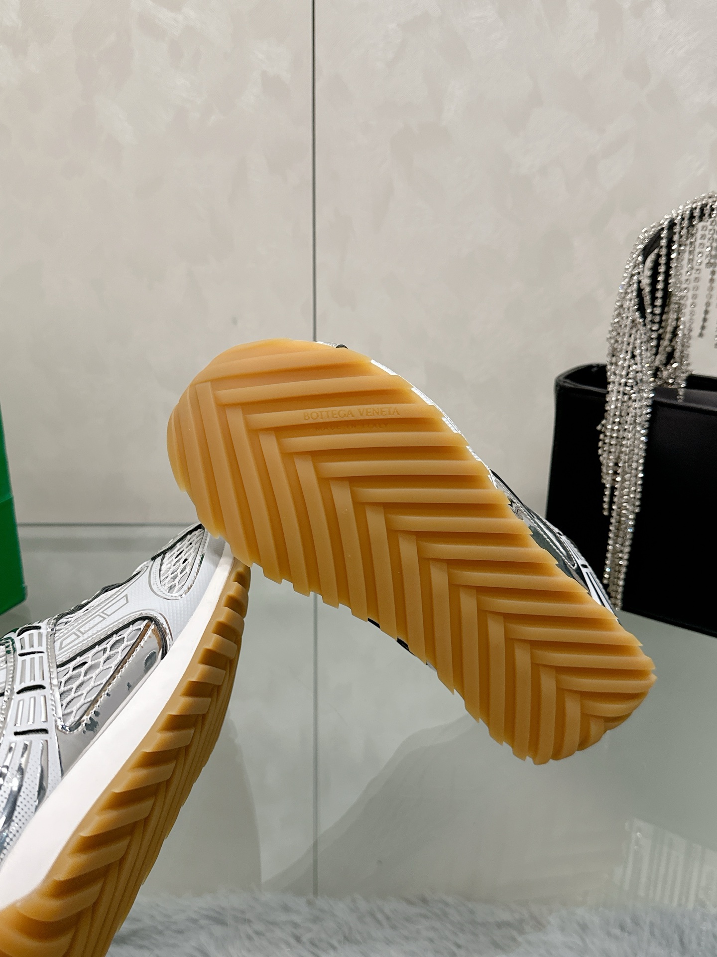 这款鞋子是AAAAA 1:1 质量 (非常棒). 使用了和原版一模一样的材料. 商标部分也保持了和葆蝶家/Bottega Veneta一样. 图片拍摄是实物鞋子拍摄, 您所收到的实物保证和我们图片一模一样.