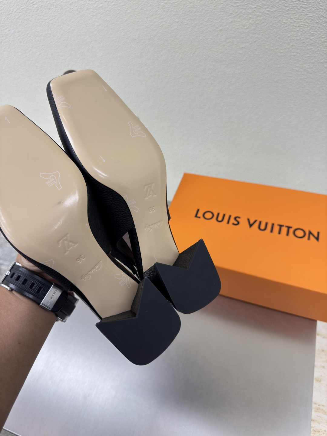 这款鞋子是AAAAA 1:1 质量 (非常棒). 使用了和原版一模一样的材料. 商标部分也保持了和路易威登/Louis Vuitton一样. 图片拍摄是实物鞋子拍摄, 您所收到的实物保证和我们图片一模一样.