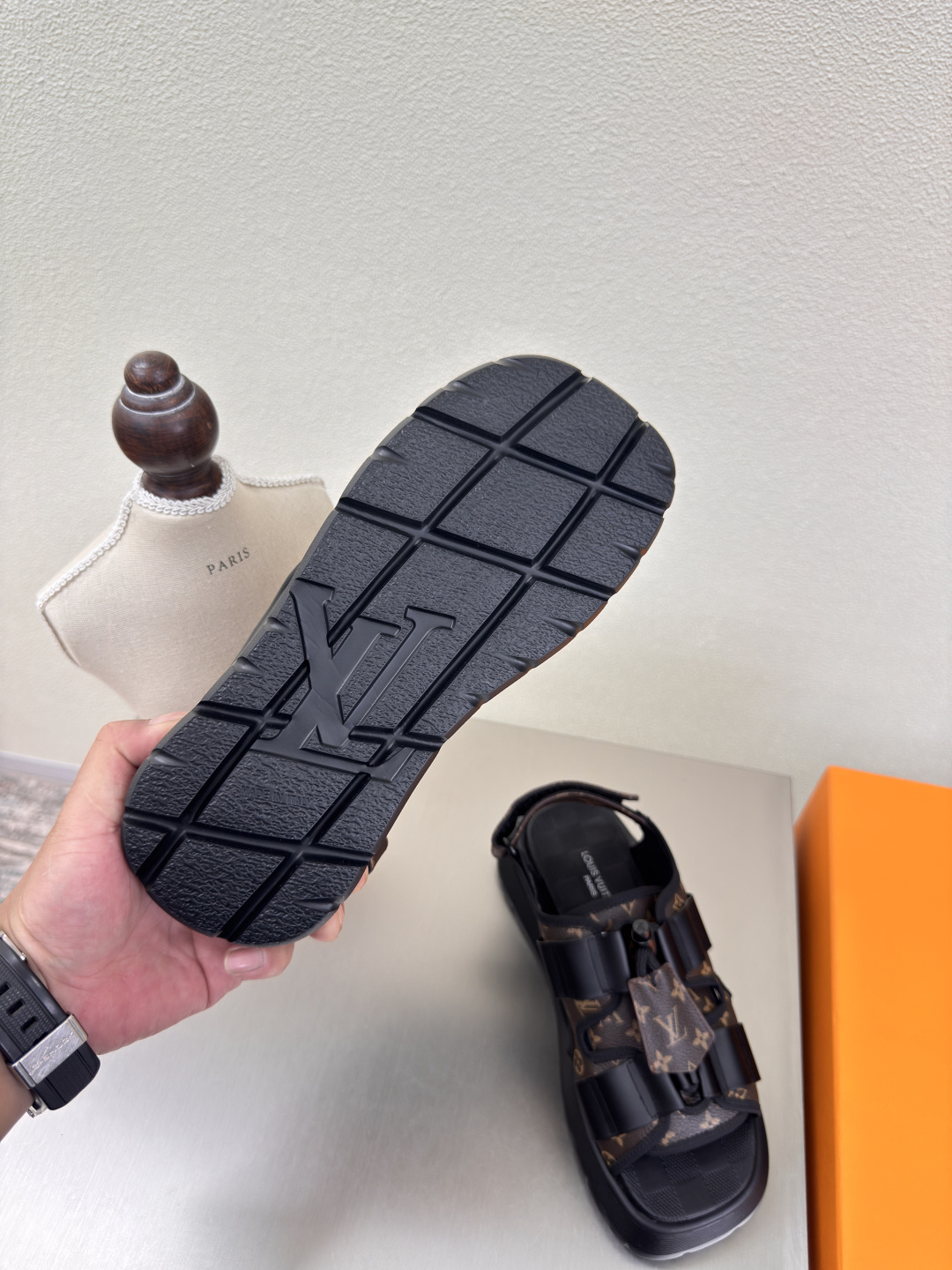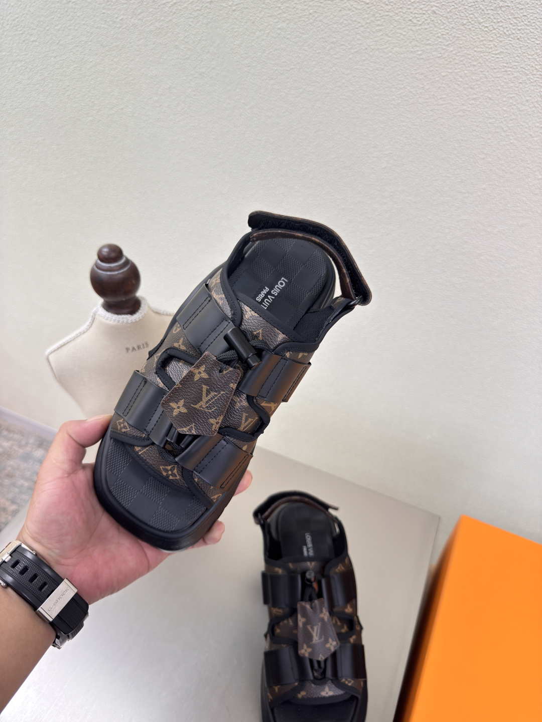 这款鞋子是AAAAA 1:1 质量 (非常棒). 使用了和原版一模一样的材料. 商标部分也保持了和路易威登/Louis Vuitton一样. 图片拍摄是实物鞋子拍摄, 您所收到的实物保证和我们图片一模一样.